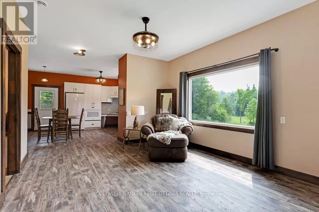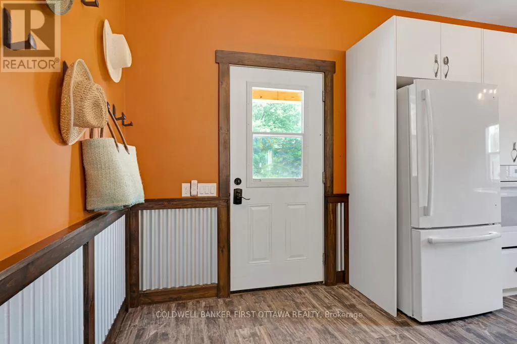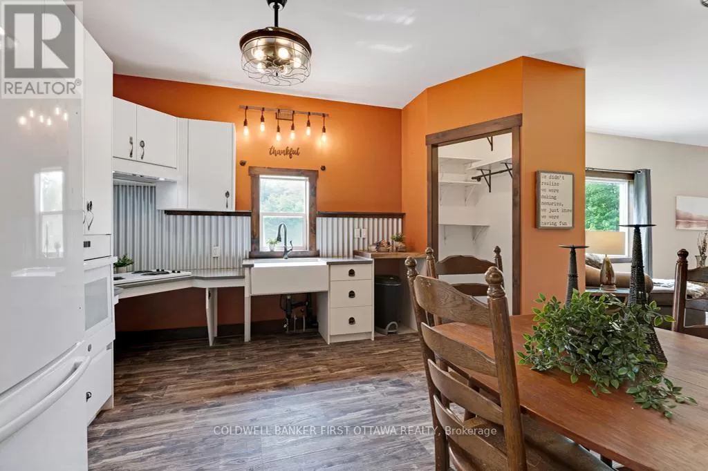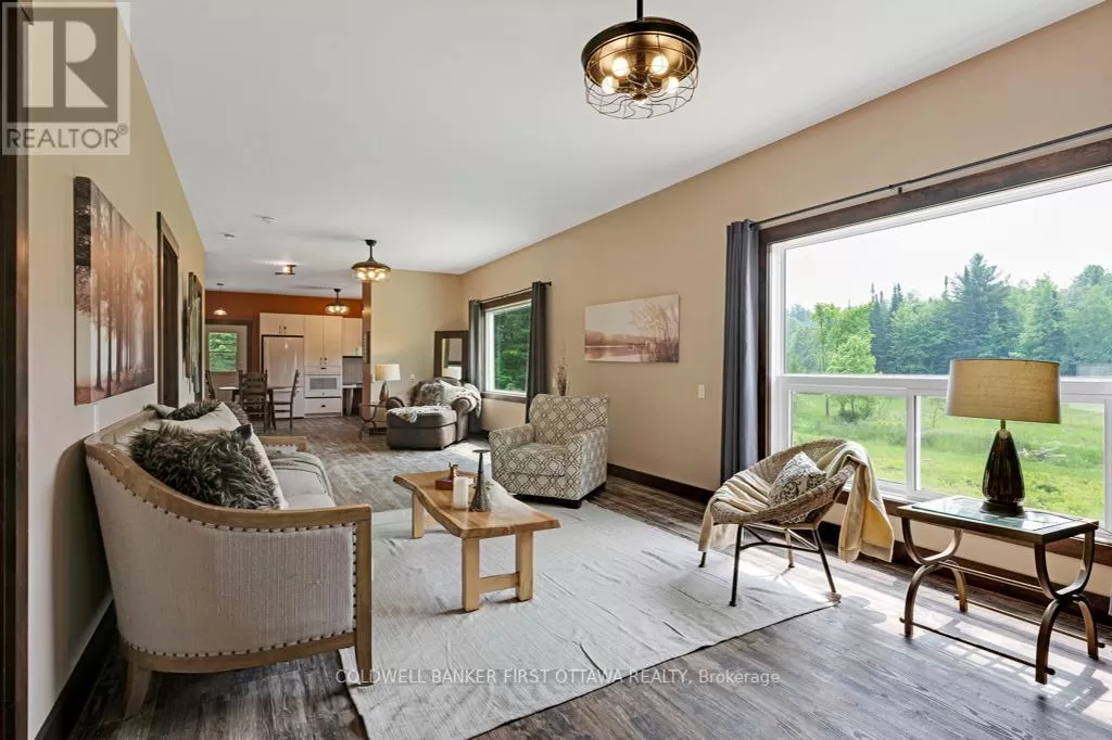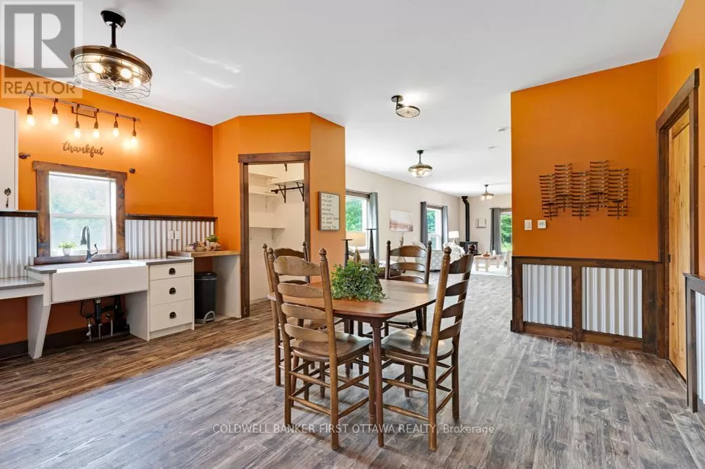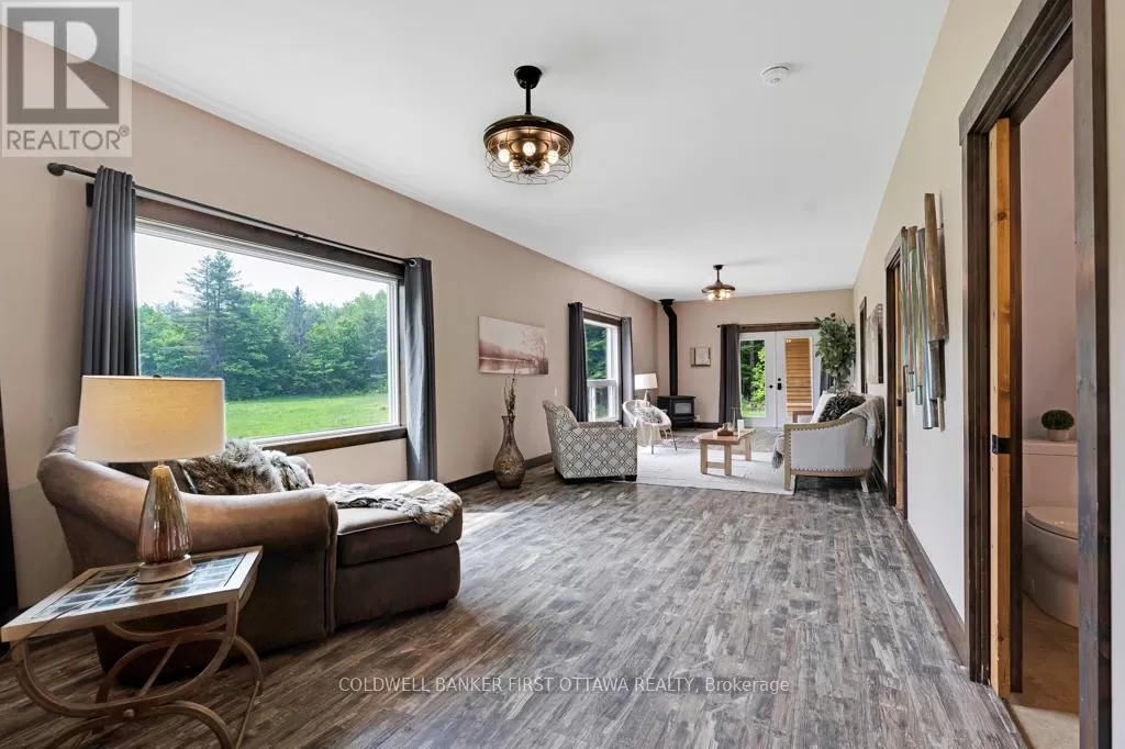 Cross Streets: Bolingbroke Road. ** Directions: Hwy 7 to Maberly. South on Bolingbroke Road. Left on Maberly Station Road to Pin 301. New 2022, certified energy-efficient, bungalow tucked away on 7.9 acres with space for possible hobby farm. This custom home is thoughtfully designed for wheelchair access, while still accommodating everyone's comfort. Spacious home has attractive exterior vinyl siding installed with a charming board and batten pattern. Covered front patio have garden doors leading inside. Sun-soaked open floor plan offers 9 ft high ceilings and radiant floor heating with durable quality luxury plank floor flowing through living spaces and bedrooms. Living room Pacific Energy woodstove and large windows with panoramic views of the green countryside. The home faces south so you also have magnificent views of sunsets and sunrises. Eat-In kitchen has attractive wainscotting, 2023 appliances, deep porcelain farmer sink and convenient walk-in pantry with pot rack and shelving for extra storage. Primary bedroom includes cheater door to 4-piece bathroom with deep stone sink, walk-in shower of subway tiles and honeycomb ceramic floor. Comfortable, relaxing second bedroom. Combined laundry room and utility room with polished concrete floor. Outside, covered patio for lounging and BBQ gatherings. Patio is prewired for addition of a hot tub. You also have big 1/4 acre vegetable garden and sugar maples that can be tapped for syrup. Hydrant on drilled well for watering garden or, if barn is built could be connected for watering animals. Electrical outlet in eaves for season lights. Garden shed. Cedar rail fencing along side road and page wire fencing at front of property. Internet and cell service. House Inspection 2023 Report available. Located on township maintained road with school bus pickup for the Perth elementary and high schools Just 1 km to K&P trail for ATVing or hiking. 10 mins to Sharbot Lake or 20 mins to Perth. (id:27476)