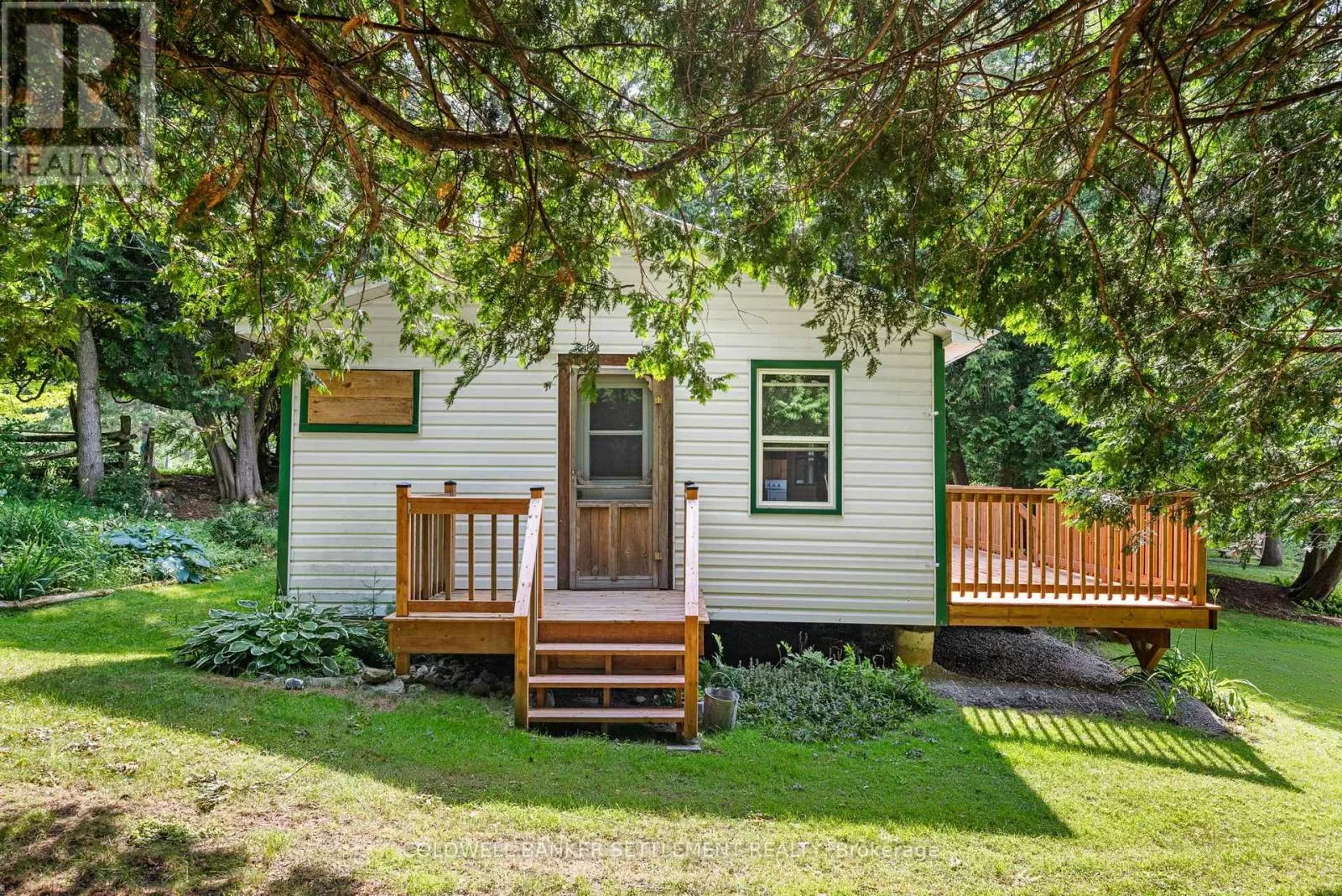 Cross Streets: Christie lake Rd and Hall's lane. ** Directions: From Perth take the Christie Lake Road, right on Hall's Lane. If you are looking for a peaceful, private and affordable waterfront hideaway, this is it! This is such a sweet cottage, and you could live here year round. Located on a beautiful level lot on the Tay River at the end of the laneway only 15 minutes to the historic town of Perth and the charming village of Westport. The Tay River flows into Perth and then the Rideau System, plus you have access to Christie Lake with a small boat, canoe or kayak. Great fishing, swim at the dock on your property, enjoy the pretty perennial garden, the wildlife, gorgeous sunsets and wonderful water views. The cottage has been winterized and has easy care vinyl siding and metal roof. Original wood flooring adds to the charm of this 1 bedroom cottage/home. Many updates over time - windows and doors are about 4 years old, the roof was replaced in 2025, new deck on the riverside in 2025, and more. Convenient pellet stove to keep you cozy. Well and holding tank service the property. The cottage has been spray foamed and insulated - a family member lived here for about 8 years throughout the year. A perfect place to relax and enjoy nature - this a tuly a special spot on a special waterway. (id:27476)
