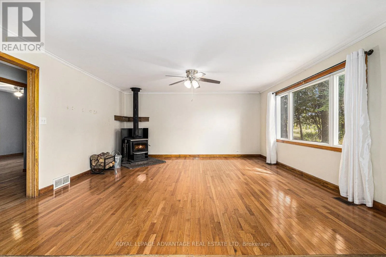 Cross Streets: Gambles/highway 7. ** Directions: From Perth head West on Highway 7 follow to 19320. Charming Country Bungalow Minutes from Perth! Welcome to this cozy and well-maintained 2-bedroom, 1-bath bungalow, perfectly situated on a peaceful country lot just minutes from Perth. Featuring a durable metal roof and updated siding this home offers both comfort and functionality with a spacious open-concept kitchen, dining, and living area, complete with a wood stove for added warmth and charm. Enjoy the convenience of main floor laundry and step out onto the large back deck to take in the beautiful views of surrounding fields a perfect space for entertaining or quiet relaxation.The partially finished basement provides great potential for additional living space, whether as a rec room, home office, or storage. A standout feature of this property is the detached 40' x 25' garage with an upper loft ideal for use as a workshop, storage, or recreation area. Also included is a quaint bunkie for guests or hobbies, and a wood shed to keep your stove well-stocked all winter. Additional features: Efficient propane furnace 2012 plus wood stove make this affordable. Included in the sale is a 7500 watt gas generator and a Briggs and Stratton snow blower. Minutes to all amenities in Perth-Perfect for first-time homebuyers, downsizers, or anyone seeking a tranquil country lifestyle. Don't miss this opportunity to own a slice of the country with room to grow! (id:27476)