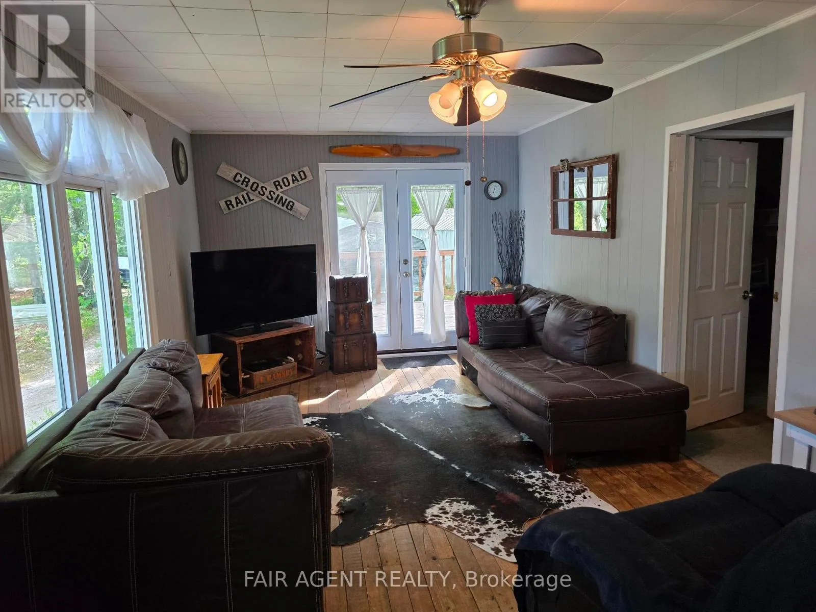Elm Grove Road, East on Glenn Drive, East on Cherie Hill to Cherie Hill Lane Tucked along the shoreline of quiet Adams Lake, 510 Cherie Hill Lane offers a relaxed and private four-season escape just 15 minutes from Perth. With over 100 feet of direct lake frontage, a private dock, and flat grassy space for gatherings around the fire pit, this property is designed for both play and peace. Inside pairs a cozy living room with large picture windows that bring the lake right into view. The kitchen is functional and full of charm, with vintage touches and direct access to the elevated deck perfect for morning coffee or evening BBQs under the trees. Three comfortable bedrooms and a full 3-piece bath round out the main level. The lower-level walkout basement adds excellent storage or workshop potential, with high ceilings and a wide-open layout ready for finishing. Outside, you'll find multiple storage sheds, parking for four, and plenty of space to store water toys or gear for year-round activities. The setting feels private and natural, with a backdrop of mature trees and a gentle slope to the water. Whether you're looking for a weekend getaway or a year-round residence, this property makes it easy to unplug and enjoy lake life. Close to Rideau Ferry, Murphy's Point Provincial Park, and with direct access to Big Rideau Lake by boat, this is a rare waterfront opportunity that blends simplicity with potential. (id:27476)