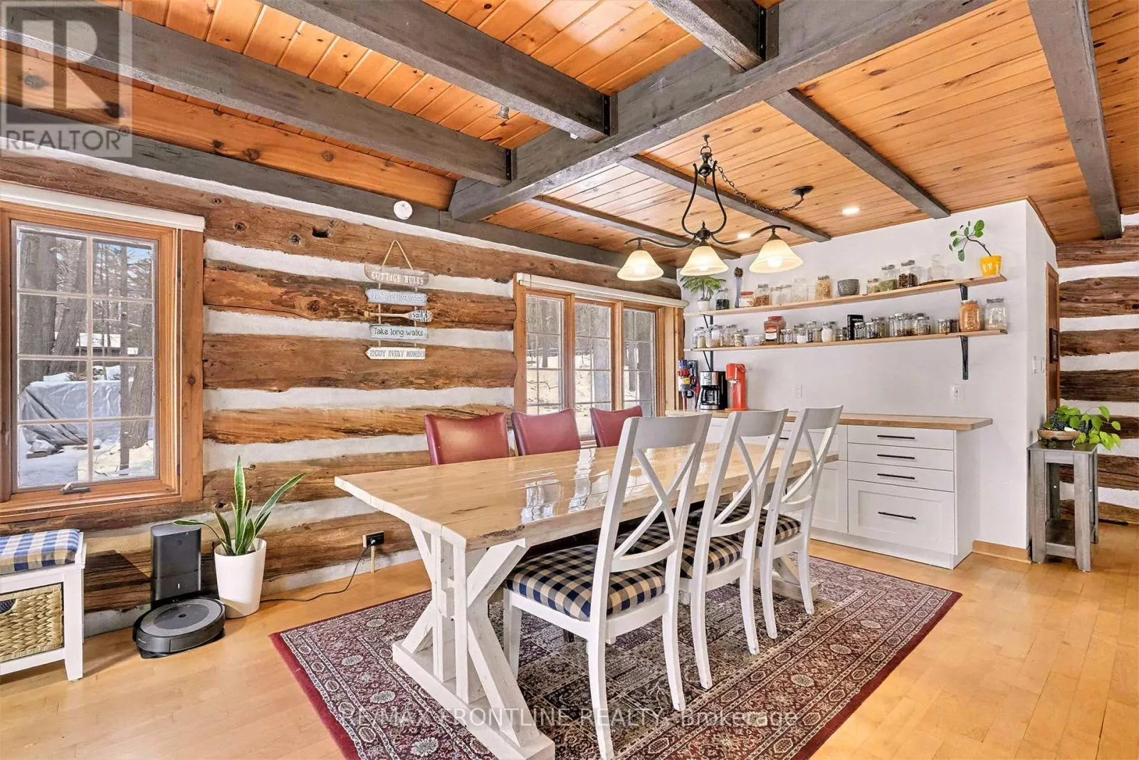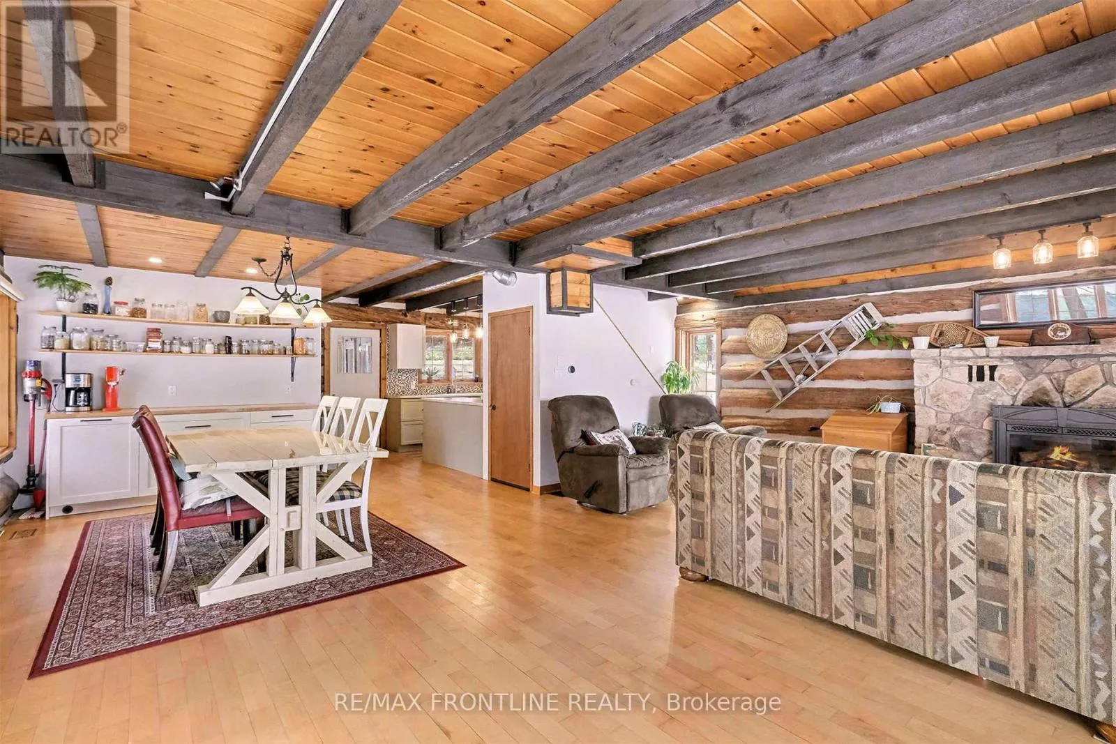 Cross Streets: Rideau Ferry Rd & Elm Grove Rd. ** Directions: From Perth, Rideau Ferry Rd to Elm Grove Rd, to Millar Bay Rd, continue to Blair Poole Farm Lane. Discover your perfect lakeside retreat on the pristine sought after shores of Otty Lake! This charming year round 4-bedroom, 2-bath home offers an incredible 136 feet of waterfront with approx 4 feet of depth right off your private dock - ideal for swimming, fishing, or simply enjoying those peaceful mornings with your coffee. You will love the character and charm of this fabulous log home. Step inside to find a thoughtful design throughout with a convenient main floor bedroom perfect for guests (or office if desired). The heart of the home features exposed beams and a cozy propane fireplace, creating the perfect ambiance for quiet evenings after a fun day on the water. The dining room has been recently enhanced with a stylish coffee bar featuring a cleverly concealed dishwasher. The 2nd level features a spacious primary bedroom with private deck, 2 additional bedrooms and 3pc bath with jet tub. The full unfinished basement with walkout access provides endless possibilities for customization while offering excellent storage. Outside, you'll appreciate the generous lot size and the 12x16 storage shed for all your lake toys and seasonal equipment. The location couldn't be better - situated conveniently next to a boat launch, yet tucked away enough to enjoy tranquil privacy. The charming Town of Perth is just a short drive away, offering shopping, dining and essential services. Whether you're seeking a permanent residence, vacation getaway, or investment property with rental potential, this Otty Lake gem delivers on all fronts. Embrace the lake life you've been dreaming of - your morning swims and stunning sunset views are waiting! (Home sale could include some of the furniture, Heat source - propane furnace and propane fireplace, Road Maint fees approx 250 annually) (id:27476)