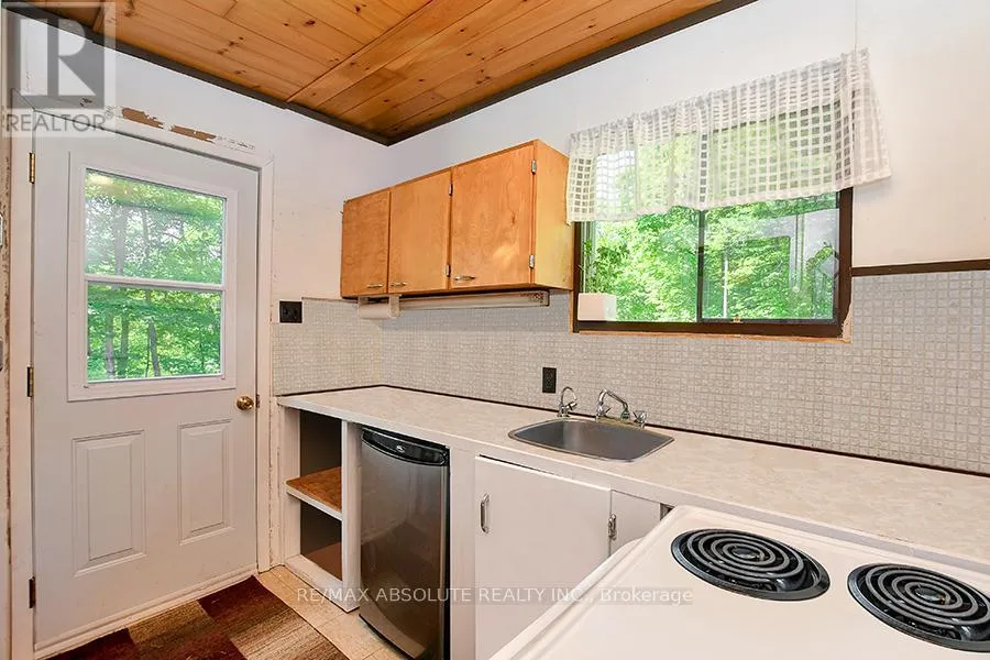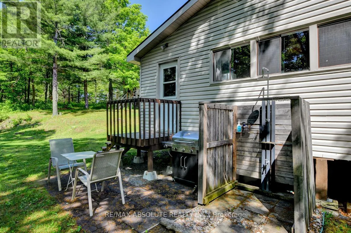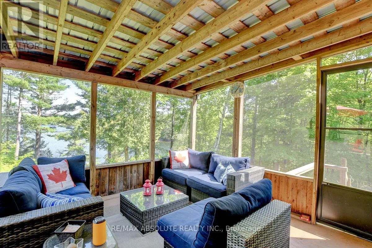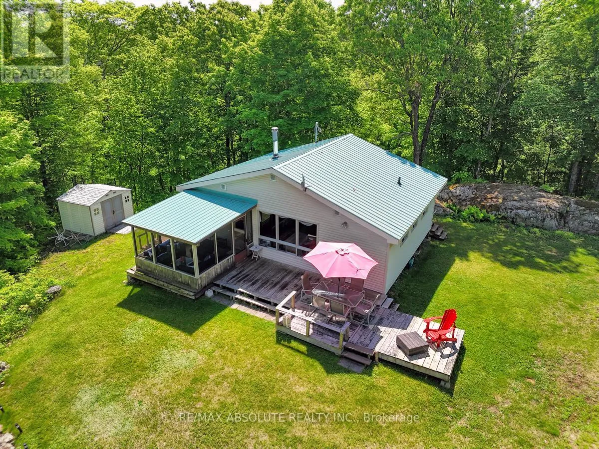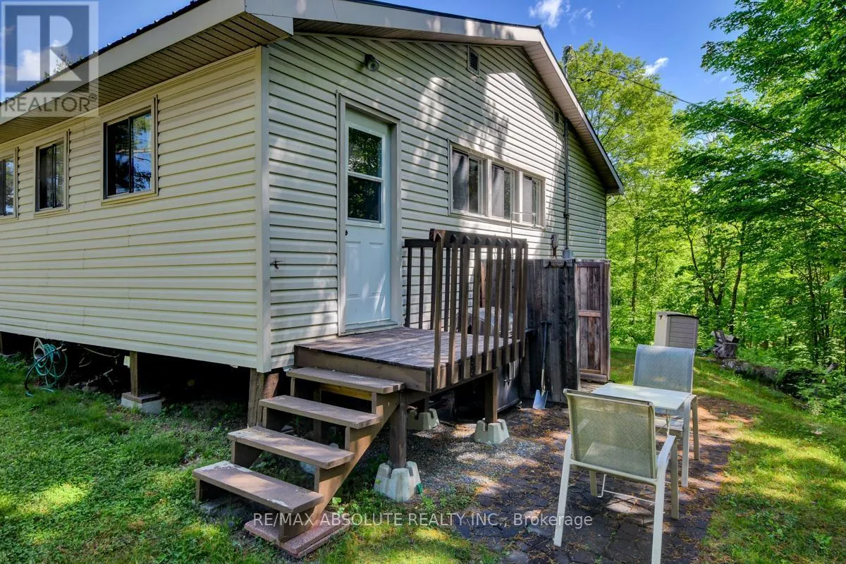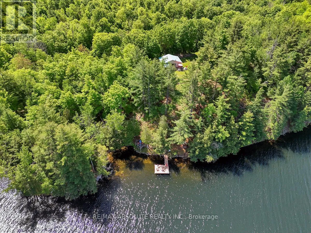 From Scotch Line Road, go South on Stanleyville Road. Pike Lake RTE 16 is on the right. Follow the directional arrows to RTE 16C. If using Google Maps, keep going straight when the system tells you that \"you have arrived.\" Rare opportunity to own 6.9 acres of waterfront with approximately 650 feet of shoreline and mature mixed forest offering exceptional privacy. This rustic three-season cottage features tongue and groove pine ceilings, a durable metal roof, and an open-concept living area with expansive lake-facing windows. Three bedrooms provide cozy accommodations, while a screened sunroom and spacious deck are ideal for outdoor entertaining. Set slightly elevated, a newer staircase leads down to the water and a large dock in a private bay, perfect for swimming and boating. Property offers excellent future potential to enjoy as-is, build, or explore severance possibilities (buyer to complete due diligence with township). Water source is lake intake. 3 Season annual road maintenance fee $134 . 24-hour irrevocable on all offers. (id:27476)