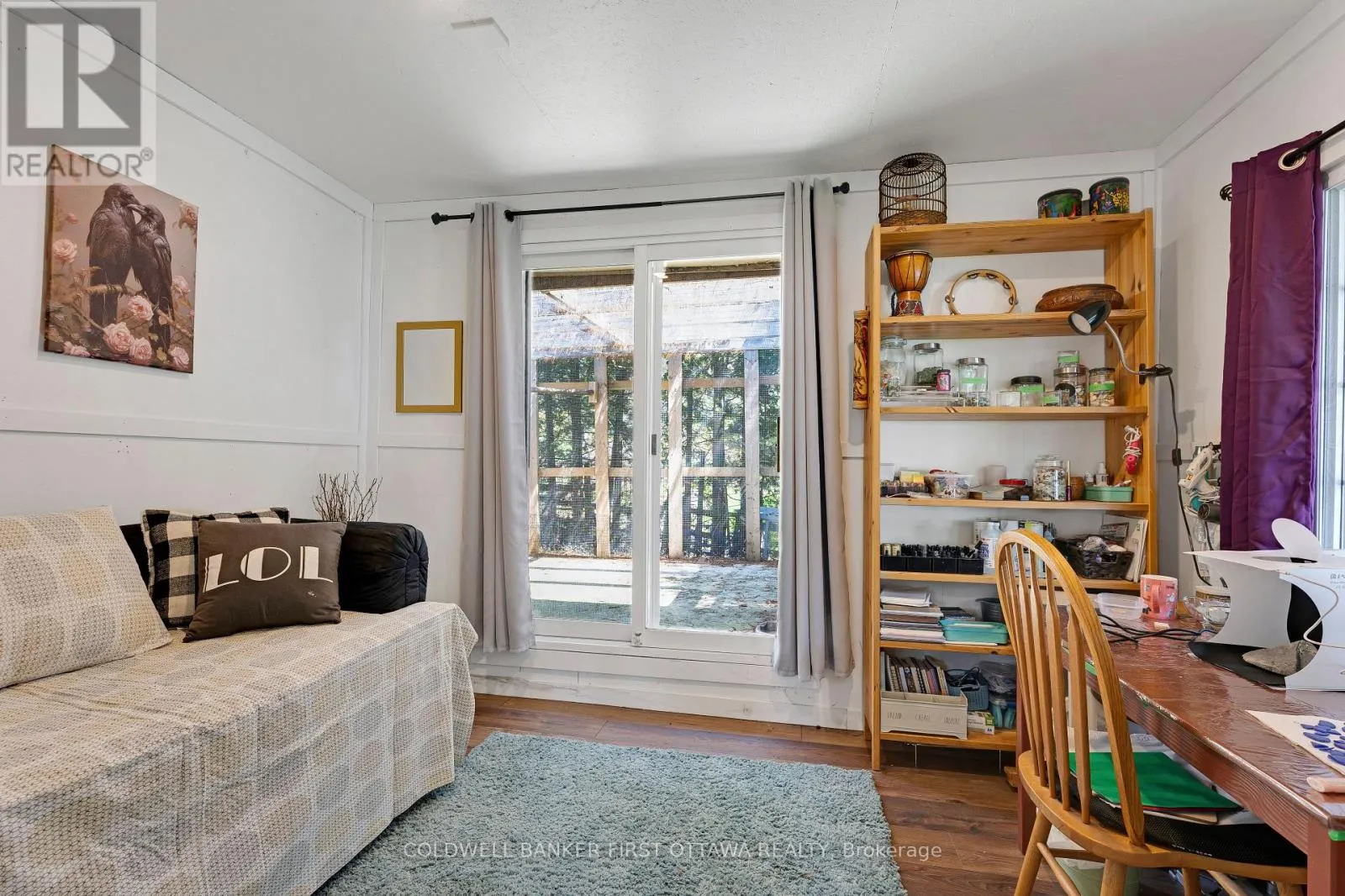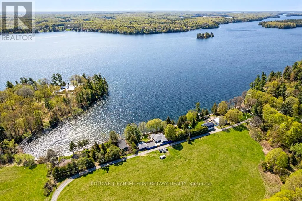 Cross Streets: Rideau Ferry Road to Elm Grove Road ... ** Directions: Hwy 7 to Perth. South thru Perth to Rideau Ferry Rd (County Rd #1). South on Rideau Ferry Rd. Right Elm Grove Rd. Left Rideau Lake Road. Right Winton Lane. Right Jones Point Rd to Pin #889. Upgraded home on Big Rideau Lake, with the amazing panoramic lake views. Lovely family home on the lake or, your wonderful vacation retreat for any time of the year. Light bright bungalow offers expansive spaces inside and out for easy living - plus, all fenced yard is perfect for pets and young children. Freshly painted in 2024, the three bedroom, 1.5 bathroom home has large welcoming foyer with big closet. Livingroom stone fireplace includes energy-efficient pellet stove insert with new 2025 blower fan. Wide patio doors open to huge expansive deck that keeps you connected to the outdoors, facing southeast over the lake. Extra-large dining area open to living room and is adjacent to contemporary kitchen with ledger stone backsplash and lovely birch cabinetry. Relaxing den offers you extra flex space. Den also opens to sitting nook with more patio doors to the deck. Main floor powder room and laundry station. Comfortable primary bedroom with attractive tongue & groove pine ceiling. Two more good-sized bedrooms. The 4-pc bathroom updated 2023 with shiplap wall and rain head shower-tub. Home has heat pump for heating and, cooling with 2020 mini-split wall unit. Updated vinyl windows and sliding doors are 3 to 6 yrs old. Roof shingles new 2020. Hook up in place for a generator. Detached single car garage has hydro. Guest Bunkie completely insulated and has patio doors to its own wrap-about 2022 covered deck. For toys and tools, you have garden shed, storage shed plus small coverall. Gentle, slightly sloping, access to the 128 ft waterfront with boat lift and a dock that's 6' deep at end. Shoreline clear for swimming and has shallow area for young children. Big Rideau Lake is the largest and deepest lake in the Rideau Canal System with great boating and fishing for Lake Trout, Largemouth & Smallmouth Bass plus Northern Pike. Bell hi-speed and satellite available. Cell service. Private road fee for maintenance and snow plowing is approx $400/year. Just 15 mins to Perth. (id:27476)