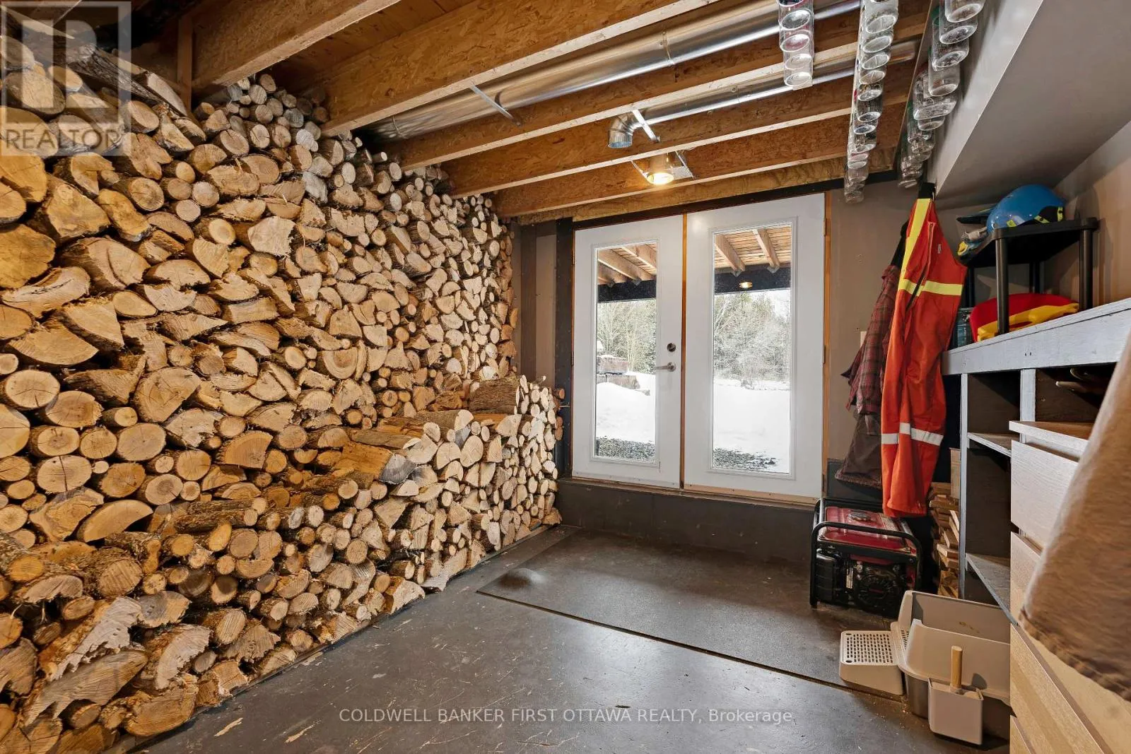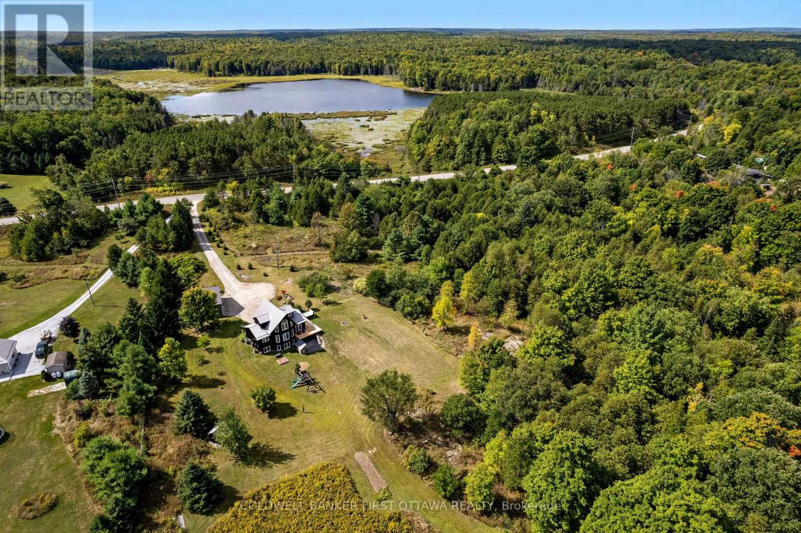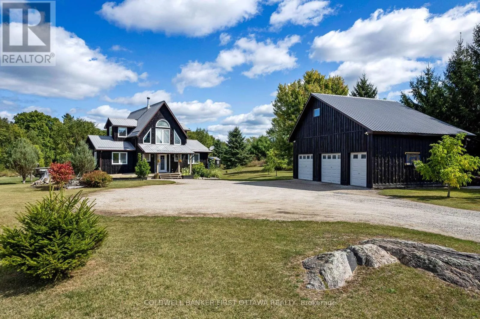 Cross Streets: Fallbrook Rd. ** Directions: From Balderson, head West on Fallbrook Rd, turn right at stop sign to continue on Fallbrook Rd. Property is on the right. Pin 1158. Every spring, the maples wake up on this 29 acre haven before anything else. The sellers have been tapping them for years - buckets on the trees, syrup boiling down over an outdoor burner - and that ritual is yours now if you want it. Trails wind through the mature hardwood bush behind the house, a bountiful forest abundant with wildlife, native plants, and an endless supply of firewood your family will enjoy for decades to come. The home is warm, well-built, and designed for comfort: built in 2005, three bedrooms up including a primary with its own ensuite and soaker tub, a kitchen and dining space that invites people to linger, and a walkout lower level with a fourth bedroom or office. Heat is never a concern. Electric forced air handles the baseline, and the woodstove, tied directly into the ductwork, can warm the whole house from one fire. And then there is the garage. Three bays. Timberframe construction. A loft above. It is the kind of structure that stops people mid-step when they first see it. Ideal for a woodworker, a mechanic, a collector, or anyone with a serious hobby, this garage will make you realize you have been compromising your whole life. It is not an add-on. It is a destination. The location completes the picture. Swim in the clean, deep, fast-moving water of the Mississippi River just three minutes away. Blue Heron Golf Club is four minutes down the road. Perth is twelve minutes away. Kanata is forty-five. Far enough to feel like you've left. Close enough that you actually will. Land with character, a home worth coming back to, and a garage that exceeds every expectation. If the idea of tapping your own maples next March is more than a passing thought, come see this house before someone else does. (id:27476)