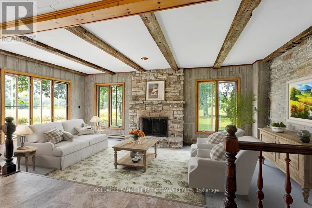 Christie Lake Rd & Althorpe Rd Tucked along a quiet bend of the Tay River just ten minutes from Perth, this 73-acre estate is the kind of property that almost never comes up. An 1870s stone home, an 1820s log guest house, over 1,200 feet of natural swimmable shoreline, and total privacy at the end of a long private drive with no neighbours in sight. The stone home stands with quiet dignity, its original pine floors and historic millwork carrying the story of generations. Behind that character sits the practical stuff that matters: a brand-new septic system installed this year, propane furnace, updated wiring and plumbing, newer windows on the upper level, and added insulation. Generously sized rooms, a large wood-burning fireplace, and a clean, dry basement give the main house real bones. With 5 bedrooms and 1.5 baths, there's space for the whole family, even if you convert one of those bedrooms into a luxurious spa bathroom. The kitchen and dining room and the unfinished primary bedroom are blank canvases waiting for your vision. Outside is where this home really opens up. Forest and field roll out in every direction, dotted with apple trees and wild berry bushes. Launch a canoe from your own shoreline and paddle 2.5 km into Christie Lake. A boathouse sits right at the water ready for restoration. An 1825 barn with massive hand-hewn beams waits to be reborn, and the rustic log cabin with a screened porch and charmingly wonky floors makes a perfect guest house, summer retreat, or short-term rental opportunity. Just over an hour from Ottawa with easy access to Highway 7. Vibrant in summer, hushed under winter snow. A private world where time slows and history breathes in every stone, beam, and ripple of the river. Book your private tour today. (id:27476)