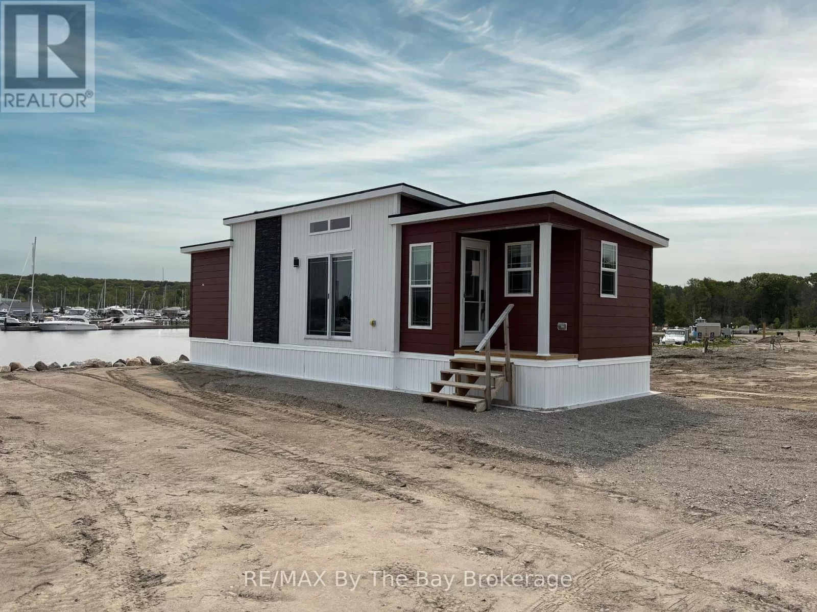 Cross Streets: HWY 12 TO OGDENS BEACH ROAD. ** Directions: HWY 12 TO OGDENS BEACH ROAD TO WYE HERITAGE MARINA RESORT. This brand-new 2-bedroom, 1-bathroom Cognashene Cottage offers 540 sq ft of modern, turnkey living on a stunning waterfront lot overlooking the marina harbour. Ready for Spring occupancy, its the perfect opportunity to enjoy the 2025 cottage season in style and comfort. The open-concept layout features a spacious living area and kitchen, ideal for entertaining or relaxing after a day on the water. The cottage also includes a beautifully appointed master bedroom with an ensuite. The covered porch is perfect for enjoying the peaceful surroundings and marina views. Designed for those seeking a compact yet functional cottage experience, this unit offers everything you need for seasonal enjoyment. Wye Heritage Marine Resort provides an exclusive 8-month seasonal experience, from spring to fall, along with amenities like heated swimming pools, a sports court, restaurant, beach, and boating services. As an owner, you'll receive a guaranteed boat slip and a 20% discount on slip fees. Don't miss this rare opportunity to own a waterfront retreat in one of the resorts most coveted locations! (id:27476)