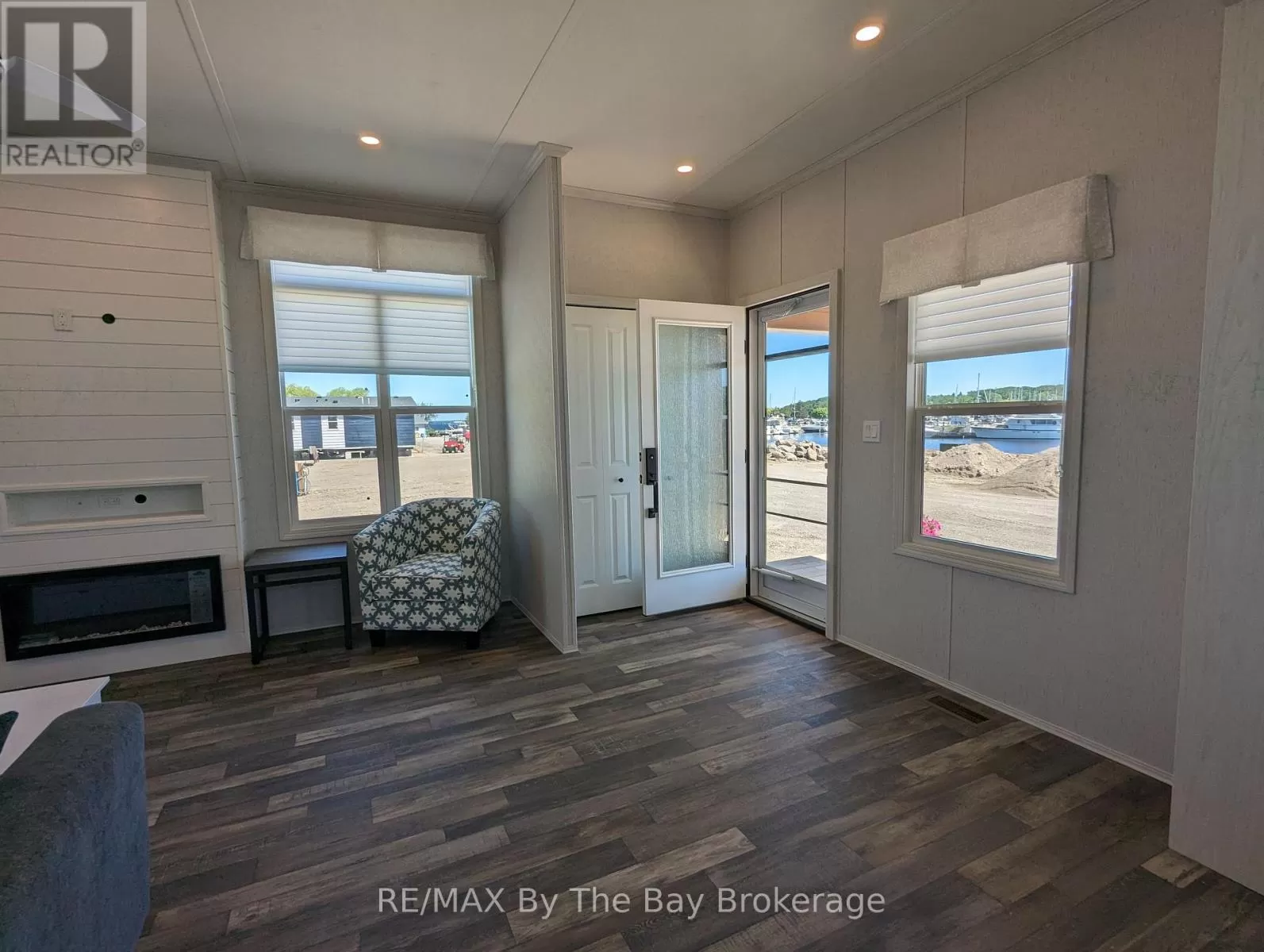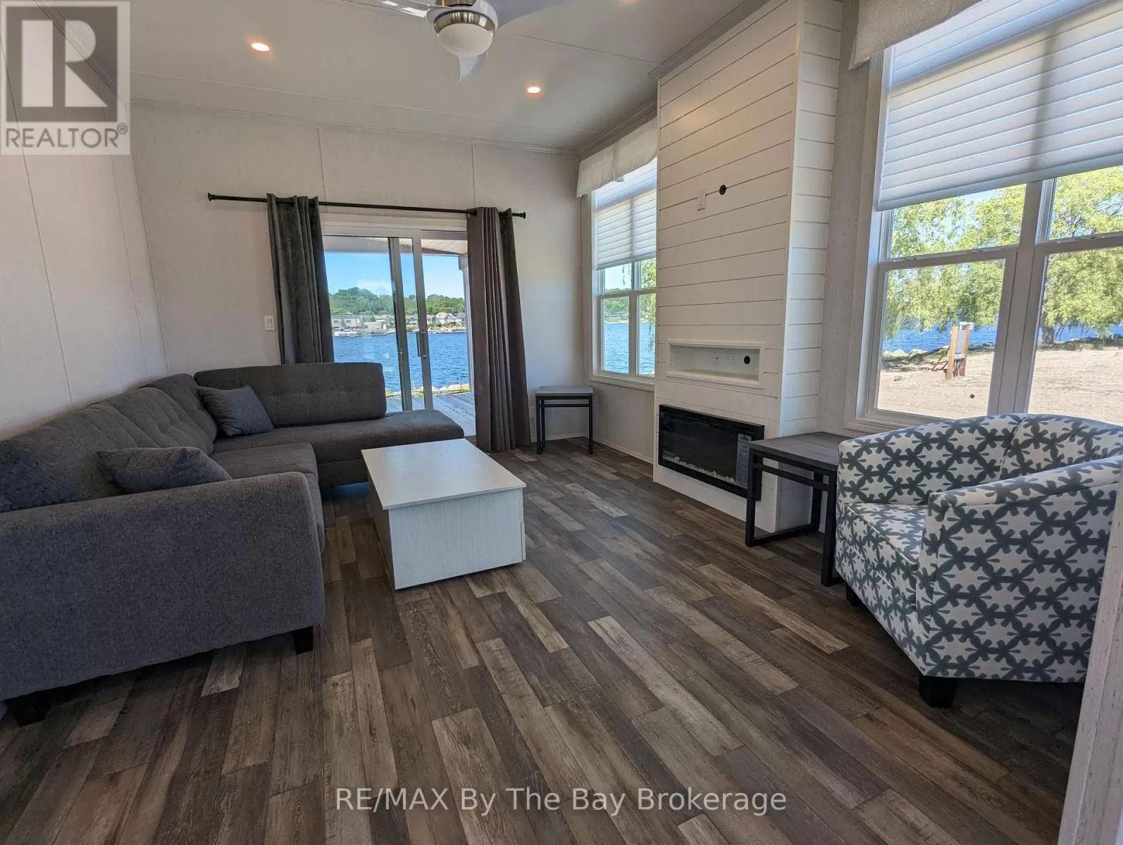 Cross Streets: HWY 12 TO OGDENS BEACH ROAD. ** Directions: HWY 12 TO OGDENS BEACH ROAD TO WYE HERITAGE MARINA RESORT. Nestled along the serene shores of Southern Georgian Bay, this brand-new 2-bedroom, 1-bathroom Sans Souci Cottage offers an unparalleled opportunity for exclusive resort living. Located on a premium waterfront lot in the highly sought-after Phase 1 release of Wye Heritage Marine Resort, this 728 sq ft cottage is ready for immediate occupancy, allowing you to make the most of the 2025 cottage season. With a thoughtfully designed open-concept layout, this cottage is the perfect retreat for those seeking both comfort and style. The spacious living area seamlessly flows into a fully-equipped kitchen, making it ideal for both relaxing and entertaining. Large windows throughout capture the breathtaking views of Georgian Bay, while the cozy living room, complemented by modern finishes, creates a welcoming atmosphere. Step outside onto one of your two, covered private decks and enjoy the tranquil sounds of the water as you unwind with a cup of coffee, or spend your evenings watching the sunset over the bay. With robust options included, this turn-key cottage is equipped with all the amenities you need for seasonal enjoyment, including central air conditioning and a fully appointed interior. Wye Heritage Marine Resort offers an exclusive, seasonal 8-month experience from spring to fall, with an array of premium amenities, such as two heated swimming pools, a sports court (pickleball, tennis, basketball), a restaurant, sandy beach, playground, and a range of boating services. As a cottage owner, you'll be guaranteed a boat slip with a 20% discount on slip fees. Don't miss out on this exclusive opportunity to secure your very own retreat in one of the most desirable locations in the resort! (id:27476)
