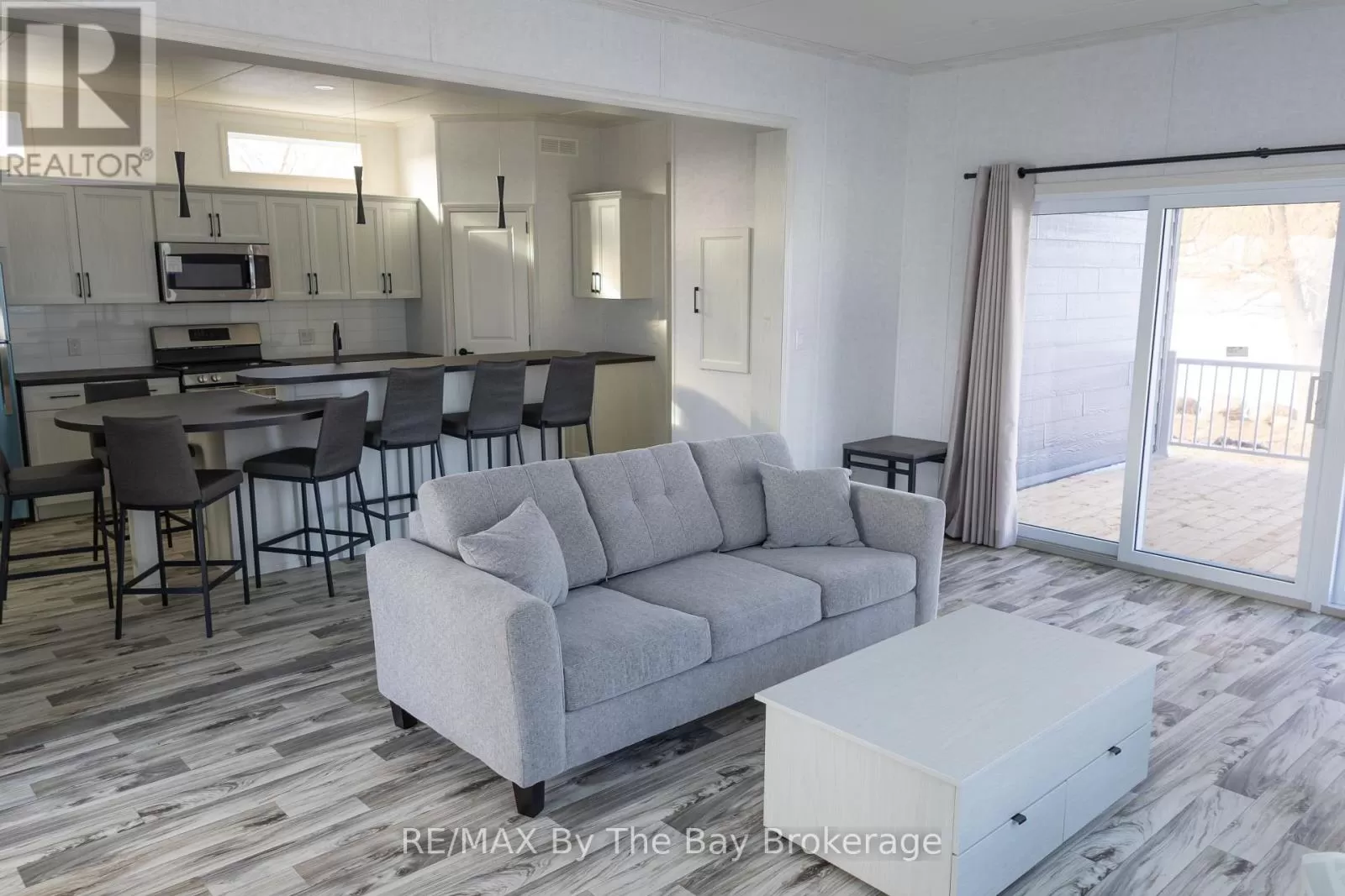 Cross Streets: HWY 12 and Ogdens Beach. ** Directions: HWY 12 TO OGDENS BEACH ROAD TO WYE HERITAGE MARINE RESORT. Set against the picturesque backdrop of Southern Georgian Bay, this 2-bedroom, 2-bathroom Beausoleil Cottage model offers an exceptional opportunity for resort living at its finest. Proudly manufactured in Canada, this move-in-ready cottage is perfect for those eager to take full advantage of the 2025 cottage season. Located on a premium waterfront lot, this cottage provides panoramic views and is just steps from the resorts new private pool. At 718 sq ft, this thoughtfully designed cottage features an open-concept living area, a fully-equipped kitchen, and a cozy yet spacious living room ideal for hosting family and friends. Step outside to one of two covered decks and enjoy your morning coffee while watching the sunrise over the water. With modern furnishings and top-tier amenities, including central air conditioning and a 50 linear electric fireplace, this cottage is designed for comfort and convenience. Wye Heritage Marine Resort is a seasonal 8-month resort, allowing you to enjoy the best of cottage living from spring to fall. The community offers an abundance of amenities, including two heated swimming pools, sports court (pickleball, tennis, basketball), restaurant, sandy beach, playground, and boating services. Cottage owners are guaranteed a boat slip and receive a 20% discount on their slip fees. This is an exclusive Phase 1 lot, so don't miss your chance to own this prime piece of paradise on Georgian Bay! (id:27476)