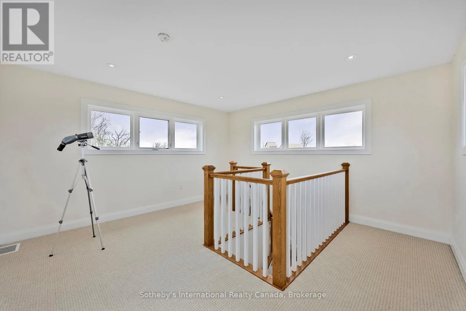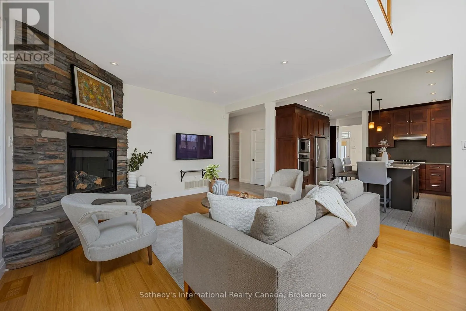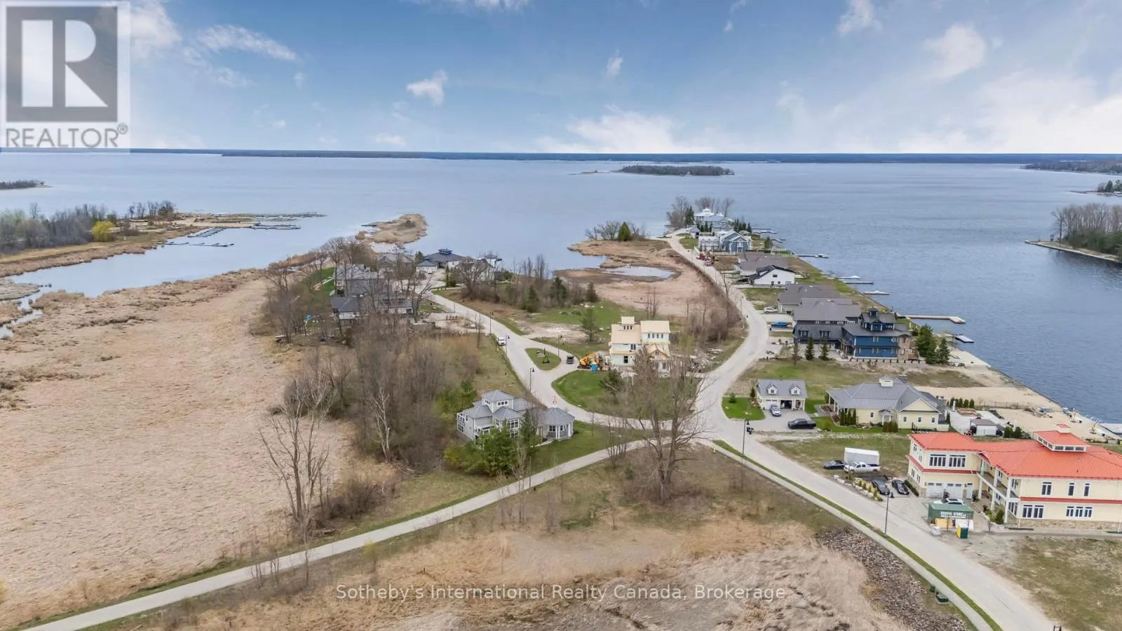 Cross Streets: Dock Lane & Swan Lane. ** Directions: Dock Lane to Swan Lane. With its cupola, refined rooflines, and inviting front porch, the home makes a striking first impression.. Tucked at the end of a quiet cul-de-sac in a gated waterfront community in Port McNicoll, this Cape Cod-inspired home offers over 3,000 sq ft of light-filled living space. Inside, the layout flows beautifully from the welcoming foyer to a bright, hexagon-shaped dining room overlooking the porch, an ideal space to host dinners or sip your morning coffee. Vaulted ceilings and oversized windows create a sense of openness in the main living area, where a gas fireplace and walkout to the screened-in porch set the tone for relaxed comfort. The main-floor primary suite includes a walk-in closet and 4-piece ensuite, while a nearby home office offers a quiet and inspiring place to work from home. The centrally located kitchen is designed for ease and connection, opening into the heart of the house. Upstairs, two bedrooms share a full bath. One of the bedrooms connects to a balcony, while the second enjoys its own private balcony, perfect for morning sun or quiet moments with a book. Built-in floor-to-ceiling shelving in the hallway offers the ideal space for a personal library or curated display. A loft overlooks the living room and opens to a shared balcony, blending style with function. At the top, a lookout sitting room with transom windows offers treetop views and a peaceful space for reading, reflection, or stargazing. The basement provides ample storage, while the large double garage adds practical convenience. Outdoors, enjoy evenings around the stone fire pit or listen to birdsong from the comfort of your screened-in porch. A public walking trail runs along the northern side of the property. With multiple marinas just minutes away, this property is perfectly situated for boaters seeking quick access to launch points on Georgian Bay. Just a short drive to Midland for shopping, dining, and essential amenities, this home offers a refined four-season lifestyle. (id:27476)