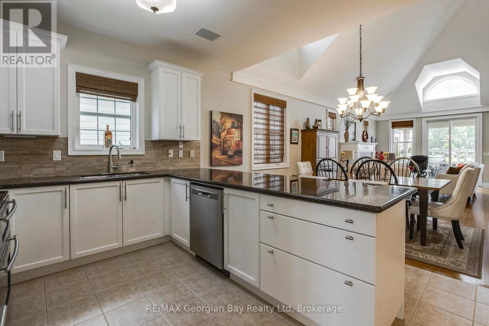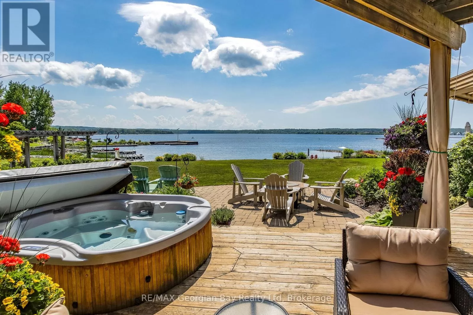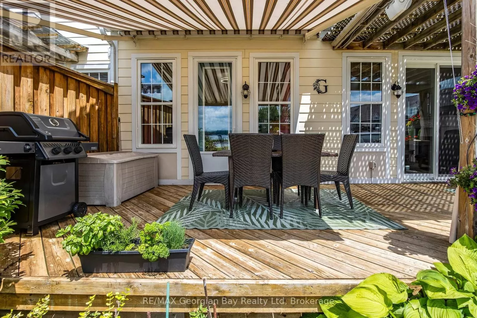 Cross Streets: WILLIAM/ALBERT. ** Directions: HWY 12 E; LEFT ON WILLIAM; LEFT ON ALBERT; RT ON WYCLIFFE COVE TO SIGN. THIS STUNNING 3000 SQ FT FREEHOLD LUXURY TOWNHOME WITH IT'S SUNSET VIEW IS BOUND TO TAKE YOUR BREATH AWAY! NESTLED WITHIN A BEAUTIFUL WATERFRONT COMMUNITY ALONG THE SHORES OF GEORGIAN BAY, THIS TURN KEY BEAUTY HAS MANY GREAT FEATURES. OPEN CONCEPT KITCHEN WITH PLENTY OF CUPBOARDS; SOLID SURFACE COUNTERS WITH BAR SEATING; DINING AND GREAT ROOM BOASTS VAULTED CEILINGS, A COZY GAS FIREPLACE, GLEAMING HARDWOOD FLOORS; WALK OUT TO THE RELAXING DECK WITH SOUTH WESTERLY VIEWS OF HOGG BAY. THE MASTER BEDROOM PROVIDES A SPACIOUS 4PC ENSUITE, HIS/HERS CLOSETS AND WALK OUT TO DECK. COZY UP TO WATCH TV OR WORK IN THE FRONT DEN. YOUR GUESTS WILL LOVE THE PRIVATE UPPER LEVEL WITH 2 BEDROOMS AND FULL 4 PC BATH. AN INSIDE ENTRY FROM THE GARAGE; MAIN FLOOR LAUNDRY, AND PANTRY CUPBOARD ARE ADDED FEATURES. THE LOWER LEVEL CONSISTS OF A VERY SPACIOUS REC ROOM, A BONUS ROOM, AND 3 PC BATH. THE UTILITY ROOM HAS PLENTY OF STORAGE SPACE; ENJOY THE PEACEFUL AND PRIVATE BACK DECK TO BBQ, DINE, RELAX, DIP IN THE HOT TUB, AND WATCH THE SUNSETS BY THE OUTDOOR FIRE ON THE LOWER PATIO. UPDATES INCLUDE A NEW THERMOSTAT, FURNACE & A/C, DISHWASHER, DRYER IN 2024; FOR YOUR CONVENIENCE THERE IS A HOME OWNERS ASSOCIATION MAINTENANCE AGREEMENT THAT WILL TAKE CARE OF ALL THE GRASS CUTTING, SNOW REMOVAL, ROOFING, AND EXTERNAL PAINTING FOR ONLY $305 PER MONTH. YOU ARE JUST STEPS TO THE BEACH, PARK, BOAT LAUNCH, MARINA, RESTAURANT, GROCERY STORE; TRAILS AND SO MUCH MORE. ! (id:27476)