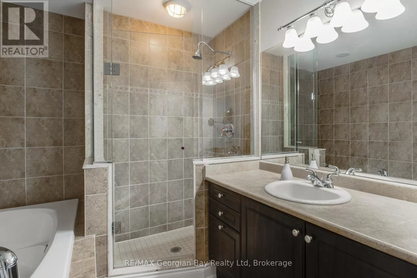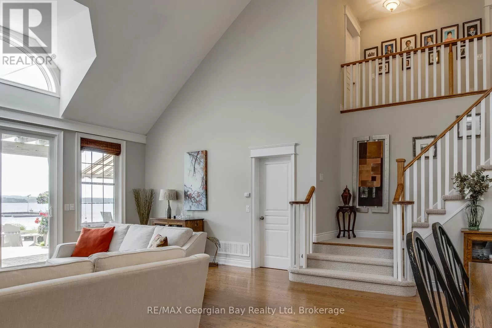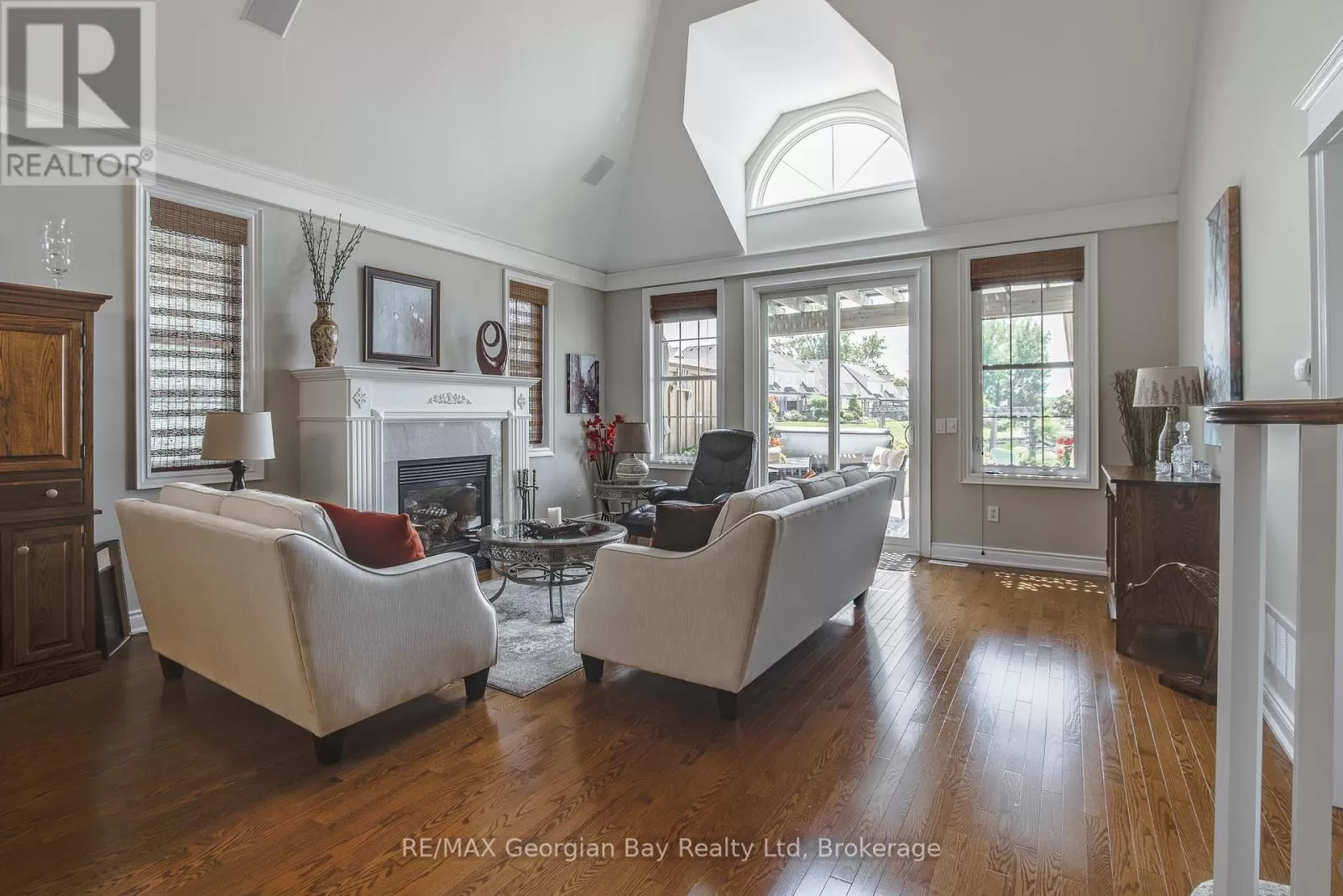 Cross Streets: WILLIAM/ALBERT. ** Directions: HWY 12 E; LEFT ON WILLIAM; LEFT ON ALBERT; RT ON WYCLIFFE COVE TO SIGN. THIS STUNNING 3000 SQ FT FREEHOLD LUXURY TOWNHOME WITH IT'S SUNSET VIEW IS BOUND TO TAKE YOUR BREATH AWAY! NESTLED WITHIN A BEAUTIFUL WATERFRONT COMMUNITY ALONG THE SHORES OF GEORGIAN BAY, THIS TURN KEY BEAUTY HAS MANY GREAT FEATURES. OPEN CONCEPT KITCHEN WITH PLENTY OF CUPBOARDS; SOLID SURFACE COUNTERS WITH BAR SEATING; DINING AND GREAT ROOM BOASTS VAULTED CEILINGS, A COZY GAS FIREPLACE, GLEAMING HARDWOOD FLOORS; WALK OUT TO THE RELAXING DECK WITH SOUTH WESTERLY VIEWS OF HOGG BAY. THE MASTER BEDROOM PROVIDES A SPACIOUS 4PC ENSUITE, HIS/HERS CLOSETS AND WALK OUT TO DECK. COZY UP TO WATCH TV OR WORK IN THE FRONT DEN. YOUR GUESTS WILL LOVE THE PRIVATE UPPER LEVEL WITH 2 BEDROOMS AND FULL 4 PC BATH. AN INSIDE ENTRY FROM THE GARAGE; MAIN FLOOR LAUNDRY, AND PANTRY CUPBOARD ARE ADDED FEATURES. THE LOWER LEVEL CONSISTS OF A VERY SPACIOUS REC ROOM, A BONUS ROOM, AND 3 PC BATH. THE UTILITY ROOM HAS PLENTY OF STORAGE SPACE; ENJOY THE PEACEFUL AND PRIVATE BACK DECK TO BBQ, DINE, RELAX, DIP IN THE HOT TUB, AND WATCH THE SUNSETS BY THE OUTDOOR FIRE ON THE LOWER PATIO. UPDATES INCLUDE A NEW THERMOSTAT, FURNACE & A/C, DISHWASHER, DRYER IN 2024; FOR YOUR CONVENIENCE THERE IS A HOME OWNERS ASSOCIATION MAINTENANCE AGREEMENT THAT WILL TAKE CARE OF ALL THE GRASS CUTTING, SNOW REMOVAL, ROOFING, AND EXTERNAL PAINTING FOR ONLY $305 PER MONTH. YOU ARE JUST STEPS TO THE BEACH, PARK, BOAT LAUNCH, MARINA, RESTAURANT, GROCERY STORE; TRAILS AND SO MUCH MORE. ! (id:27476)