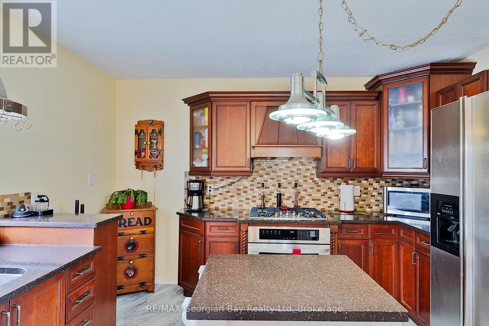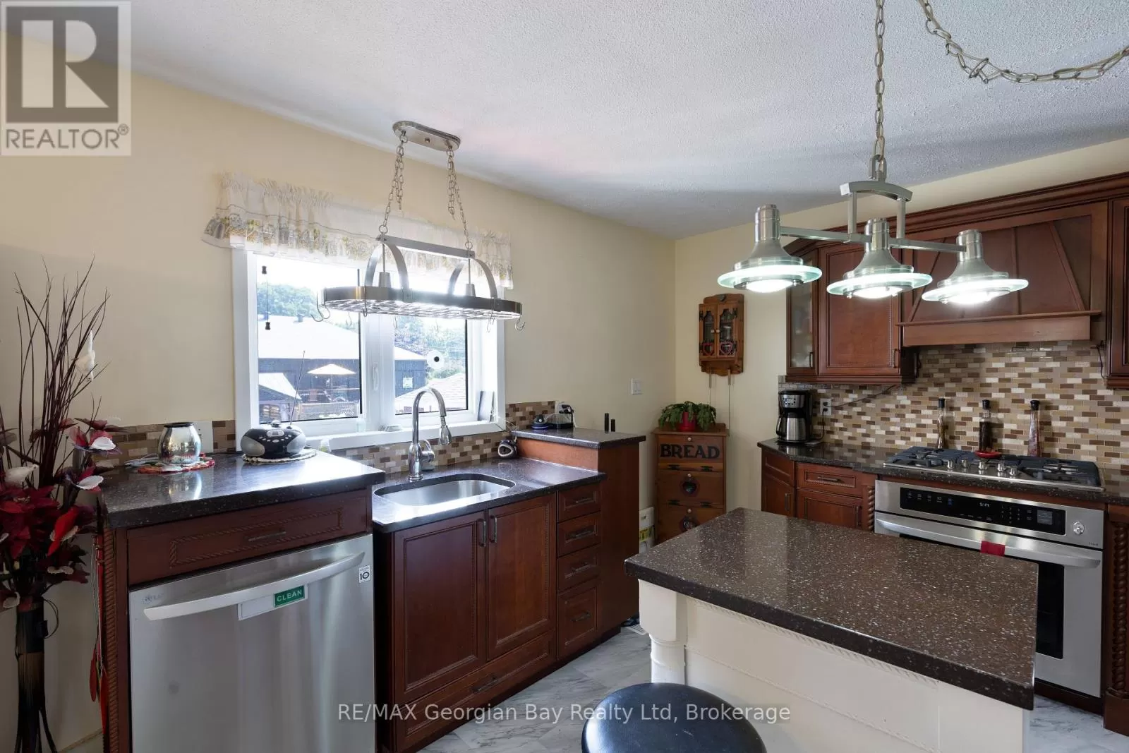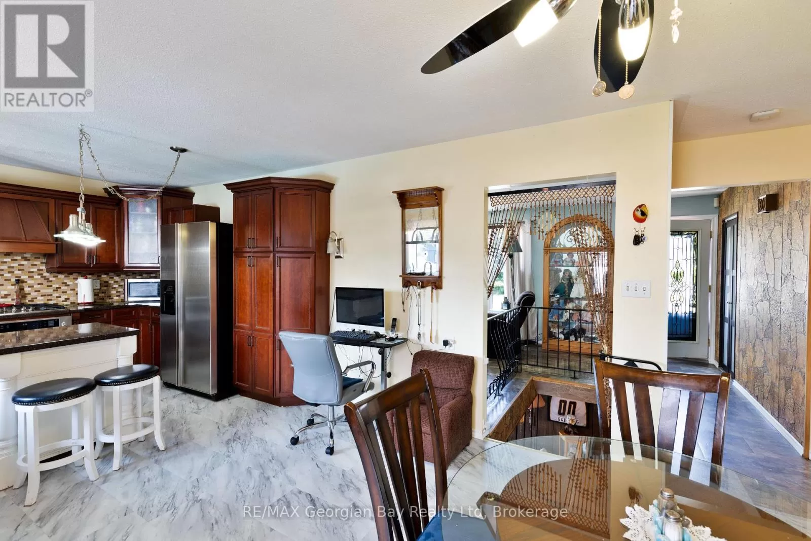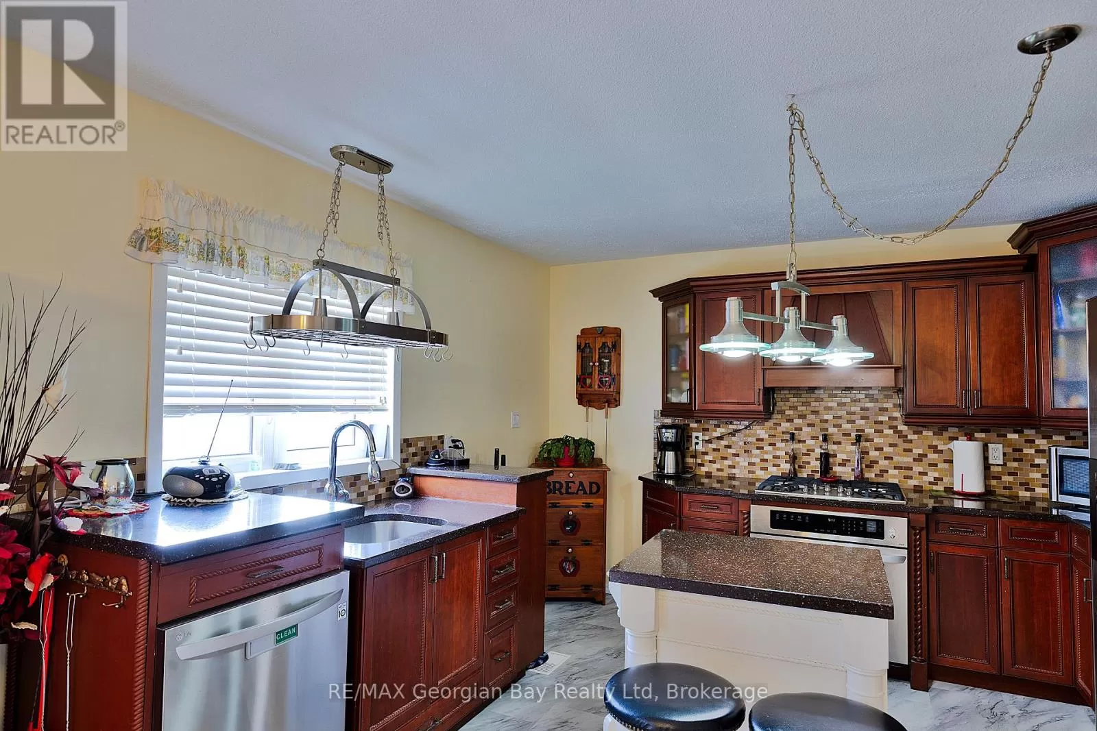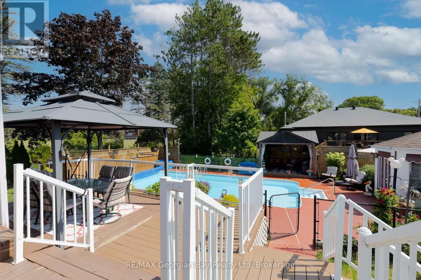 Cross Streets: Talbot. ** Directions: Hwy 12 to Talbot Street to Simcoe Ave - Sign On. This well-cared-for family home offers space, comfort, and outdoor fun just minutes from town and the shores of beautiful Georgian Bay. Featuring 3+ bedrooms and 2 bathrooms. The bright and spacious eat-in kitchen opens to a cozy living room filled with natural light. The fully finished basement includes a rec room with a bar and gas fireplace perfect for movie nights or hosting guests. Step outside to your private backyard oasis: an inground saltwater pool, cabana, gazebo, mature gardens, and a manicured lawn all within a fully fenced yard. New roof with 40 year shingles. The attached garage and ample parking complete the package. A true entertainers dream and a wonderful place to call home! What are you waiting for? (id:27476)