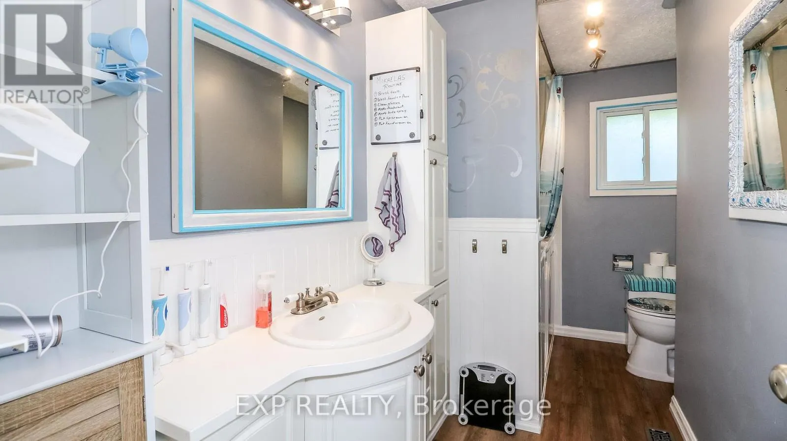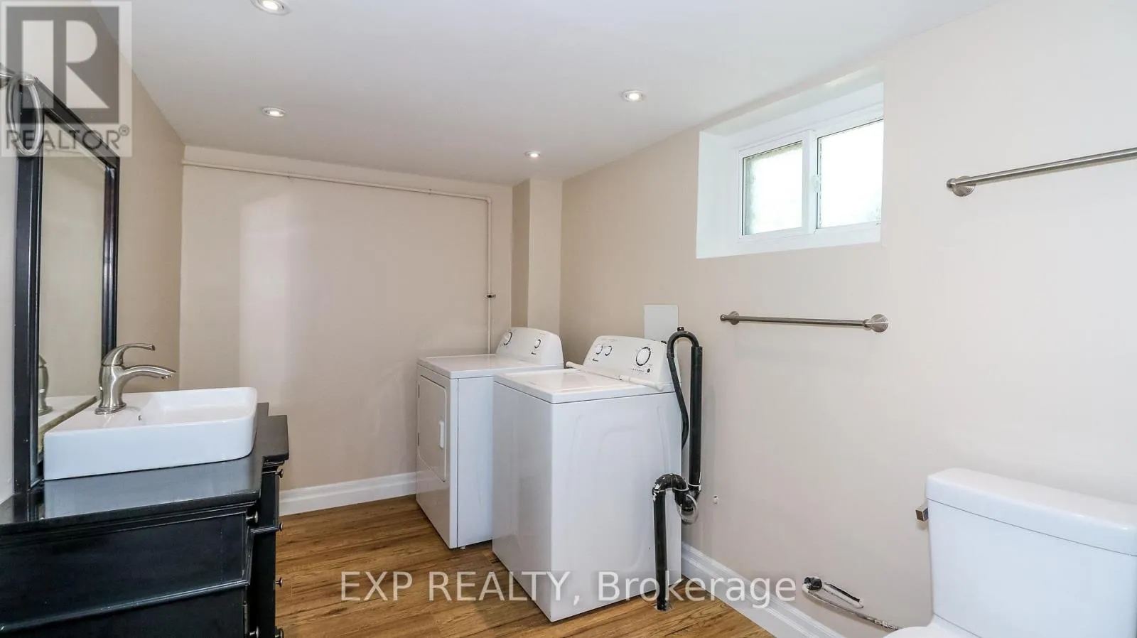 Cross Streets: Jephson and Albert. ** Directions: Hwy 12 to William St (R) on Albert, (R) on Jephson to dead end. In the quiet village of Victoria Harbour this spacious family home is located at the end of a dead end road, with forested area across the road, walk to shopping, town dock, boat lunch and the Tay walking/bike trails, school is only a few blocks away. You have the bonus of living in town, but feels like country. All brick 3 +1 Bedroom Bungalow with attached oversize garage with steps to basement and back yard access. Eat in Kitchen walks out to back deck, large living room with picture window, 3rd bedroom had laundry added. Main bath has step in accessible tub/shower. Huge side yard with plenty of room for all your outdoor fun. The bright and spacious basement was just totally redone in June 2025, offers a great space for a multi-generation family, with large Livingroom with gas fireplace, kitchen, bedroom, den, 3pce bath and it's own laundry, has walk up step to garage and main level. New shingles (2023) Heat Pump provides back up heat source and A/C. (id:27476)