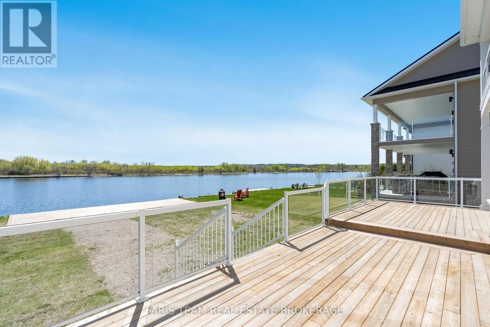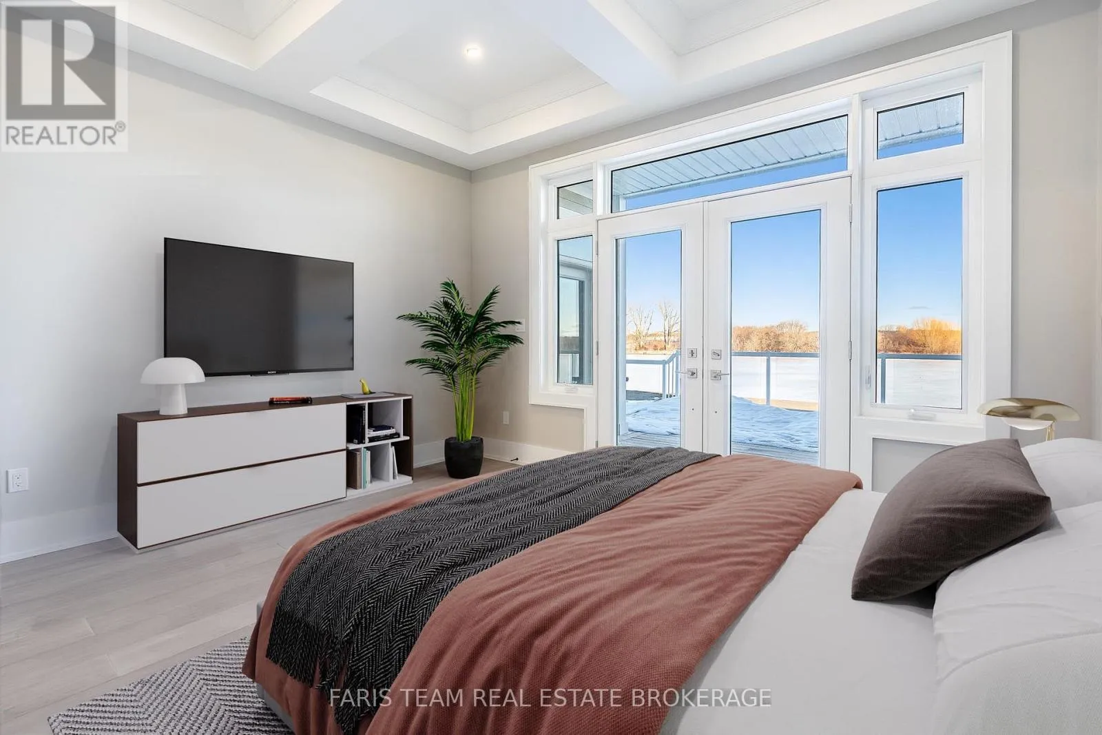 1st Ave/Dock Ln Top 5 Reasons You Will Love This Home: 1) Indulge in the epitome of waterfront living, where expansive decks and private balconies offer the idyllic setting for pre- and post-boating relaxations, diving adventures, and water activities 2) Experience culinary excellence in the well-appointed kitchen featuring a gas stove, built-in oven, and a spacious island with ample seating 3) Entertain in style in the main level living room boasting a soaring 20-foot ceiling and a cozy gas fireplace, creating an inviting ambiance for gatherings 4) Retreat to two luxurious primary bedrooms, each adorned with decorative walls, captivating water views, large walk-in closets, and ensuites with heated flooring 5) Welcome guests into the grand foyer of this home and boasting excellent curb appeal enhanced by upgraded exterior lighting and an interlock driveway. *Please note some images have been virtually staged to show the potential of the home. (id:27476)