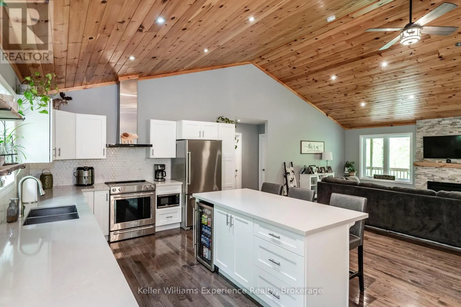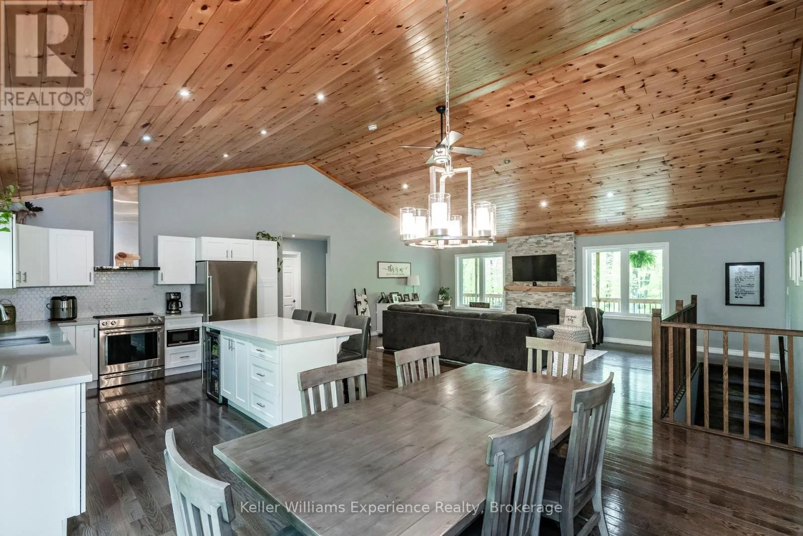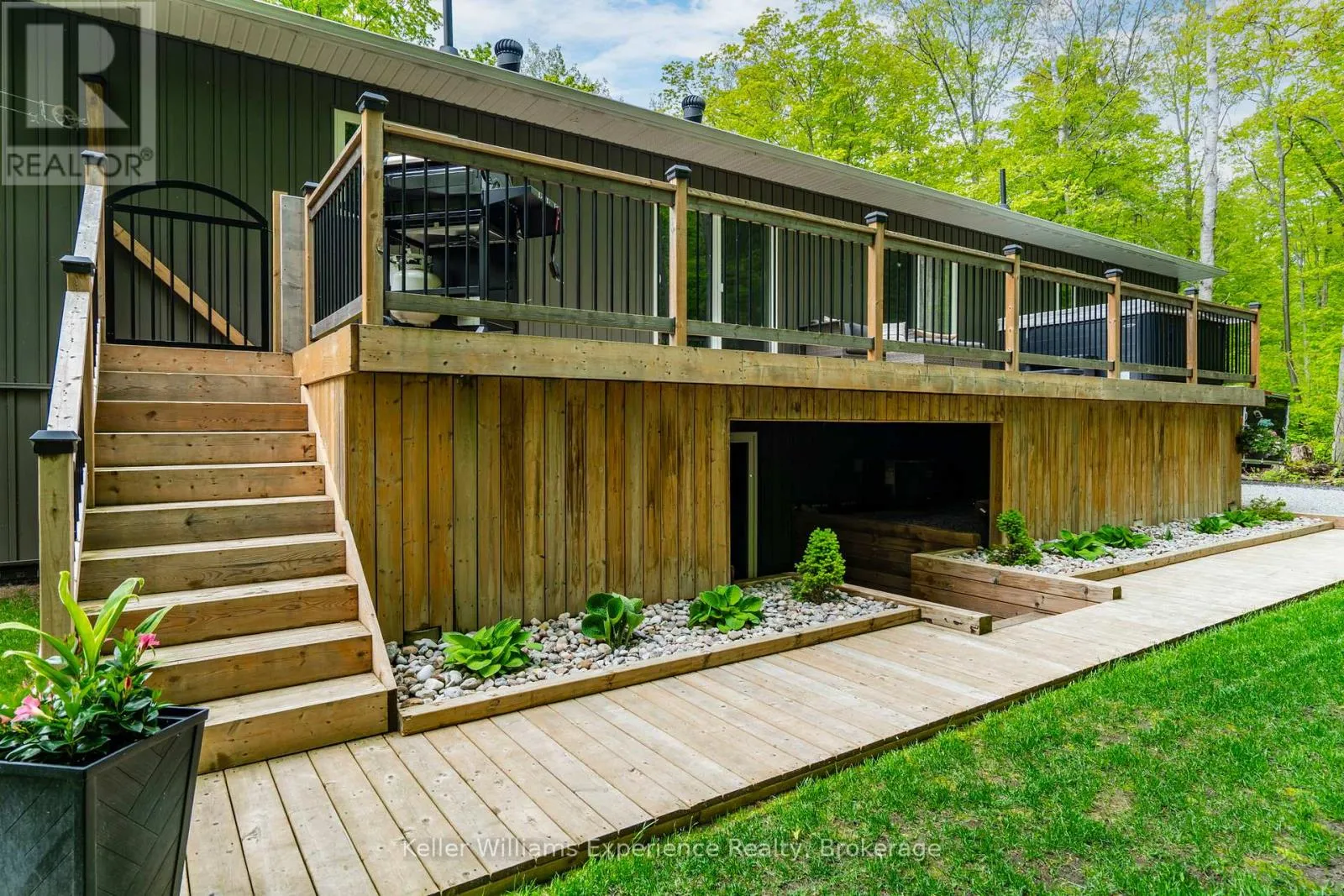 Cross Streets: Meadows Ave & Duck Bay Rd. ** Directions: Hwy 12 to Duck Bay Rd to Meadows Ave. Tucked away on a serene, 1.4 acre wooded lot with private trails, this custom built 3+2 bedroom, 3 bathroom home offers the perfect blend of luxury, comfort, and nature. Built in 2019, the open concept design features a bright, high-end kitchen with vaulted ceilings and seamless flow into the dining and living areas. Step out from the dining room or the primary suite onto a spacious back deck that overlooks your peaceful, tree-lined backyard. The primary bedroom offers an ensuite, a walk-in closet, and direct access to the deckyour own private escape. Beautiful oak hardwood floors run throughout the main level, with durable luxury vinyl flooring on the lower level. The fully finished walkout basement with in-floor heating opens to a lower deck and backyard area, ideal for entertaining or simply enjoying the tranquility of the surrounding nature. A heated, oversized double car garage (over 950sqft) includes a storage loft and additional access from the rear garage door. Come experience the privacy, space, and beauty this home has to offer! (id:27476)