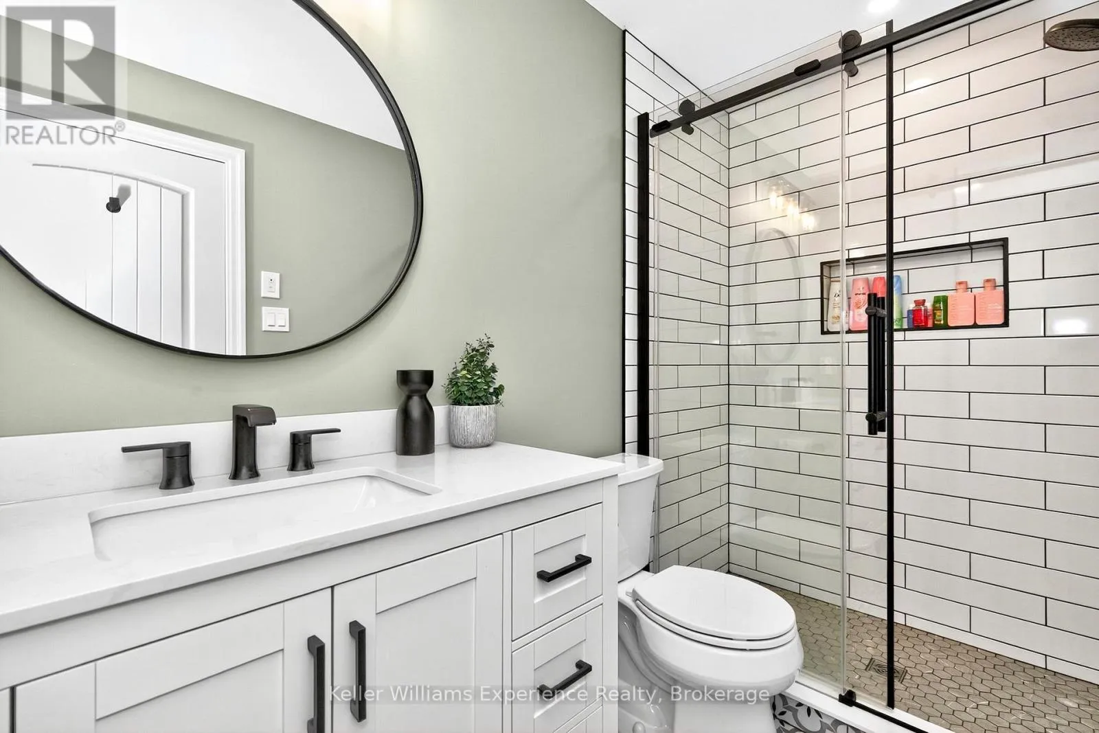 Cross Streets: Old Fort Rd & Windermere Circle. ** Directions: Hwy 12 to Old Fort Rd to Windermere Circle. From the moment you arrive, the curb appeal is undeniable. This beautifully maintained bungalow offers a landscaped yard, stone accents, a welcoming front porch, and a spacious three-car garage. Built with full ICF construction, this home is exceptionally energy efficient and designed for lasting comfort. Situated on over an acre, the property boasts an expansive backyard oasis with multi-level decking, a hot tub, and a play area - plenty of space for outdoor living and family fun. Inside, a bright foyer opens to an airy, open-concept layout with vaulted ceilings, large windows, and a fresh neutral palette. The modern kitchen features stainless steel appliances and ample storage, while the dining area is perfect for gatherings. The primary suite includes a walk-in closet and 5-piece ensuite with a soaker tub, tiled shower, and double vanity. Two additional bedrooms and a full bath complete the main level. The fully finished basement offers a large rec room with projector setup and barn doors, a play area, dedicated home gym, two more bedrooms, and a full bath. Surrounded by mature trees for privacy, this move-in ready home is located in a quiet, family-friendly neighbourhood close to schools, amenities, and recreation. (id:27476)