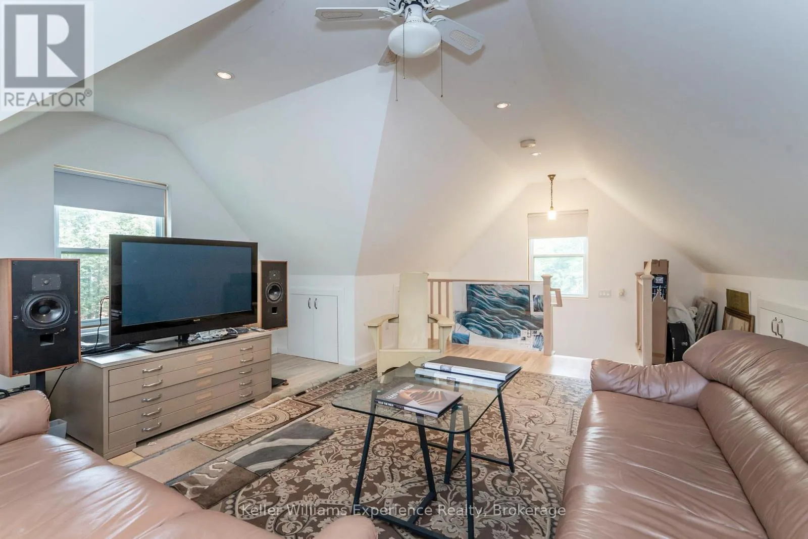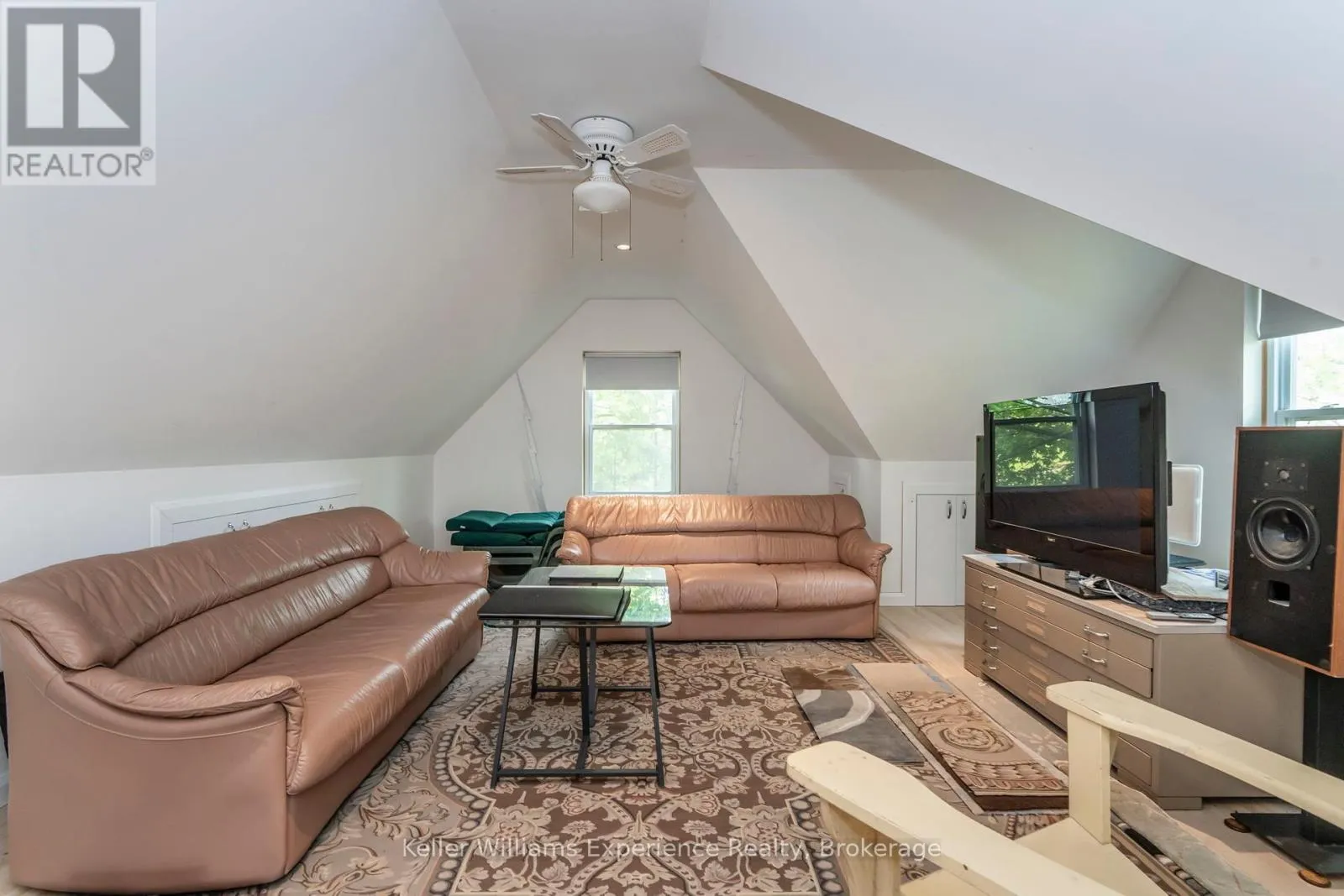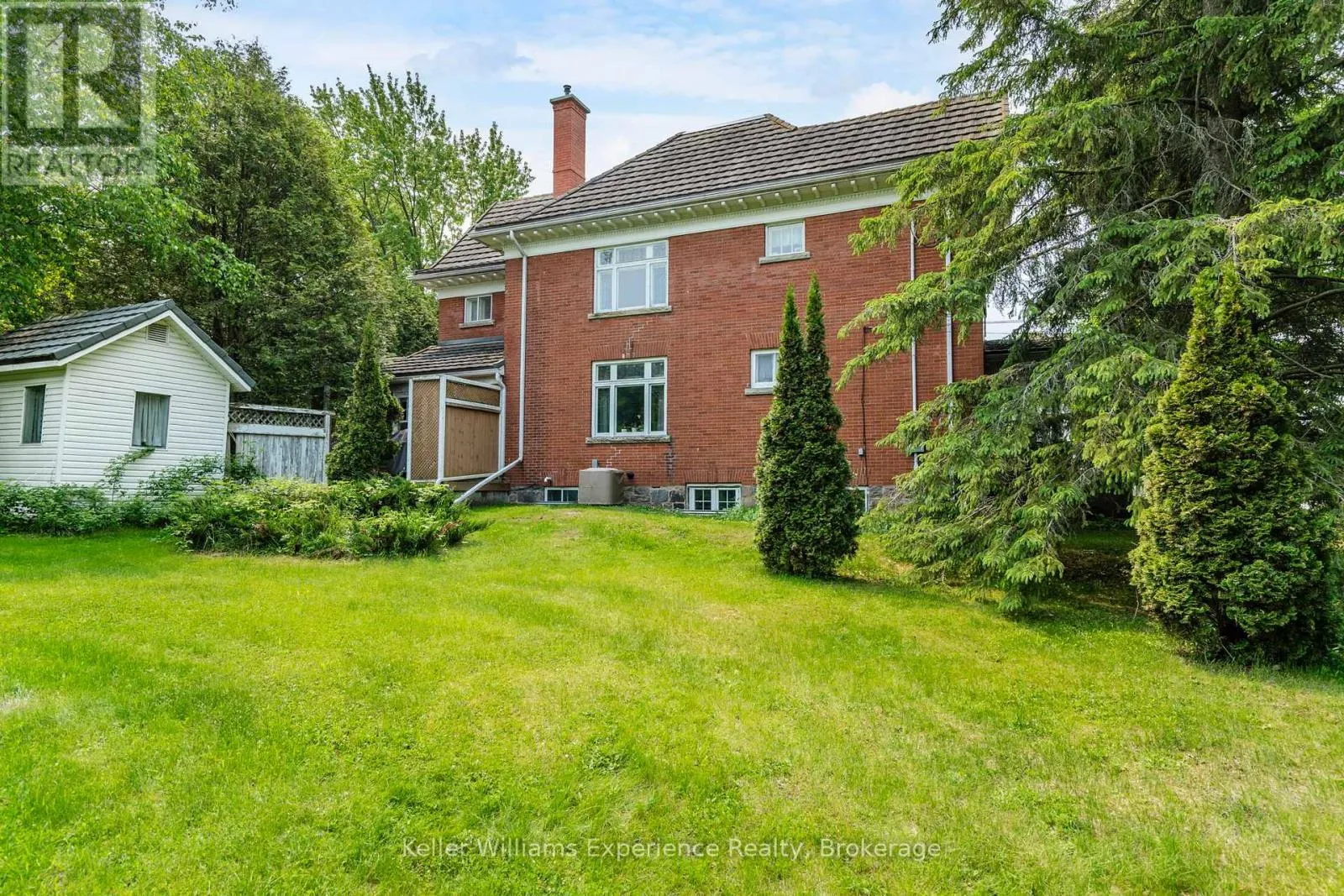 Cross Streets: Richard St & Martha St. ** Directions: HWY 12 to William st to Martha st to Richard st. Nestled on two beautifully landscaped corner lots, this timeless 1915 Edwardian home feels like a private sanctuary. From the moment you arrive, the lush gardens, wraparound veranda, and classic architecture invite you in. Inside, you'll find rich woodwork, stained glass windows, pocket doors, a grand staircase, and a maid's staircase to the kitchen - all hallmarks of a bygone era brought to life with thoughtful, modern updates. The updated kitchen and bathrooms feature quartz countertops and tasteful upgrades that blend seamlessly with the home's historic character. Upstairs, all bedrooms boast walk-in closets with lighting, and the second-storey sunroom offers peaceful lake views and unforgettable sunsets. Venture up one more level and discover a large third-floor attic with potential to create a spectacular loft or studio space. The custom-built garage with a stylish loft provides extra living space or a dream workspace! Cozy up through the seasons in your outdoor wood fire sauna and enjoy the durability of quality metal roofing on the house, garage, and sauna. Located just a 5-minute walk to Georgian Bay and local amenities, and you're just 25 minutes from Orillia and 40 minutes from Barrie. This rare gem is truly a place to be experienced. (id:27476)