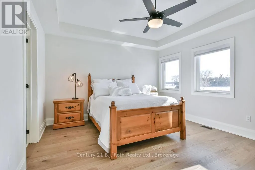 Cross Streets: Talbot St and First Ave. ** Directions: Talbot St to First Ave, drive straight towards Dock Lane. Welcome to Port Mcnic+ol's best - kept secret, Exclusive, serene peninsula on Georgian Bay, offering an unparallel waterfront living. This stunning 4 bedroom, 3 bathroom home is nestled within an intimate prestigious neighborhood, where tranquility meets modern elegance. With only a handful of homes, surrounding you privacy and breathtaking water-views from every window are yours to enjoy. Modern black framed windows and stone exterior. Step inside this meticulously maintained 3 yr old home and experience abundance of light and open space. The Livingroom is a true masterpiece boasting 20ft high ceilings, with intricate coffered ceiling and recessed pot lights, creating a grand inviting atmosphere. With 9ft ceilings throughout the main. The ensuite is a luxurious retreat offering double sinks a separate soaker tub a beautiful glass tiled shower every corner of this home radiates comfort and class with high end features such as a cold room in the basement, a heated garage and professionally installed pavers on both the driveway and backyard patio. Outside your 10X34 ft private dock sits in deep water. Perfect for enjoying a morning coffee or stepping out for an afternoon of boating and water activities. The expansive backyard is an entertainers dream, with a multi-colored LED pot lights adding a touch of magic to your outdoor gatherings. This exceptional home is not just a residence it's a lifestyle, your very own paradise awaits. (id:27476)