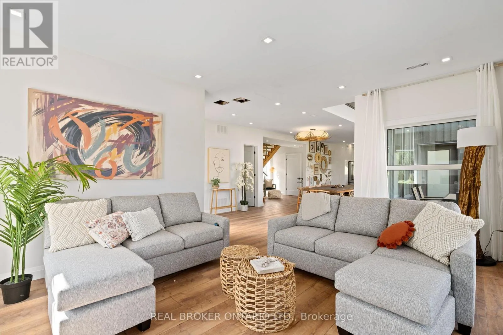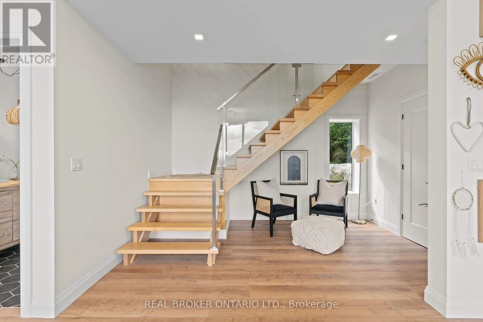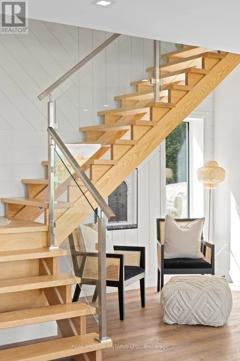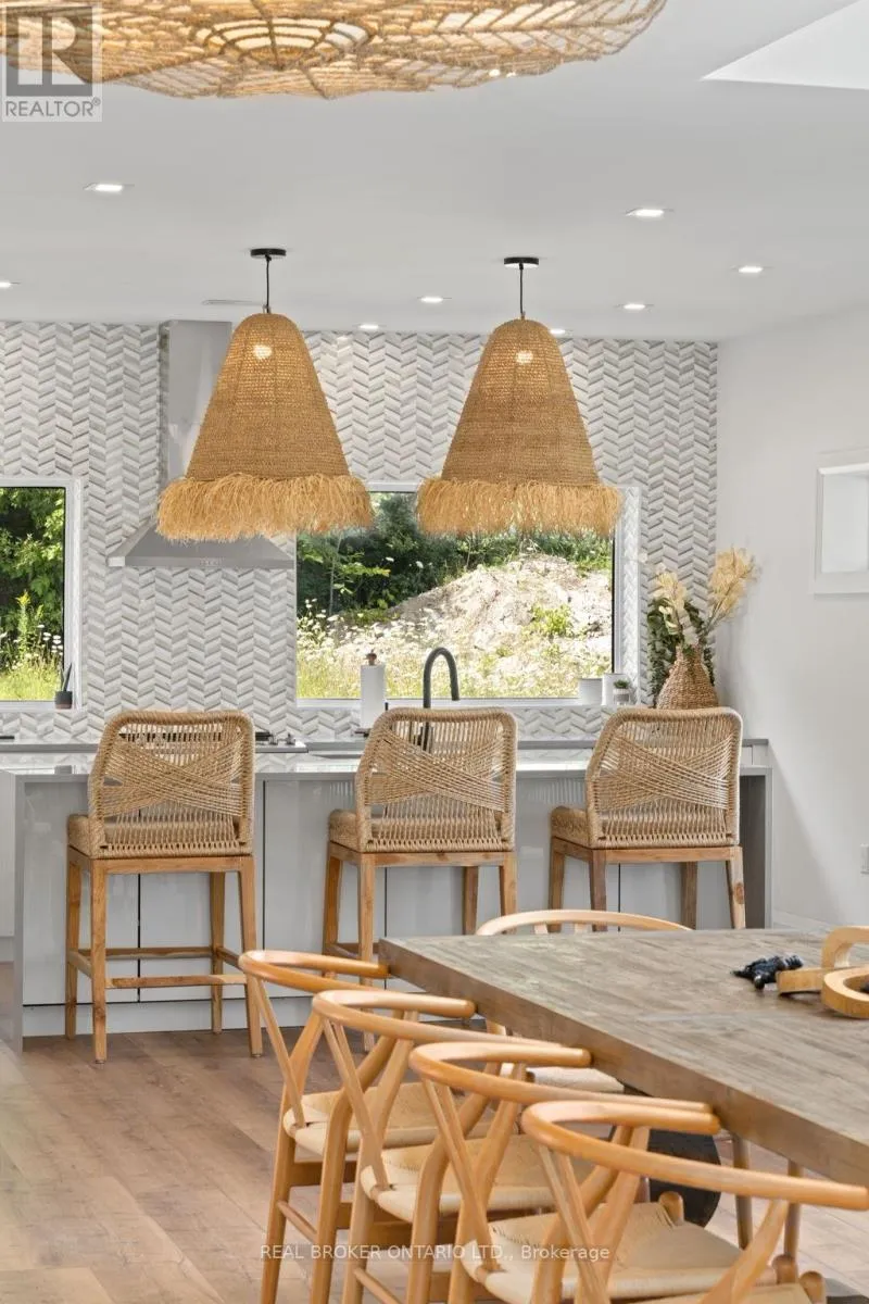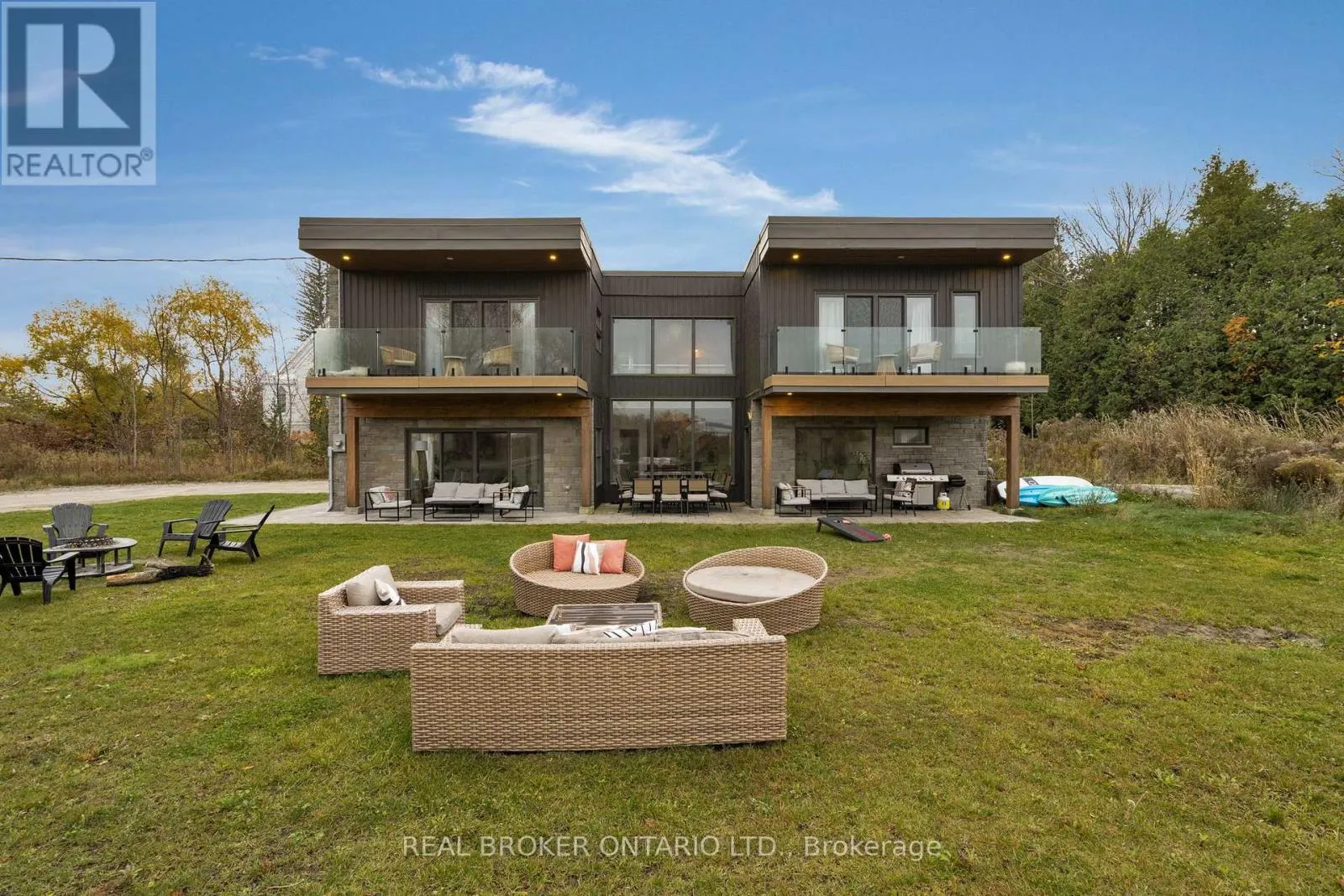 Cross Streets: Balsam Street. ** Directions: COLDWATER TO BALSAM TO HEMLOCK. Stunning custom home with views of Georgian Bay at the end of dead-end street on 294-foot-wide lot! This modern cross bohemian home is straight out of a magazine on over 0.5 of an acre. The main level is vast and open with 9-foot ceilings, a great room with plenty of windows and patio doors out to the wraparound interlocked patio and of course a cozy fireplace. The dining room has main to 2nd floor windows and will suit all of your family gatherings (as will the driveway for parking). Onto the oversized custom kitchen with tons of cabinet space, Cambrian quartz waterfall island and countertops and sleek herringbone mosaic backsplash. There is also access to the yard from the kitchen which is perfect for barbequing or just hanging outside with loved ones. This floor finishes up with the main floor laundry and large storage area, powder room and walk-in closet. Up the open staircase and glass railing you reach the 2nd floor where the 9-foot ceilings continue (the home is ICF). A flex space is perfect for the kids to get away from the parents or could be used as an office space with Juliette down to below and a massive window facingthe vast waterfront. An ideal spot to watch all of the windsurfers and boats go by. Four large bedrooms on this level with vinyl and heated floors all with at least a double closet, if not two doubles. Two full bathrooms, each with 5-pieces (dual vanities) and two covered balconies (with composite decking) facing the water perfect for the pink and purple regular sunsets. Enjoy nature at your doorstep with tons of trees, the Tay Trail with over 18 kilometer's to explore or Waubaushene Beach and Pier just a short walk away. 5 minutes to 400 HWY, LCBO and Tim Hortons, 30 minutes to Barrie, 80 minutes to Pearson Airport. Waubaushene's quiet loving town will win you over. Painted with Benjamin Moore March 2025. Driveway 2025 (crusher run) (id:27476)