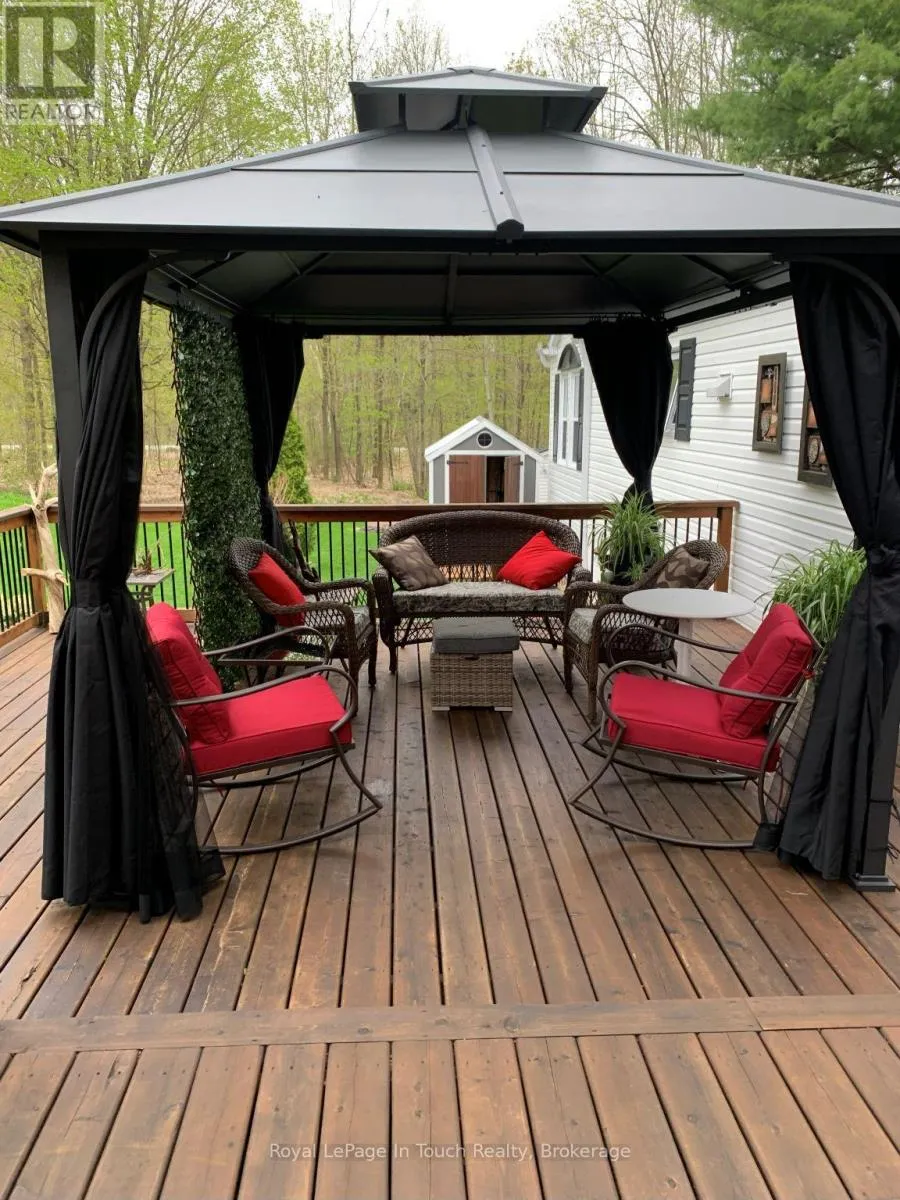 Cross Streets: Old Fort Road. ** Directions: Hwy12 to Old Fort Rd. Turn Right on to Elliott Sideroad. Welcome to Candlelight Village, a well-established 50+ Adult Community in Midland, located just minutes from Beautiful Georgian Bay and the conveniences of the downtown area. This Meticulously cared for 2-Bedroom, 1-Bath, 1,041 sq ft, 16' Wide modular home sits on a Large, Beautifully Landscaped Lot featuring Numerous Perennial Gardens, Mature Trees, Manicured Lawns, a New 20' x 26' Deck and Large Gazebo for added Privacy. Inside, the Bright, Open-Concept Layout offers ample Storage with multiple Large Closets and a Kitchen Pantry, along with Recent Updates including a Remodeled 4-Piece Bathroom and newly Updated Kitchen Countertops and Cupboards. The home includes 200-Amp electrical service with Economical Electric Forced-air Heating and Air Conditioning as well as an Optional Generator available to be purchased for added peace of mind. Residents of Candlelight Village have access to a Clubhouse with weekly Activities and an optional Social Club. Enjoy the Beauty of Country Living while still being close to Midland's Essential Health Care services, Shopping, Marina's, Walking Trails, and all the Recreational Opportunities living in Simcoe County has to offer. The home is only minutes to Hwy400, and a short drive to Barrie and Orillia! This home presents a Comfortable, Secure, and Economical option for those looking to Enjoy a Relaxed Retirement Lifestyle in the Georgian Bay area. Additional Lease Agreement Details are available upon request. (id:27476)