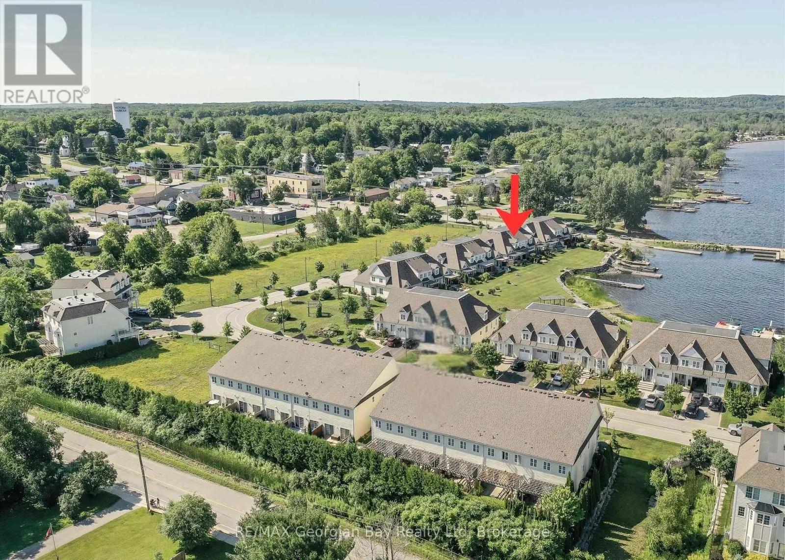 Cross Streets: William St and Albert St. ** Directions: Hwy 12 to William St to Left on Albert St to Right on Wycliffe Cove - Sign on Left. Georgian Bay Waterfront perfect for those wanting to retire in style into an amazing community with all your needs looked after. This freehold end unit townhouse is directly on Georgian Bay and includes a registered Maintenance Agreement that will look after grass, snow, shingles and exterior painting, for stress free living. This sought after Paradise Point model designed for main floor living features: Open Concept Great Room overlooking waterfront with soaring vaulted ceilings, gas fireplace, hardwood floors, walk out to deck * Quality Kitchen with granite tops and tile back splash * Main floor Primary with walkout and Ensuite with soaker tub & Separate Shower * Main Floor also features 9ft Ceilings, Study, Laundry, Powder Room * 2 Guest Bedrooms and Full bath on upper floor * Mostly finished basement with large Rec Rm, Gym area with Sauna, 3 Pc Bath and large storage area (dry core sub-floor under most flooring in basement) * The maintained exterior features I/G Sprinkler System, Deck with Power Awning and Pergola * Brand new Gas furnace installed in December 2025, and has Central Air, HRV and water softner * 2 Acorn Chair Lifts included, along with many other items. The owners will have access to the Common Area's. Only steps to Pharmacy/Doctors Office, Grocery, LCBO, Library, Post Office, Cafes, Waterfront Park and Boat Launch, and Tay Shore Walking/Biking Trail. Located in North Simcoe and offering so much to do - boating, fishing, swimming, canoeing, hiking, cycling, hunting, snowmobiling, atving, golfing, skiing and along with theatres, historical tourist attractions and so much more. Only 10 minutes to Midland, 30 minutes to Orillia, 40 minutes to Barrie and 90 minutes from GTA. (id:27476)