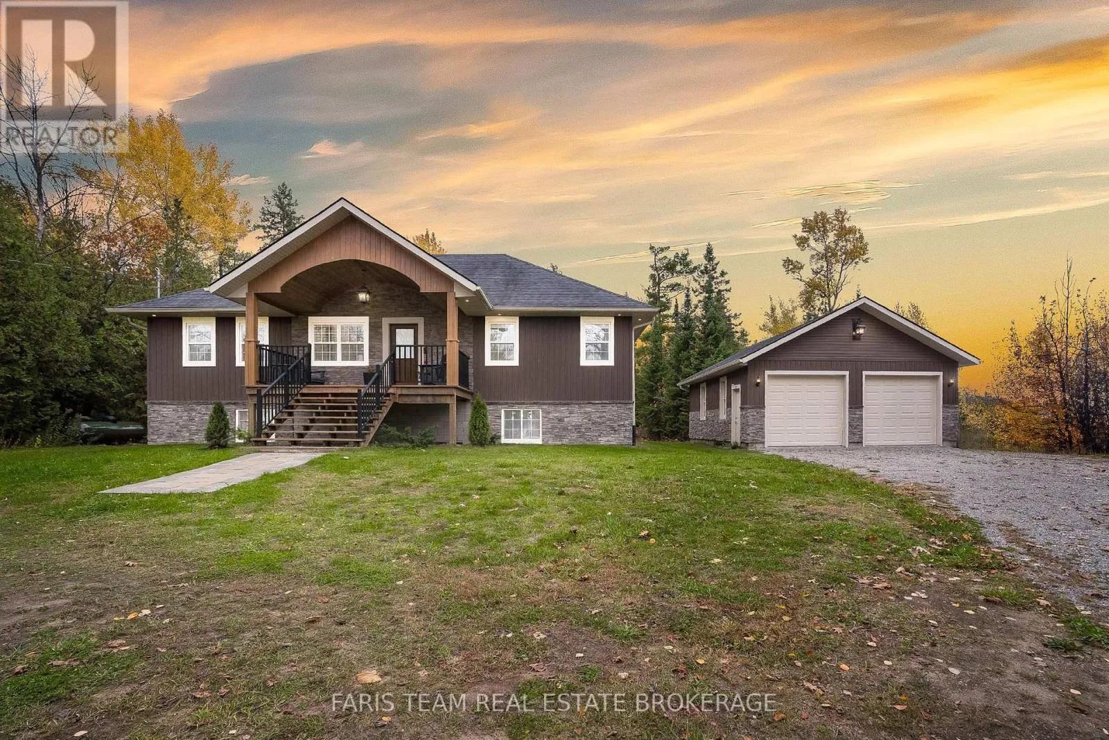 Forest Harbour Pkwy/Meadows Ave Top 5 Reasons You Will Love This Home: 1) Completed in 2018, this 1,370 square foot raised bungalow features a bright and inviting open-concept layout with soaring 10' ceilings, perfect for entertaining and everyday living, while the main level flaunts a warm ambiance with a propane fireplace and central air for year-round comfort 2) Established on over 2-acres of mixed forest, this property offers peace, privacy, and room to roam while being just minutes from Highway 400, Midland, and Barrie, making it the ideal mix of rural tranquility and convenient access to amenities, while being just 1.5 hours from Toronto 3) Indulge in the oversized 24'x28' detached double garage delivering 9' wide doors, 9.5' walls, and plenty of space for vehicles, tools, and recreational equipment, excellent for hobbyists, storage, or anyone who values extra room to work 4) The high and dry basement offers 8'4'" ceilings, large windows, and roughed-in plumbing for a third bathroom, making it an ideal blank canvas for a future family room, extra bedrooms, or an in-law suite 5) Appreciate a spacious 12'x26' rear deck overlooking the natural surroundings, a WETT-certified airtight wood stove rated for 2,200 square feet, a lot survey already included, and an original cottage serving as extra storage, adding even more flexibility to this well-maintained property. 1,370 Above grade sq.ft. plus a unfinished basement. (id:27476)