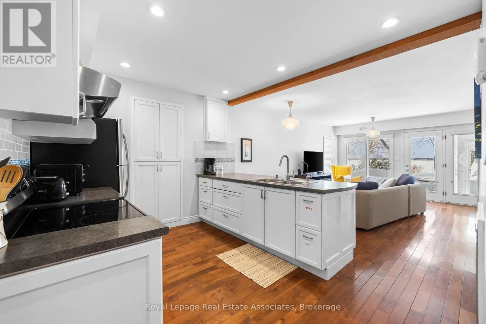 Hwy 400, Exit 149, Quarry Road, Duck Bay Road, Bay Way, Long Point Road Offering exceptional value for lakefront living on the beautiful waters of Georgian Bay, this once-in-a-lifetime opportunity presents an exclusive 3+1 bedroom all-season waterfront dream home nestled on a private street at the end of a peninsula, showcasing breathtaking west-facing unobstructed views and unforgettable sunsets. The open-concept kitchen, living, and sitting areas flow seamlessly, all framed by stunning water views, while the dining room, surrounded by large windows, offers a warm and tranquil space to enjoy meals immersed in nature. Multiple sliding doors lead to an expansive deck, creating effortless indoor-outdoor living, with evenings best spent around the flagstone firepit. The second-floor primary suite is a true retreat, featuring a private balcony overlooking the serene surroundings, a walk-in closet, and a 3-piece ensuite. Additional highlights include a bright front entry, an insulated garage with workshop space, and rare drive-through access with opposing garage doors, making boat and jet ski storage and launching effortless. Low-maintenance landscaping includes two sheds for additional storage, while meticulously maintained grounds and a rock break wall protect the shoreline. Enjoy direct access to Georgian Bay with gentle shallow waters ideal for children and 4-7 feet of depth at the dock, perfect for swimming, kayaking, and water sports. Take a short stroll to Waubaushene Beaches Provincial Park and the Tay Shore Trail, with Midland, Victoria Harbour, grocery stores, and amenities just minutes away, and Mount St. Louis Moonstone only 15 minutes away, making this a true four-season destination. Rarely offered, this Peninsula Point waterfront home blends privacy, natural beauty, durability, and year-round enjoyment, delivering an unparalleled Georgian Bay lifestyle. Extras include a new water purification system, dishwasher, and deck support completed in 2024. (id:27476)