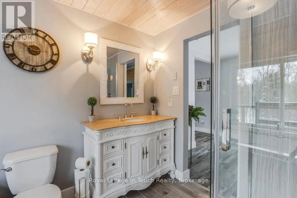 Cross Streets: Duck Bay Road / Meadows Avenue. ** Directions: Quarry Road to Duck Bay Road to Meadows Ave. This private retreat will impress you and has to be seen to be appreciated!!! This meticulously renovated/updated home has 2846 sq.ft. of living space with 3 Bed/2 Bath. A restful night sleep awaits you in the large master bedroom with a walk in closet and walkout to deck with convenient access to the amazing 14 ft. Poolspa with wi-fi. Be pampered in the elegant spa like bathroom with stand alone shower and 2 person soaker tub. Unwind in the great room offering a serene setting with a view that overlooks the forest. Open concept living features a showpiece designer kitchen with stylish quartz countertops & inviting centre island with seating for preparation and conversation that will inspire culinary creativity with plenty of storage. The dining space with additional breakfast bar expands your preparation and serving space. Enjoy a bright 4 season insulated sunroom with heated floors all year round. A generous loft bedroom with a 4-pc ensuite enables family or guests their own private space. The lower entrance boasts a family/entertainment room with cozy wood fireplace and an additional bedroom. Escape to your own private oasis in the spectacular yard nestled on 1.7 acres of natural beauty which is private and treed, featuring a granite firepit and backing onto greenbelt/EP land. The property also includes wrap around decking with multiple walk outs, two energy efficient heat pumps, solar panels to reduce your monthly costs, a detached double garage, attached double carport (easily enclosed) with inside entry, shed, abundant parking for vehicles, boats & recreational toys. Minutes to Georgian Bay, beaches, boating, swimming, fishing, golf, skiing, snowmobile, ATV, biking, walking trails. Easy Hwy access. A short drive to Midland, Orillia & Barrie, Port Severn & Coldwater. 90 minutes to the GTA. Make this you own lifetime of memories!!! (id:27476)