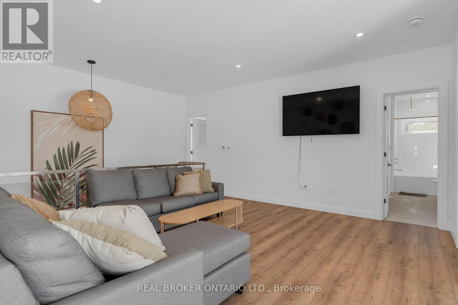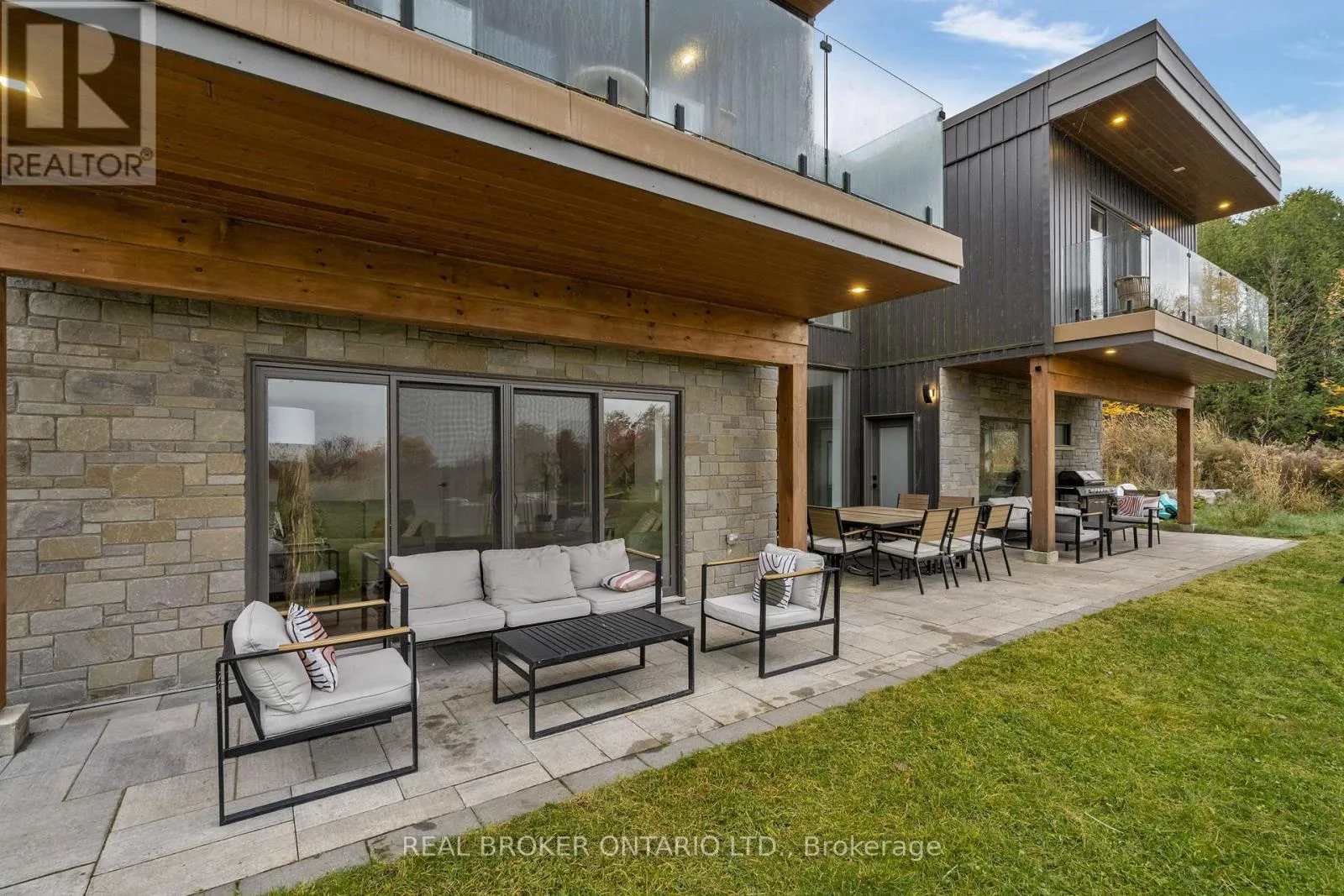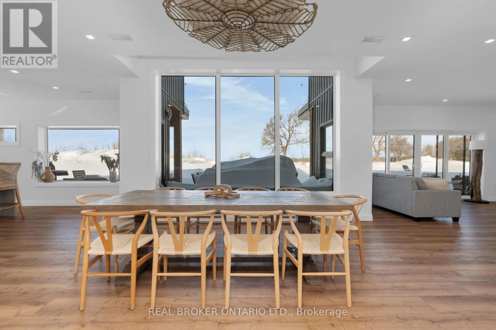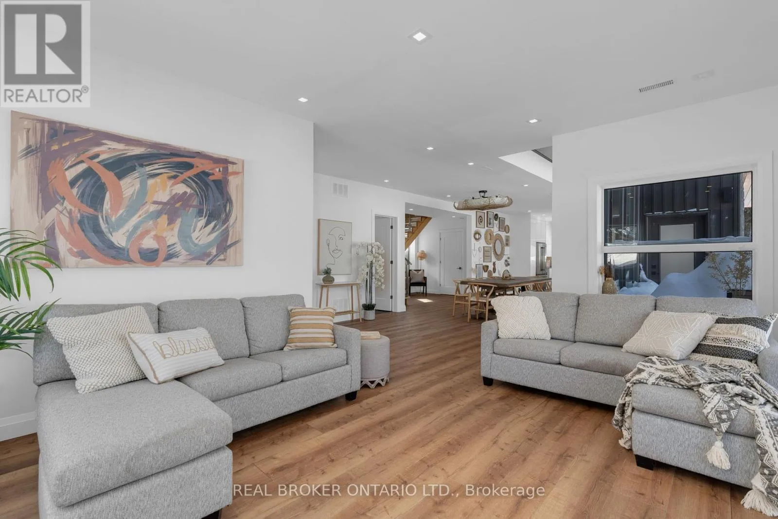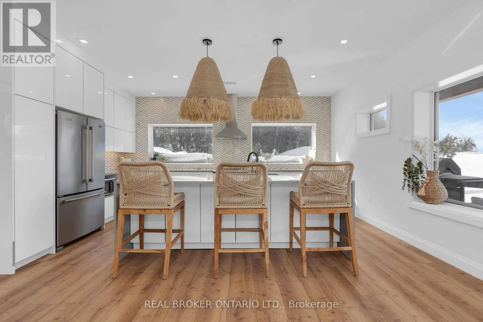 Cross Streets: Balsam Street. ** Directions: COLDWATER TO BALSAM TO HEMLOCK. Stunning custom home with views of Georgian Bay at the end of dead-end street on 294-foot-wide lot! This modern cross bohemian home is straight out of a magazine on over 0.5 of an acre. The main level is vast and open with 9-foot ceilings, a great room with plenty of windows and patio doors out to the wraparound interlocked patio and of course a cozy fireplace. The dining room has main to 2nd floor windows and will suit all of your family gatherings (as will the driveway for parking). Onto the oversized custom kitchen with tons of cabinet space, Cambrian quartz waterfall island and countertops and sleek herringbone mosaic backsplash. There is also access to the yard from the kitchen which is perfect for barbequing or just hanging outside with loved ones. This floor finishes up with the main floor laundry and large storage area, powder room and walk-in closet. Up the open staircase and glass railing you reach the 2nd floor where the 9-foot ceilings continue (the home is ICF). A flex space is perfect for the kids to get away from the parents or could be used as an office space with Juliette down to below and a massive window facingthe vast waterfront. An ideal spot to watch all of the windsurfers and boats go by. Four large bedrooms on this level with vinyl and heated floors all with at least a double closet, if not two doubles. Two full bathrooms, each with 5-pieces (dual vanities) and two covered balconies (with composite decking) facing the water perfect for the pink and purple regular sunsets. Enjoy nature at your doorstep with tons of trees, the Tay Trail with over 18 kilometer's to explore or Waubaushene Beach and Pier just a short walk away. 5 minutes to 400 HWY, LCBO and Tim Hortons, 30 minutes to Barrie, 80 minutes to Pearson Airport. Waubaushene's quiet loving town will win you over. Painted with Benjamin Moore March 2025. Driveway 2025 (crusher run) (id:27476)