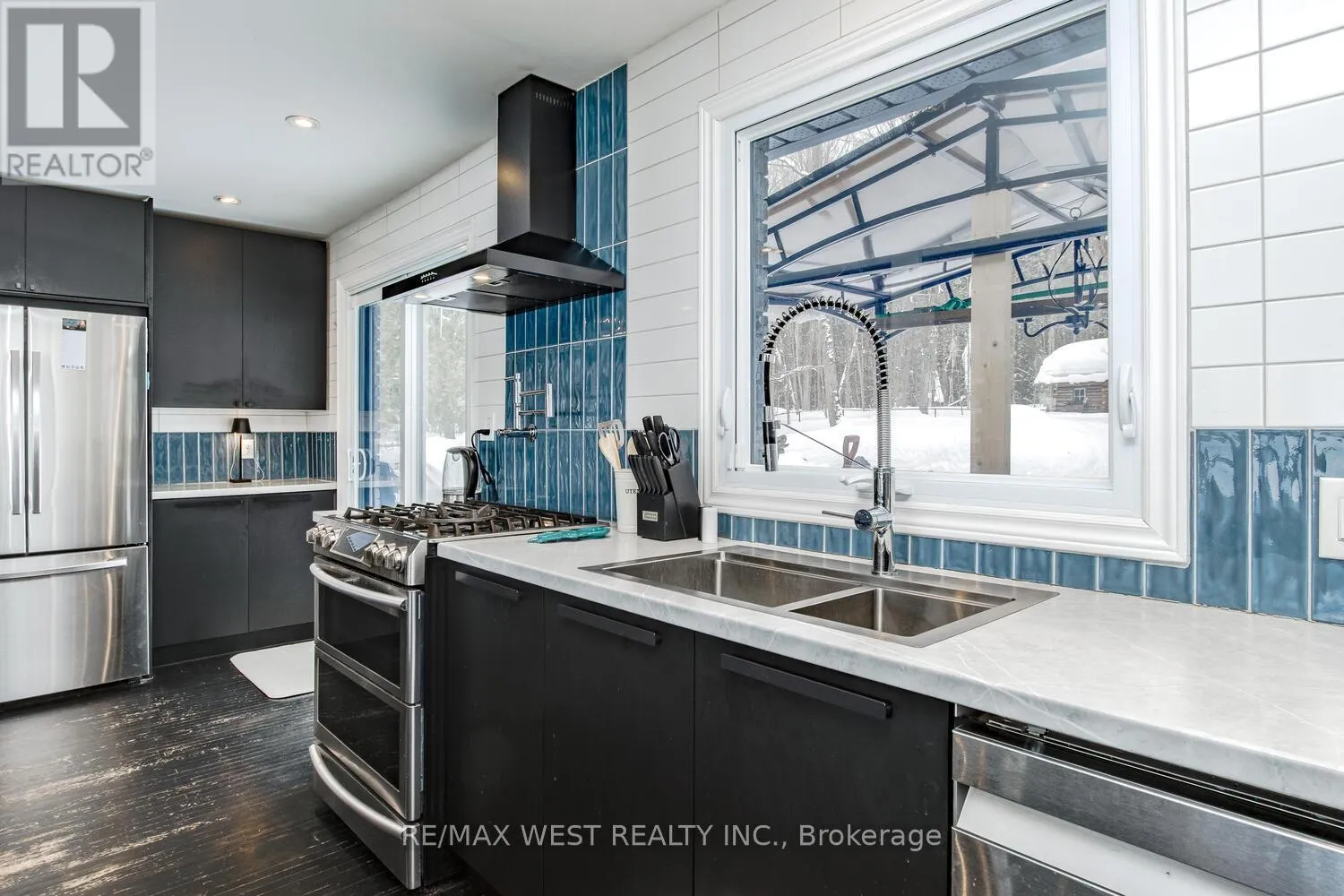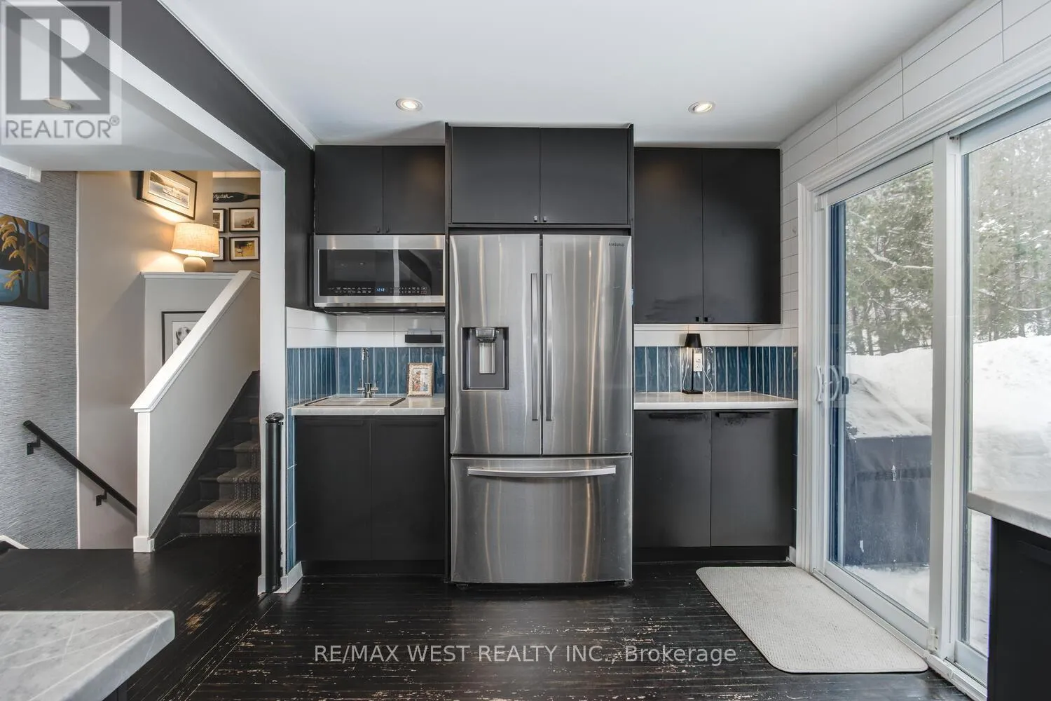 Cross Streets: Bayview Ave & Triple Bay Road. ** Directions: from Hwy 93 take Hwy 12 to Ogdens Beach Road make right follow to Bayview Ave then make a r. Wake up to Georgian Bay views and unwind beneath a twinkle-lit ravine backdrop Welcome to 169 Bayview Ave in prestigious Midland Bay Woods. Perfectly positioned in the heart of Southern Georgian Bay, this beautifully updated 4-bedroom side-split offers an exceptional four-season lifestyle. Just minutes to marinas, beaches, golf courses, scenic trails, ski hills and charming downtown Midland, the location blends natural beauty with everyday convenience all within a short drive of the GTA, making it ideal as a full-time residence or weekend escape. Backing onto a wooded ravine with a seasonal lit pathway, the property offers rare privacy while capturing sparkling bay views. Extensively updated in 2020 including roof/sub-roof, Clera windows, soffits/eavestroughs, furnace/A/C and garage door, the home offers peace of mind. The asphalt driveway accommodates 8-10 vehicles ideal for guests, boats or recreational toys while the insulated heated garage provides access to both the home and yard. Inside, warmth meets sophistication with hardwood flooring, upgraded mouldings, solid wood doors with new hardware, dimmable pot lighting and custom built-ins. The kitchen features bamboo organizers, ceramic backsplash, pot filler, gas cooktop/electric oven, Samsung appliances, butler's pantry and bar with additional sink w/on-demand hot water. A walkout leads to the flagstone patio and fully fenced yard, perfect for summer entertaining. Upstairs offers four spacious bedrooms, upper-level laundry and a 5pc bath w/double vanity and soaker tub. The lower level includes a cozy recreation room with wood-burning fireplace and a dedicated gym space with equipment available for purchase. Smart home features, municipal water, gas service, custom log shed & window coverings complete this exceptional offering. Residents can also enjoy access to Midland Bay Woods Park with neighbourhood beach access to Georgian Bay, delivering the four-season lifestyle the region is known for. (id:27476)