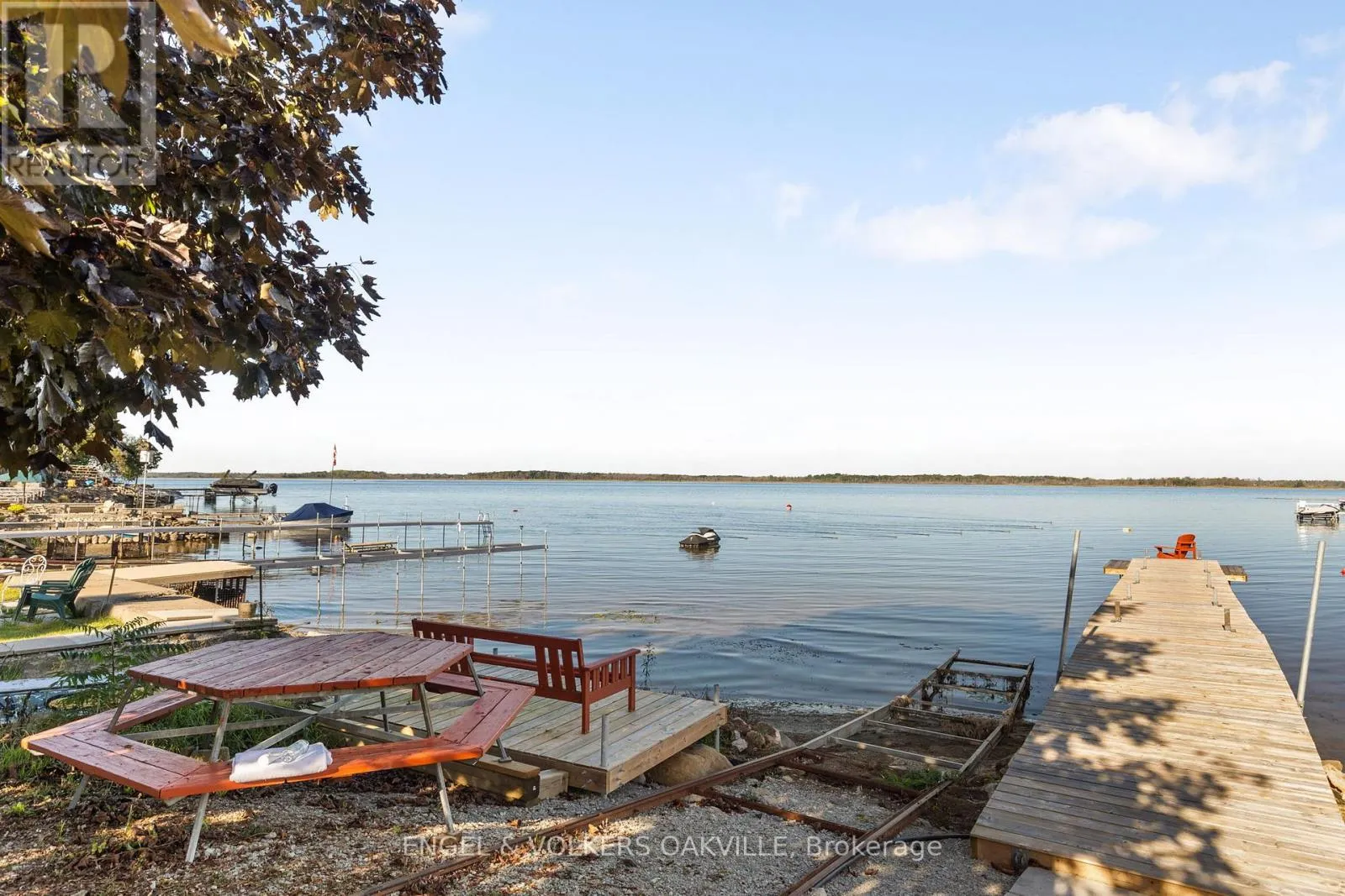 Cross Streets: Park Street/Robins Point Rd. ** Directions: Hwy 12 to Park Street to Robins Point Road. This one of a kind home is ready for you! This beautiful bungalow with 5 bedrooms and 2 full bathrooms is located on the very clean, sandy shoreline of Georgian Bay nestled in a cove. The grand foyer will lead you down a hallway into an open concept living/dining/kitchen area with plenty of space and cabinets. The large picture windows offer a breathtaking panoramic view of the bay and sunrises. The steel framed large upper deck features a spiral staircase leading to your lower level with patio. The lower level has an entrance from your living space to the heated boathouse/garage which has a bonus marine rail to launch your boat. Enjoy your backyard oasis with private beach, bonfire pit, green space and your very own 60ft dock! Fish, swim, enjoy all your favourite water sports and all that nature has to offer. There are 2 driveways to fit up to 8 vehicles for those long weekend getaways. Just minutes to the Tay shore trail, grocery stores, parks, schools and restaurants. This is it! (id:27476)