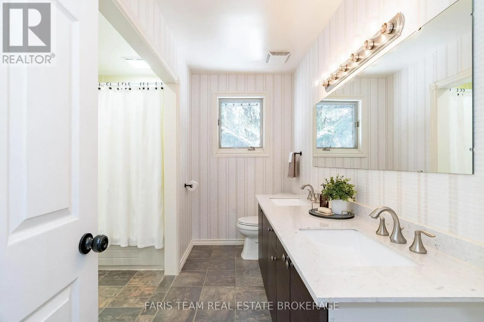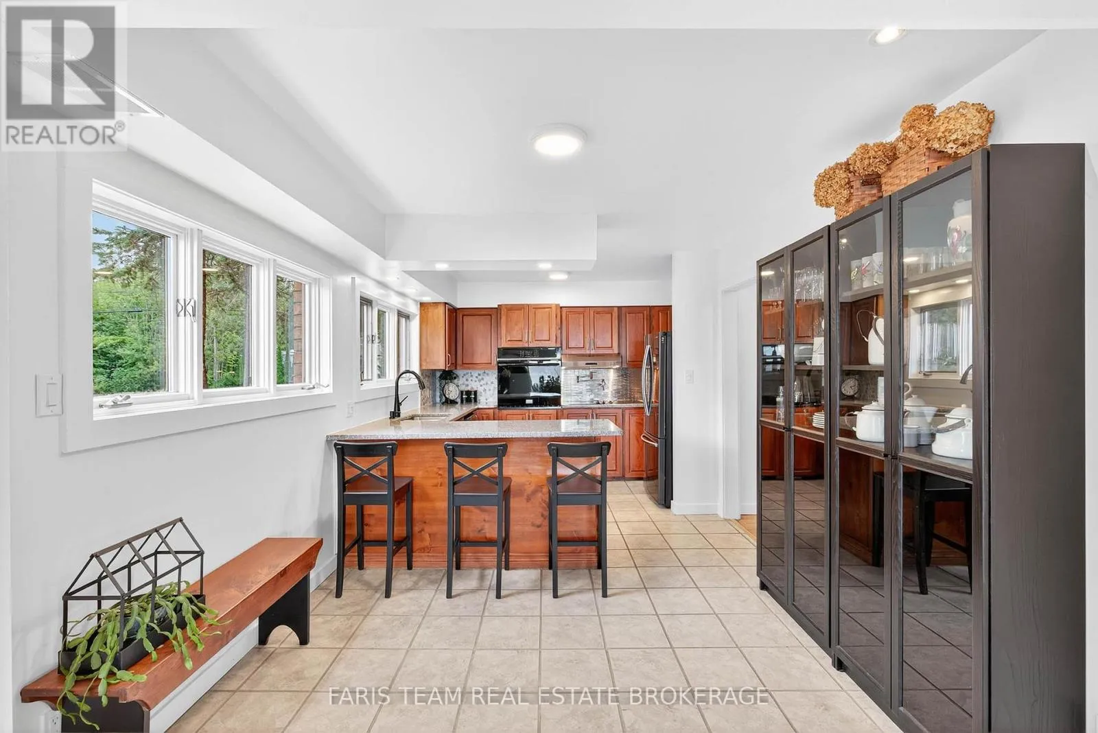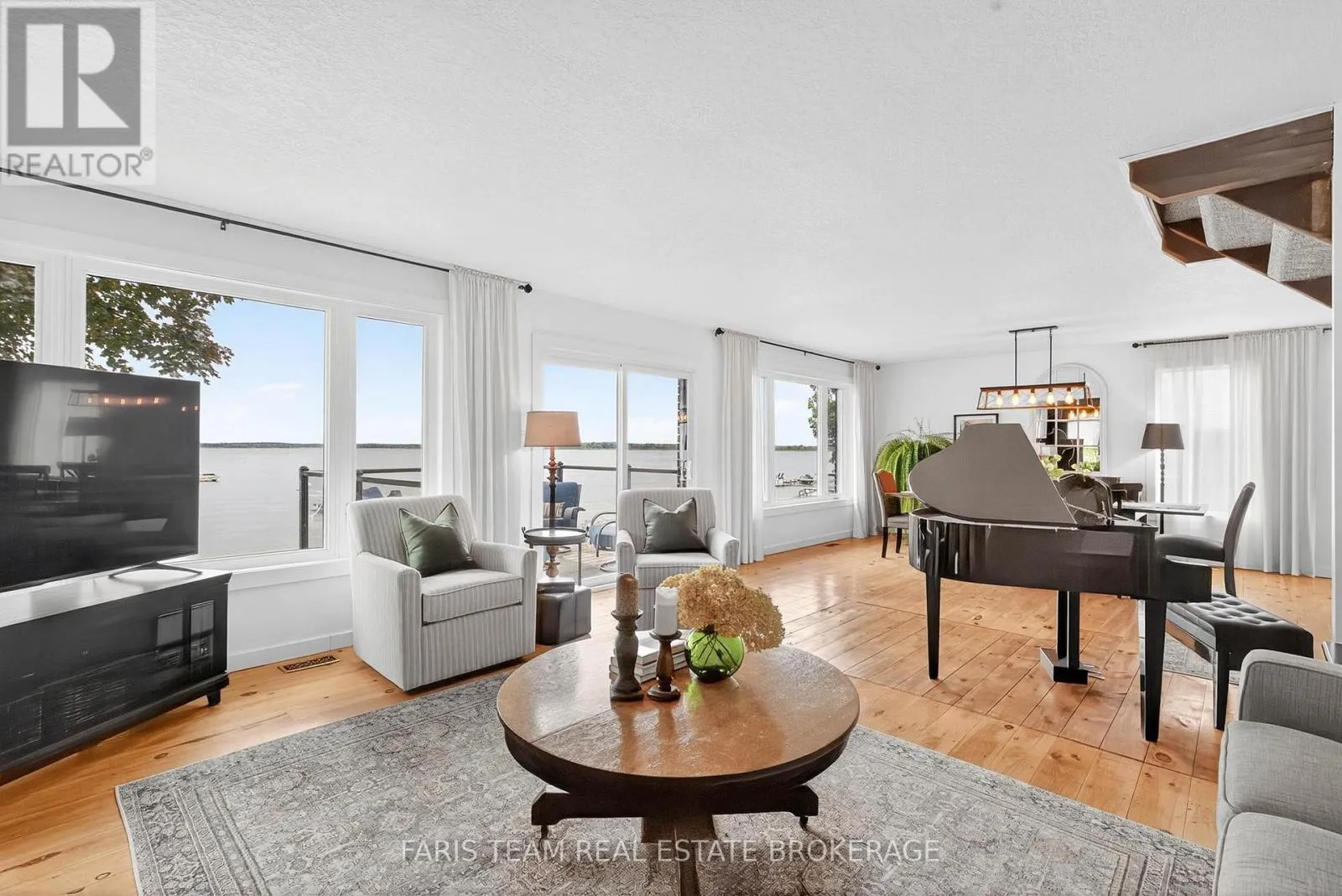 Osborne St/Robins Point Rd Top 5 Reasons You Will Love This Home: 1) Enjoy stunning waterfront living with over 50' of Georgian Bay frontage, offering expansive views and a layout that easily adapts to your needs 2) Featuring three distinct private living areas, including a fully finished lower level with its own kitchen, living space, bedroom, and bathroom, as well as an upper-level suite with a bedroom, bathroom, family room, and kitchenette, perfect for guests or rental opportunities 3) The spacious main level offers an open, flowing design with a cozy fireplace, a gourmet kitchen equipped with granite countertops and built-in appliances, as well as a quiet sitting room ideal for a home office, and a conveniently located laundry area 4) Thoughtfully updated between 2020 and 2024 with new heating and cooling systems, updated windows and patio doors, a refreshed roof complete with skylights, modern siding, and newly built decks 5) Located in the heart of Victoria Harbour with quick access to everyday amenities and Highway 400, making travel to Midland, Orillia, Barrie, and Toronto fast and convenient. 3,147 square feet plus a finished basement. (id:27476)