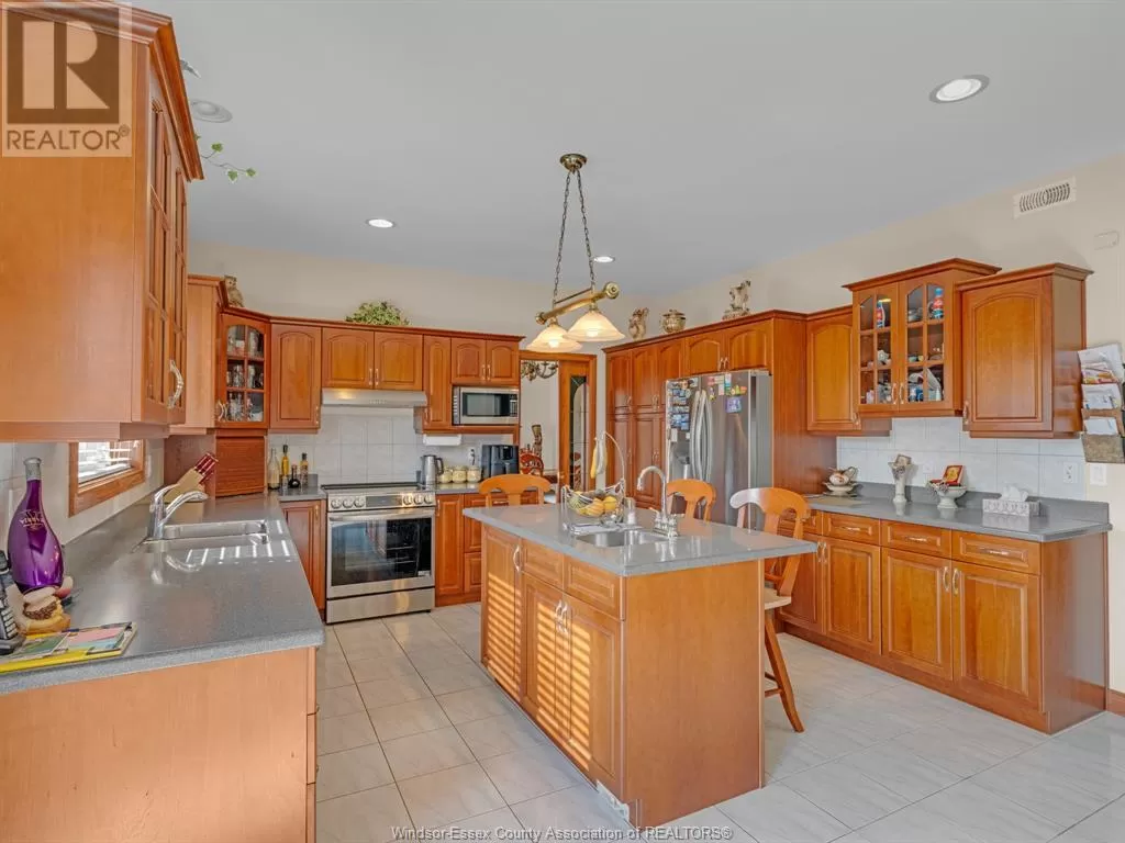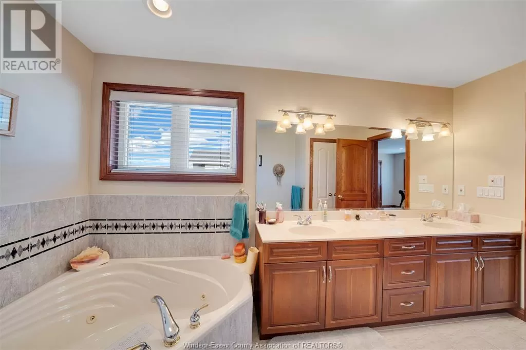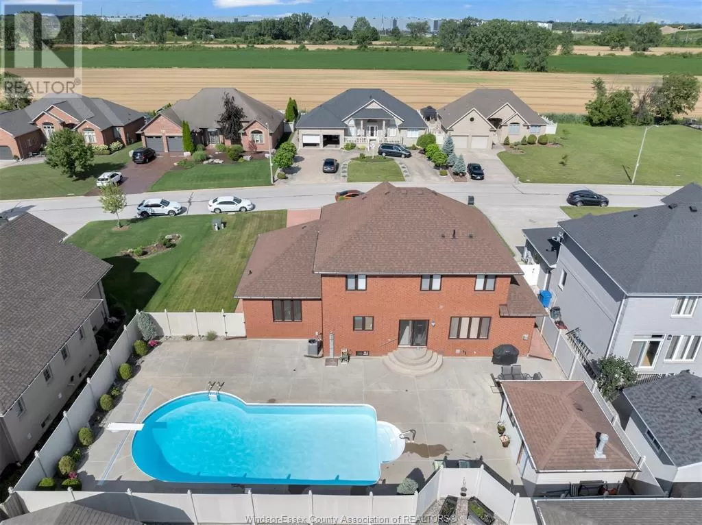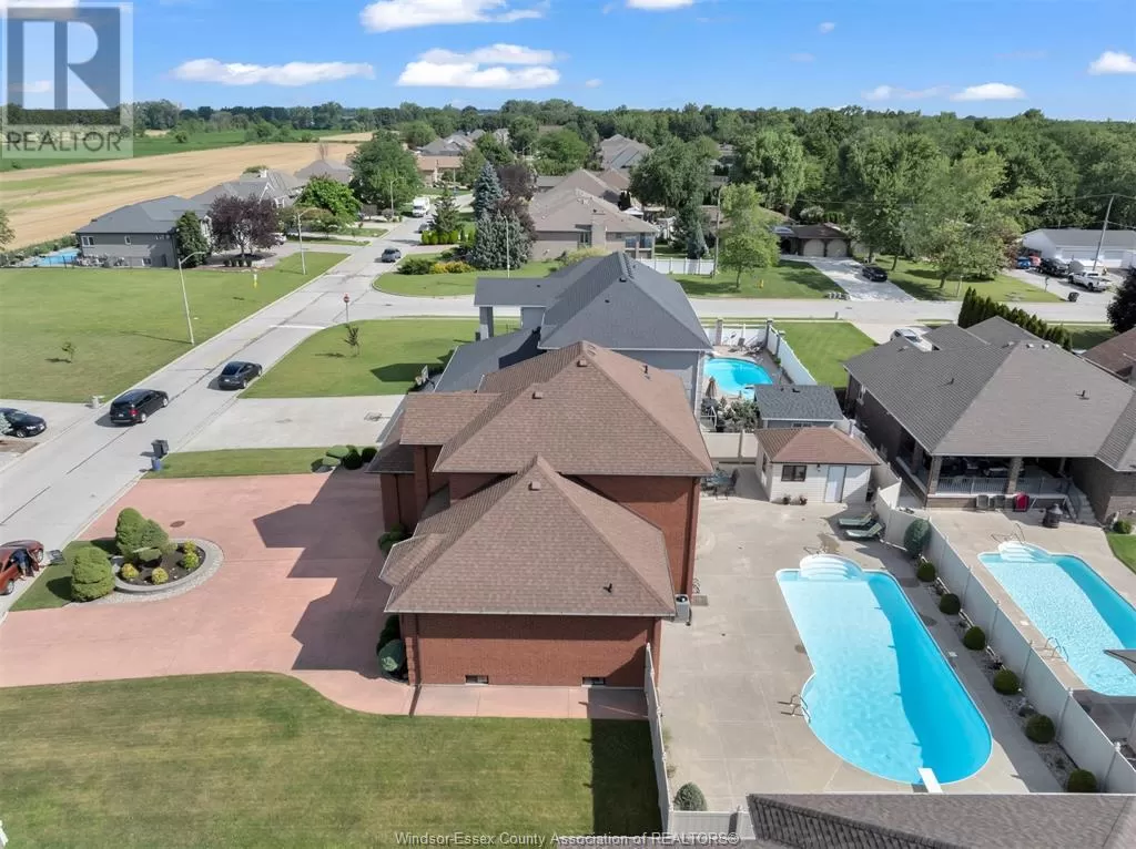Custom built home located on a quiet oul-de-sac in a sought after neighbourhood in Tecumseh. Features 3 Bedrooms & 3 Baths, spacious foyer, lrg eat-in ktchn w/custom cherry wood cabinets, liv rm & dining rm w/ 11 ft ceilings & main flr laundry. Primary bdrm is complete w/ ensuite & jacuzzi tub as well as his & her walk-in closets. Heated in-ground salt water pool, shed, 2 car garage, massive circular concrete driveway, vinyl fence & sprinkler system. Min from Vista Academy, EC Row, LG Plant. (id:27476)
