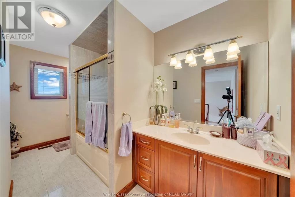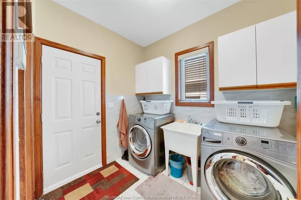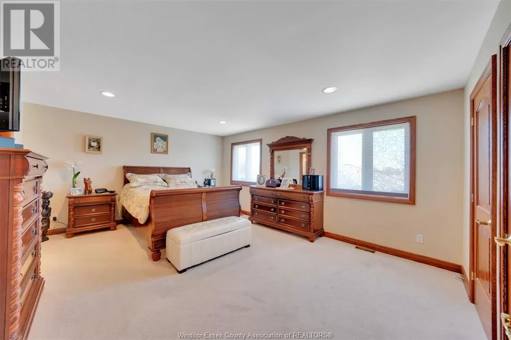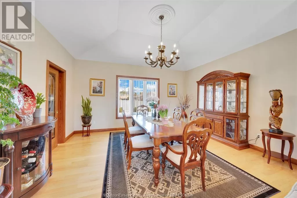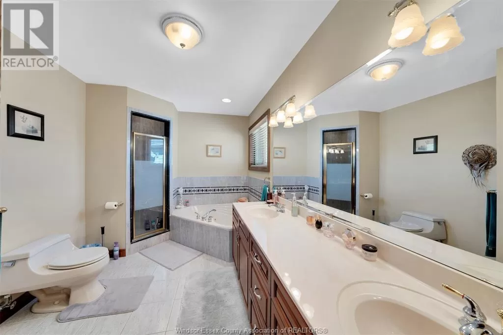 Custom built home located on a quiet oul-de-sac in a sought after neighbourhood in Tecumseh. Features 3 Bedrooms & 3 Baths, spacious foyer, lrg eat-in ktchn w/custom cherry wood cabinets, liv rm & dining rm w/ 11 ft ceilings & main flr laundry. Primary bdrm is complete w/ ensuite & jacuzzi tub as well as his & her walk-in closets. Heated in-ground salt water pool, shed, 2 car garage, massive circular concrete driveway, vinyl fence & sprinkler system. Min from Vista Academy, EC Row, LG Plant. (id:27476)