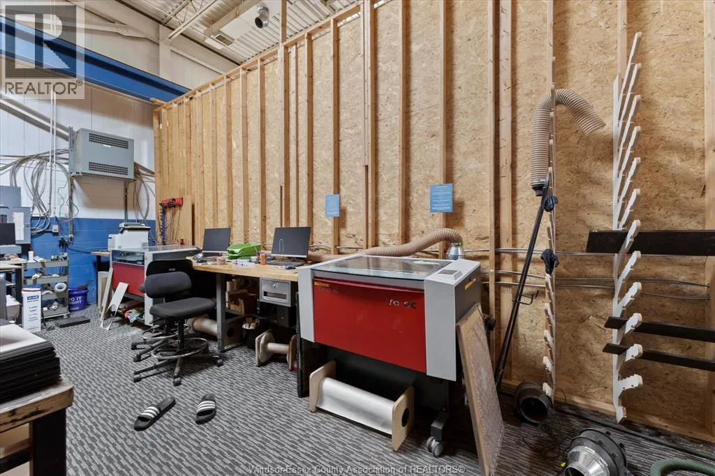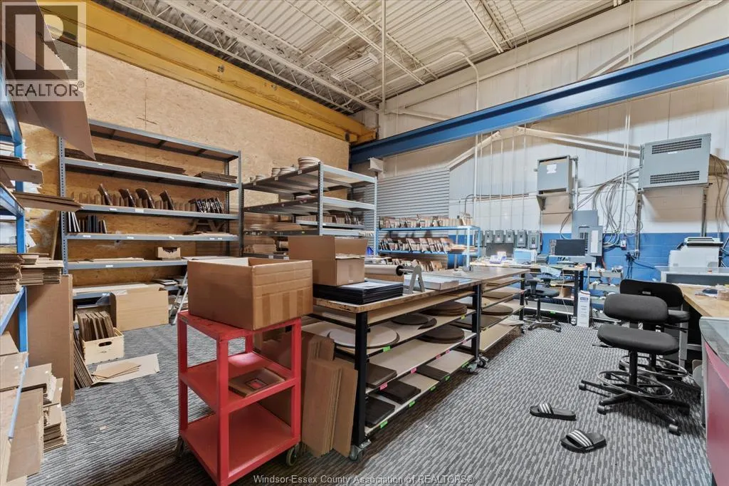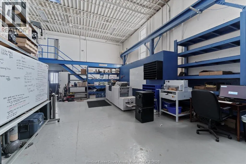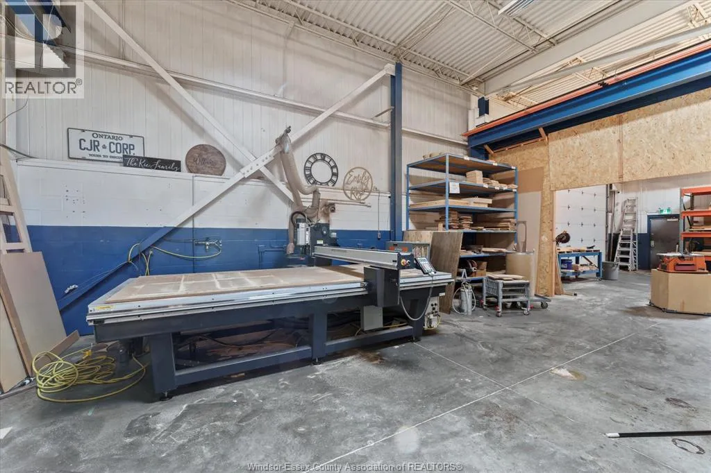 Very well-maintained industrial building in Oldcastle featuring a 6,000 sq. ft. shop, 1,800 sq. ft. of office space on two levelsâcomplete with a reception area, private offices, a kitchenette, and three washroomsâand a 200 sq. ft. compressor room. The shop is equipped with two small cranes, compressed air lines, and skylights. Additional features include an outdoor dock-height loading dock and two grade-level doors. Ample parking is available at both the front and rear of the property. Immediate possession (id:27476)