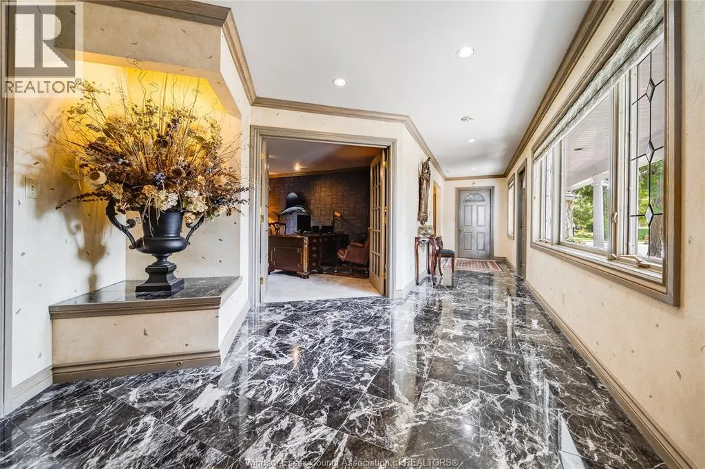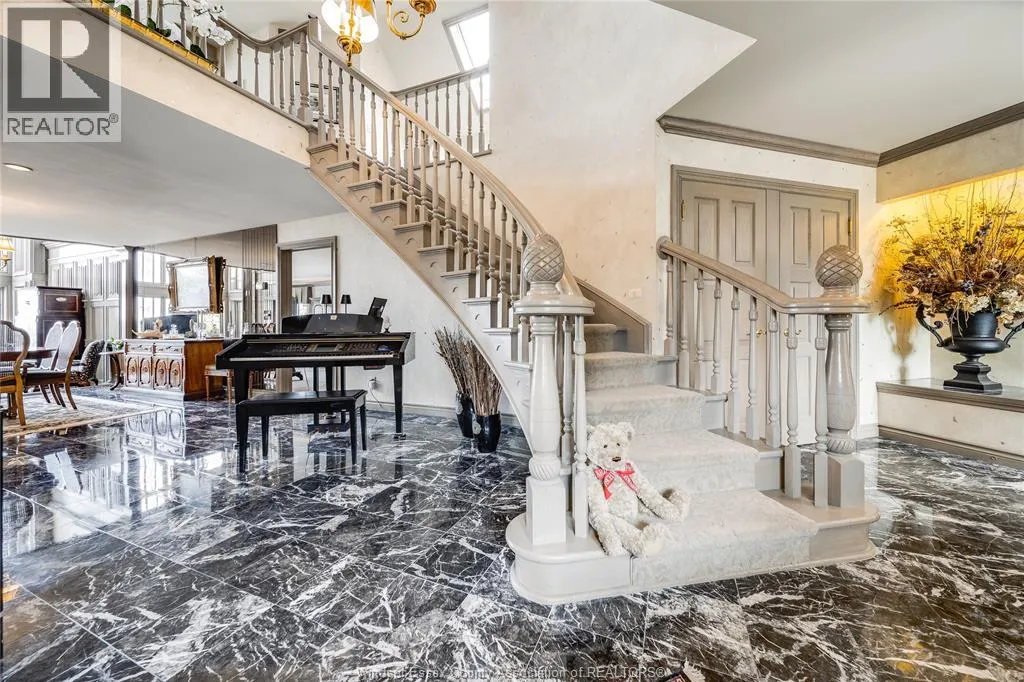 Welcome to a life of unmatched elegance. This waterfront property offers over 5,600 sq ft of luxurious living space. Upon entering, you're greeted by grandeur: polished marble floors, oak accents, and floor-to-ceiling windows. The open-concept design allows for seamless entertaining or intimate gatherings. The gourmet kitchen overlooks the sunken living room, formal dining room, and the opulent great room, all with uninterrupted lake views. A wet bar enhances the setting, while the sunroom with a gas fireplace offers a peaceful retreat overlooking the backyard oasis. The main floor includes a primary bedroom with a second gas fireplace and spa-like ensuite, as well as a home office and laundry room. Upstairs, find three additional bedrooms, each with an ensuite and walk-in closet. Outside, a resort-style backyard awaits with a heated pool, hot tub, and multiple seating areas. With approximately 80 feet of water frontage, enjoy easy access to the lake. Schedule a showing today. (id:27476)