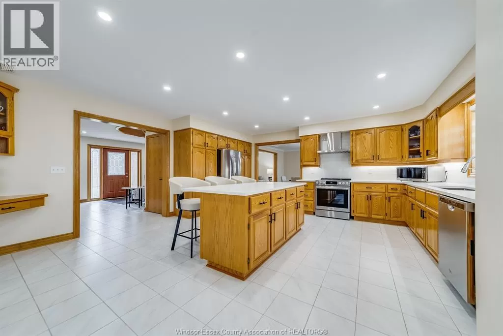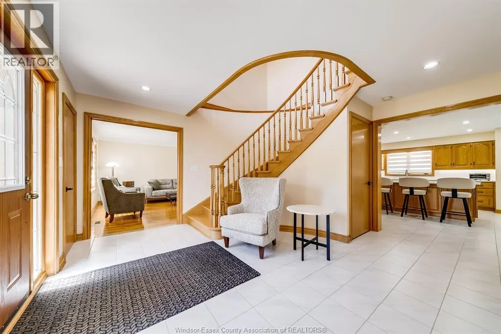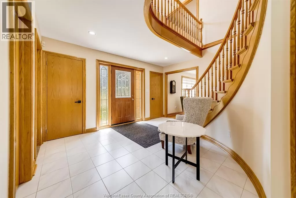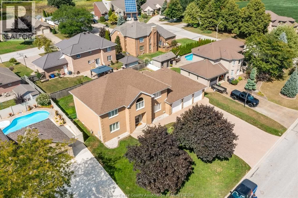 Prepare to be amazed by this super solid 2 storey home with an extra wide 3 car garage featuring a basement grade entrance, all set on a premium wide lot on an exclusive crescent in Tecumseh. From the moment you step inside the grand foyer with its circular staircase, the quality, craftsmanship, and open layout will take your breath away. The main floor showcases gleaming hardwood floors, a custom kitchen with island and eating area, all open to a spacious family room with tray ceiling. A formal dining and living room with French doors, den/office off the foyer, 2-piece bath, and main floor laundry complete the level. Upstairs youâll find 4 oversized bedrooms, including a massive master suite with double walk-in closets and a private ensuite bath. The extra-tall, wide-open lower level is ready for your personal touch, with rough-ins for a second summer kitchen/bar and additional bathroom. Outside, enjoy a triple extra-deep driveway with parking for multiple vehicles and beautifully maintained landscaping. This home truly combines space, elegance, and potential â a must see to appreciate! Call today for your visit. (id:27476)