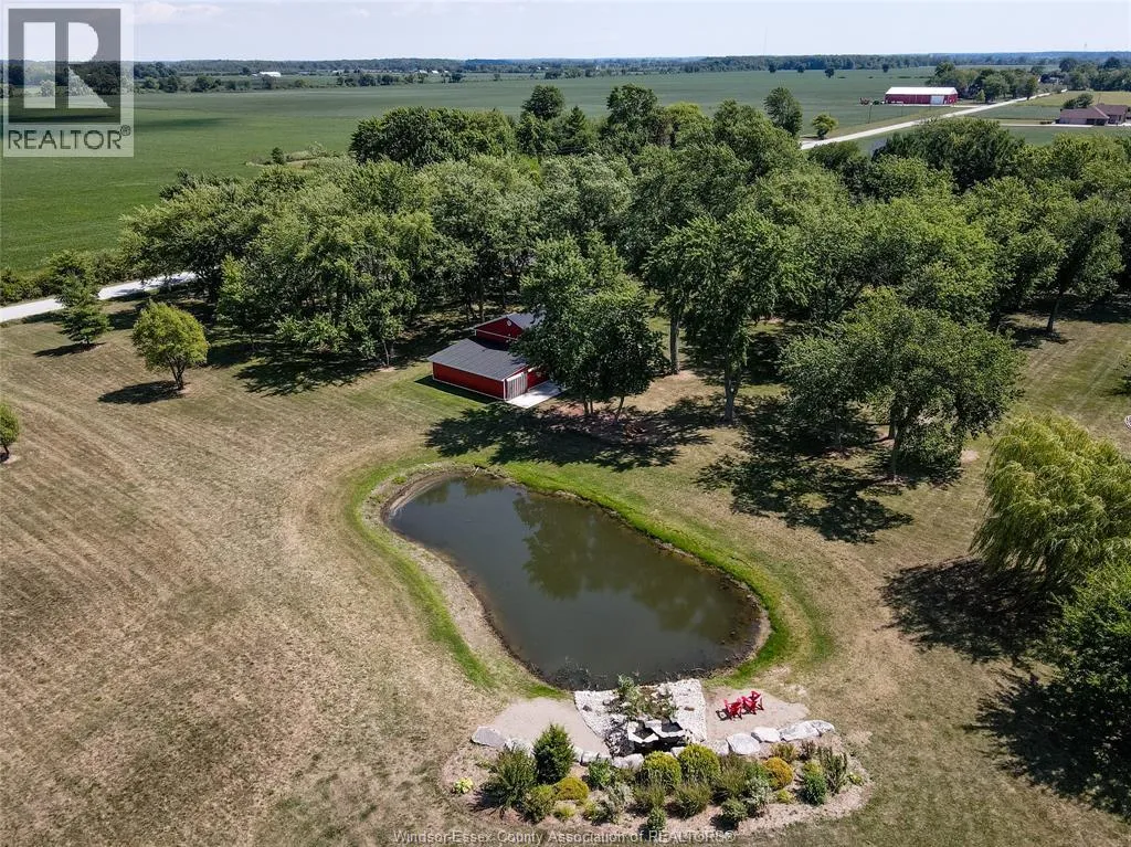 This rare 1865 home combines timeless charm with modern comfort on 4 acres of landscaped beauty. A stunning barn steals the spotlight, complete with a wood-burning pizza oven, bar, games room, and advanced exhaust system-ideal for lively gatherings or cigar nights. Step inside to find a welcoming main floor with a cozy living room and fireplace, updated bath, bright kitchen, and dining area. A serene family room opens to a patio where sunsets paint the sky. Upstairs, three spacious bedrooms include a primary suite with walk-in closet, alongside a full bath. Outdoors, mature trees, a ravine, pond, and waterfall create a private retreat. Additional features include a luxurious mosaic-tiled glass shower, attached workshop with storage, insulated 2.5-car garage, and finished circular driveway. Just minutes from the city, this property offers a one-of-a-kind lifestyle where history, nature, and elegance meet. (id:27476)