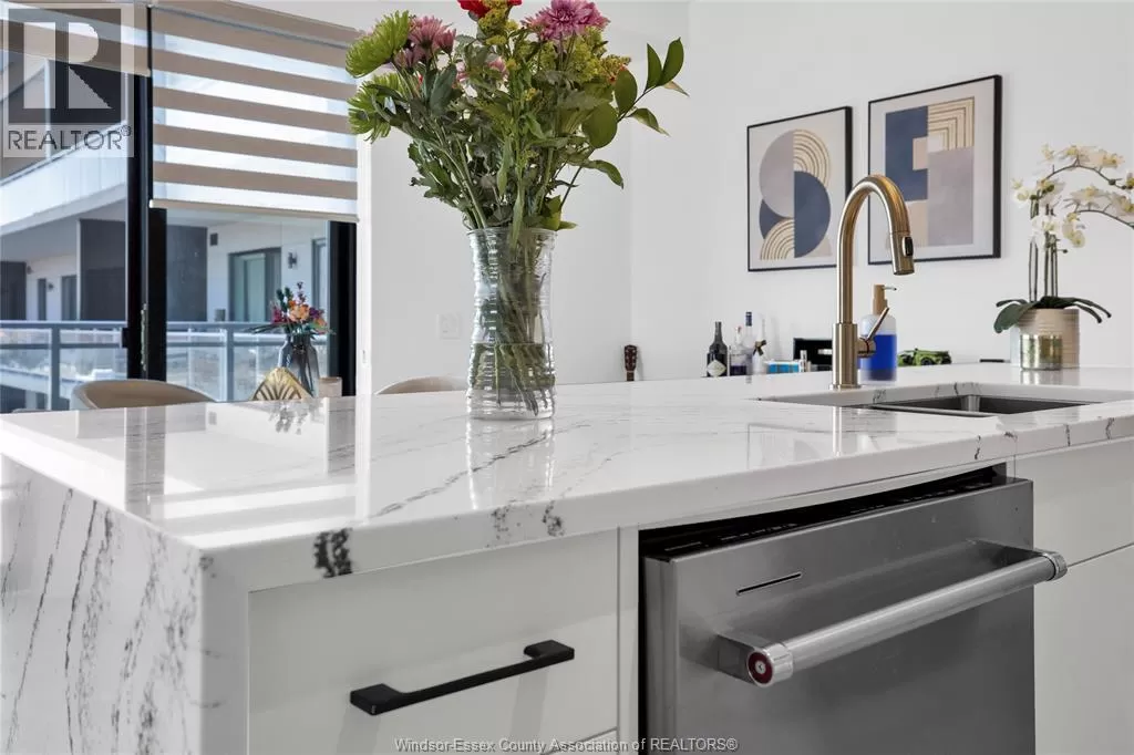 First class condo living available in Tecumseh's prestigious Harbour Club. Beautiful finishes throughout, soaked in natural light. 2 large bdrms, 2 baths including large primary br with walk-in closet and luxurious ensuite. Wayne's Custom Kitchen w/large island, quartz counter tops & built-in appliances. Open concept living room & eating area which leads outside to a massive 1,430 sq ft balcony over looking the river and boat wells. Perfect for morning coffee or afternoon entertaining. underground parking space, storage locker, top of the line amenities (Gym and party room). CONTACT LISTING AGENT FOR YOUR PRIVATE VIEWING. AT LEAST 24 HRS REQUIRED FOR SHOWING REQUESTS. (id:27476)
