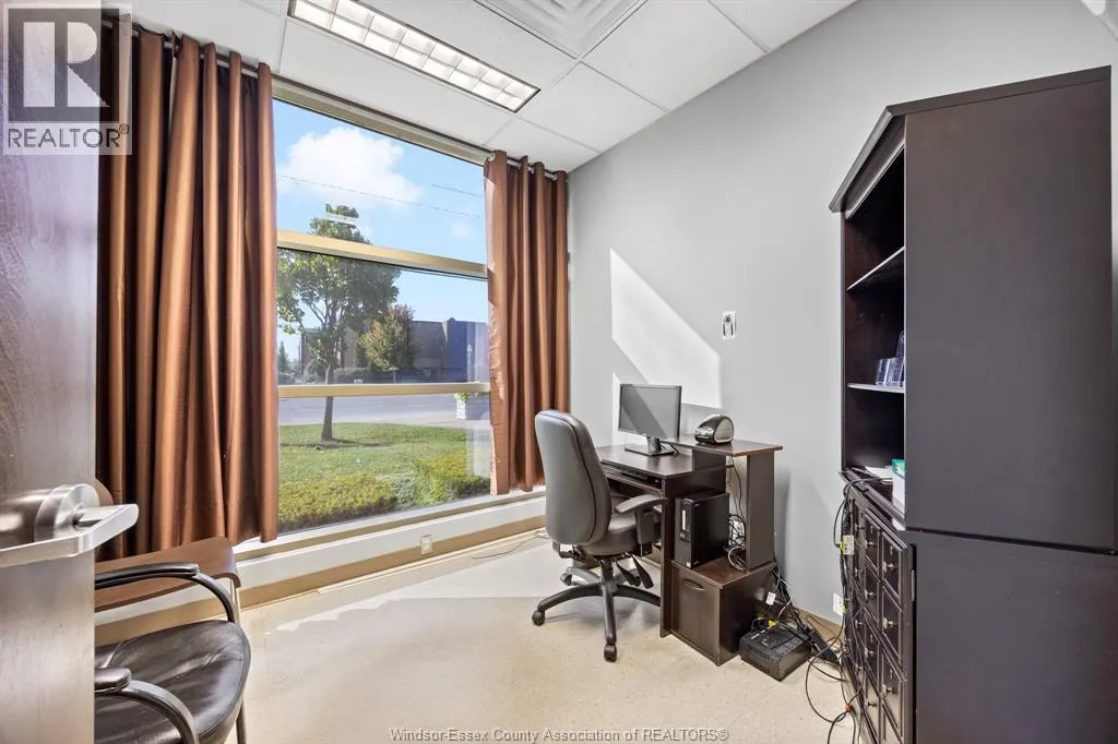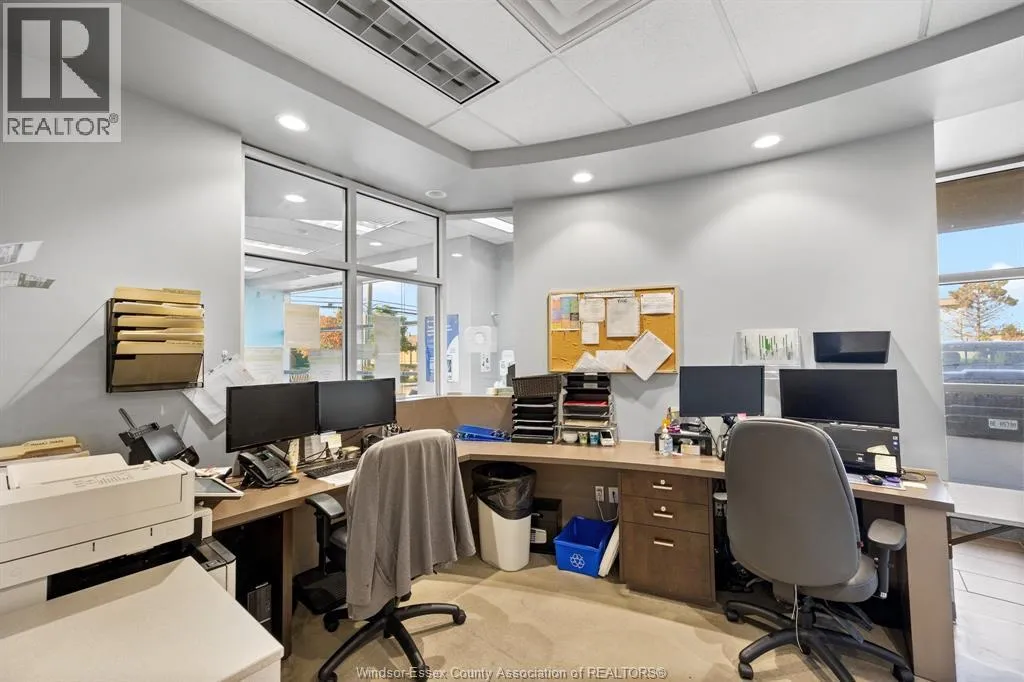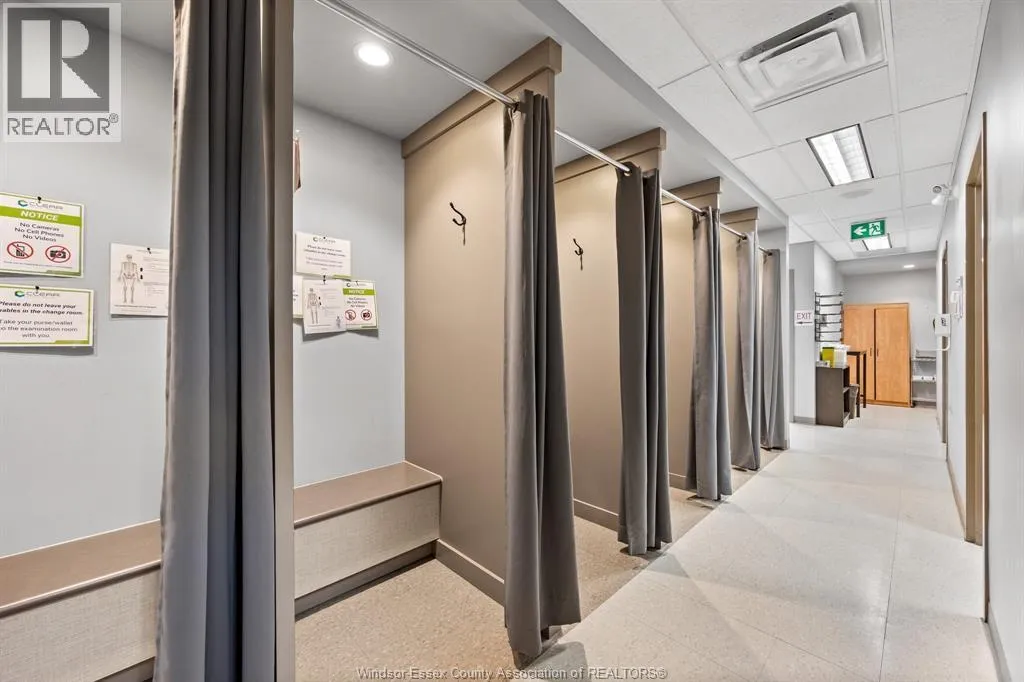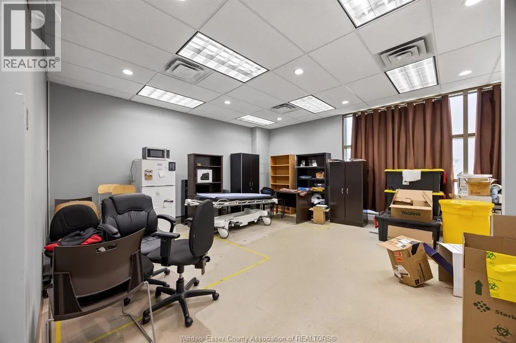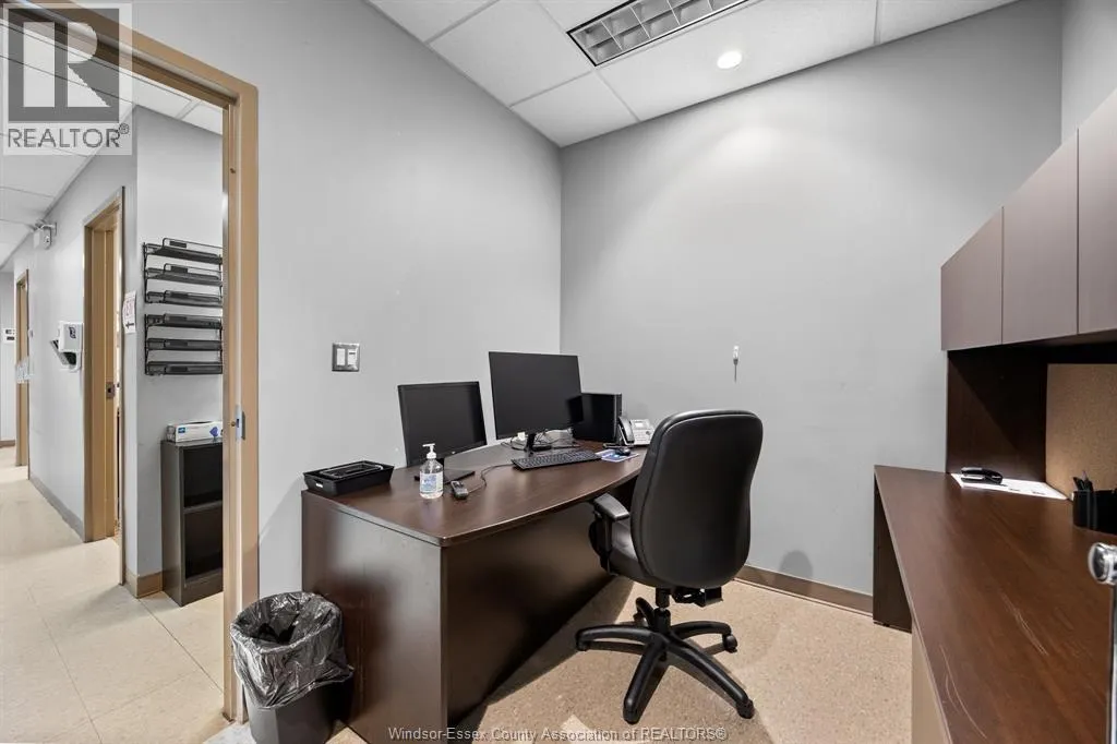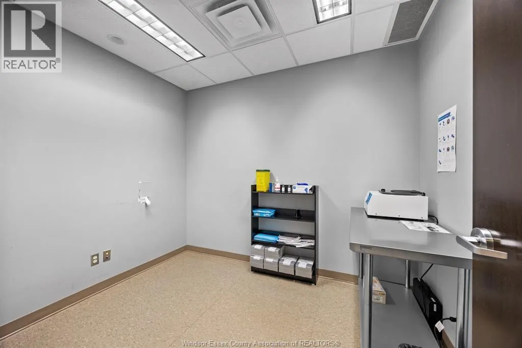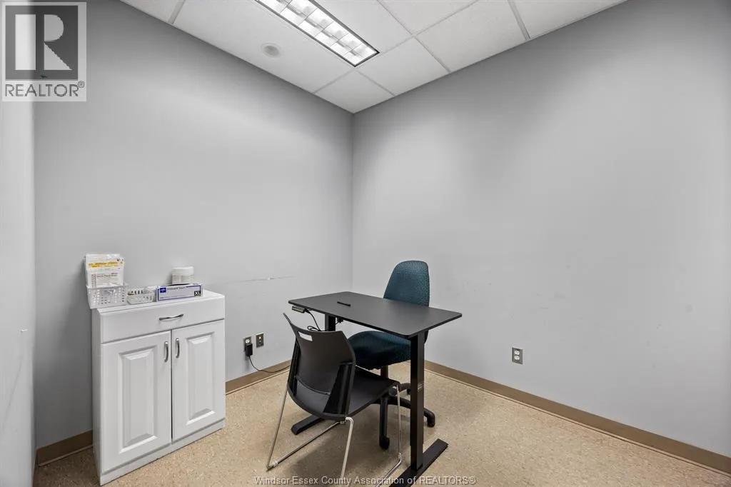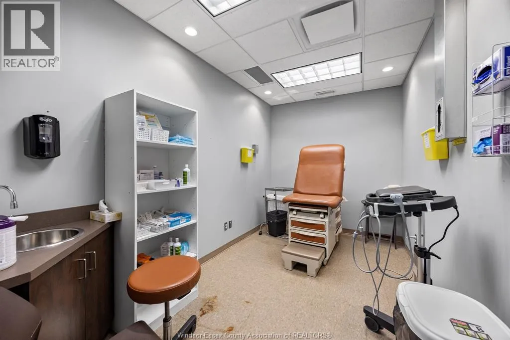 Rare opportunity to lease a fully built-out medical office within the high-profile Tecumseh Medical Centre. This main-floor suite offers excellent visibility and signage along Manning Road and is surrounded by complementary healthcare providers including pharmacy, diagnostics, and labs. The space is professionally finished with a welcoming reception and waiting area, multiple exam rooms, consultation offices, procedure rooms, staff workstations, file and storage areas, and private offices. Additional features include dedicated change rooms, laundry facilities, and a staff kitchen/breakroom. The building provides barrier-free access, ample on-site parking for staff and patients, and prominent pylon signage on Manning Road. Move-in ready this location is ideal for medical, dental, or allied health professionals looking to establish or expand their practice in a proven healthcare destination. (id:27476)