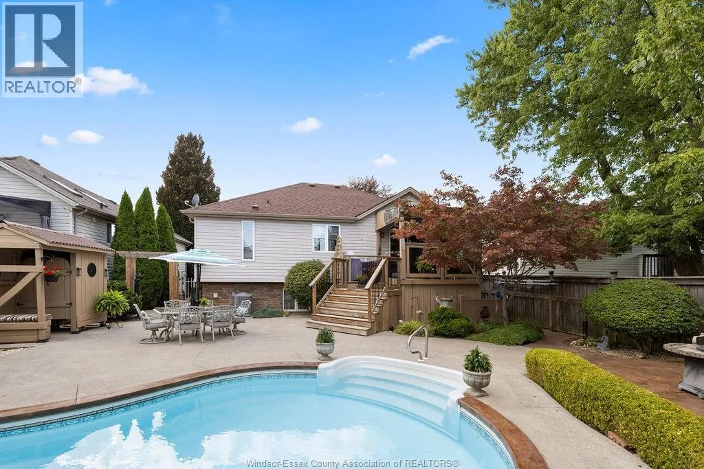 You're going to love this California Style Home with a Fantastic Backyard! Plenty of natural light welcomes you with hardwood and ceramic through-out main floor, including living room, formal dining and updated kitchen with cathedral ceilings, primary bedroom features walk-in closet and cheater door to luxurious bath with jacuzzi tub, glass shower and custom vanity. Lower level has been wonderfully finished with custom bar, family room with gas fireplace, additional bedroom and full bath. Entertainers dream backyard with in-ground heated pool, private BBQ lounge area, gas firepit patio, even a outdoor bath/change room. Updates: Furnace & A/C'2024, Concrete Work'25, Furnace & A/C'2024, Roof' 16. Walk to 2 area schools, parks and shopping! (id:27476)