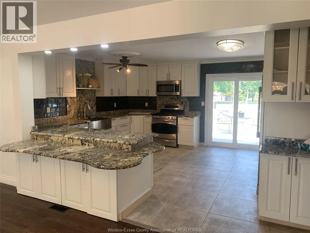 Great Tecumseh location, Raised Ranch with 2 Sty. addition(5.5 Yrs.) & Foyer addition with limestone & granite flooring (5.5 yrs.), attached 2 car garage, sitting on a frontage of 101 Ft., 4+ I bedrooms, 3 bathrooms, open concept, hardwood floors, Vinyl Windows (10 yrs), circular driveway, (7) appliances included (refrigerator, stove, wine fridge, washer & dryer, microwave rangehood combo), close to schools, parks, shopping stores & new battery plant, offering immediate possession. Updated Kitchen & bathrooms with granite countertops, finished lower level with (2) grade entrances. There are 2 sets of patio doors from kitchen & family room leading to wrap around deck, gas bbq hook up. Furnace/central-air (10 yrs), roof (IO yrs & 5.5 Yr), Freshly painted, very clean just move in. (id:27476)