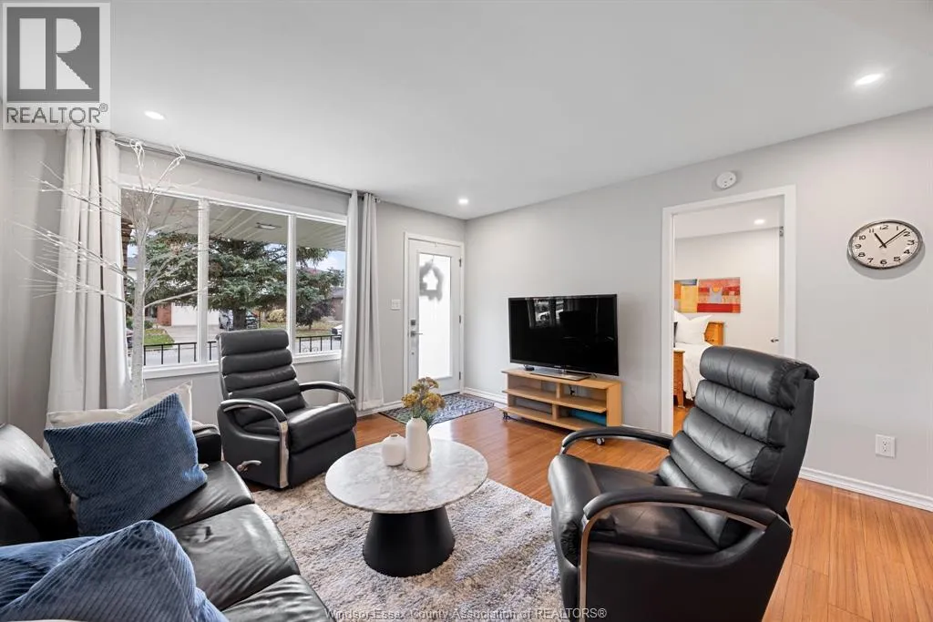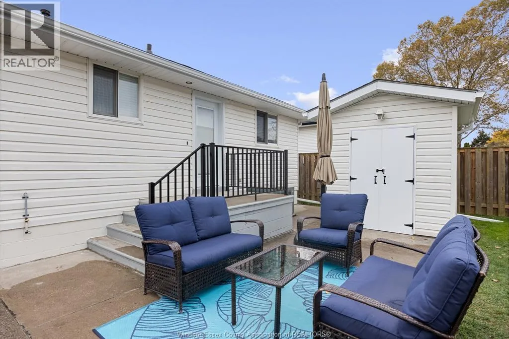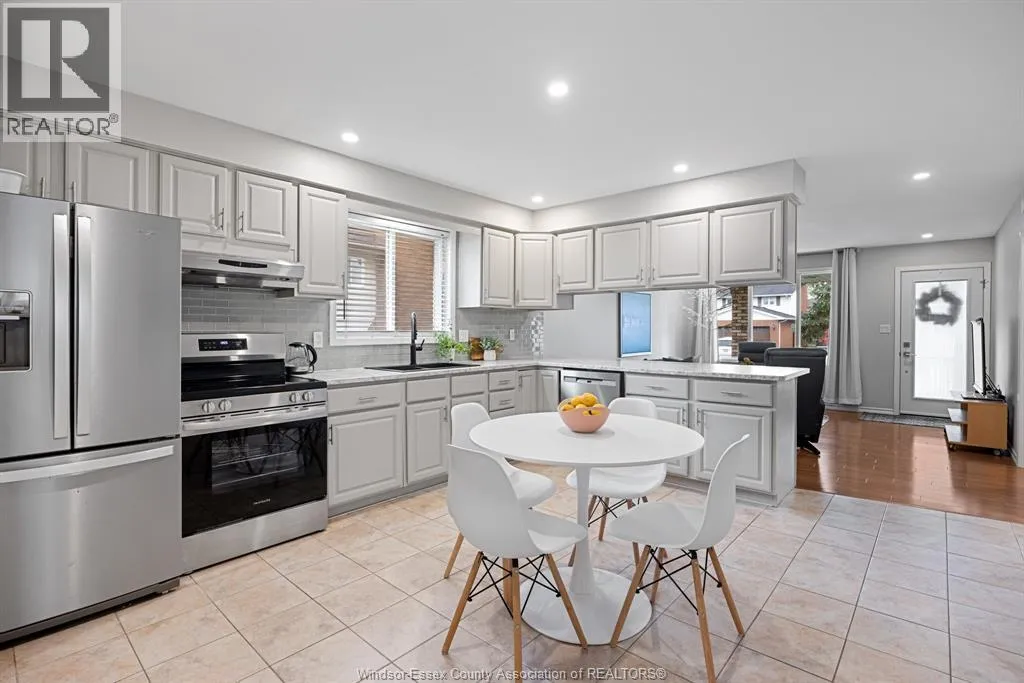 Updated and well cared for bungalow in Beautiful Tecumseh offers an inviting layout with a spacious open concept kitchen w/eating area, breakfast bar with additional seating, open to cozy living room, freshly painted, move in ready, updated ceilings with pot lighting creating a bright living space. Enjoy 3 bedrooms, full bath features a newer vanity, toilet, good size laundry with extra storage, fenced in yard, cozy patio & storage shed. Bonus! Garage is insulated has heating/ cooling, updated hydro creating an extra living space for your enjoyment, a perfect man cave. Plenty of upgrades including front and back doors, eavestroughs & more! (id:27476)