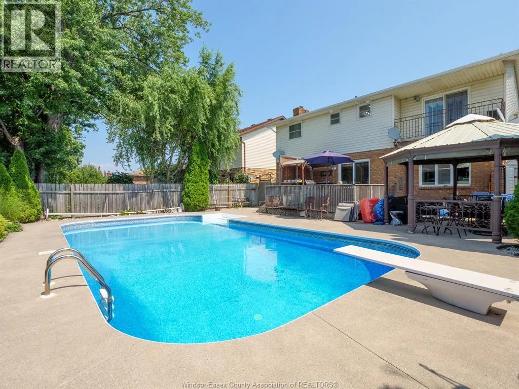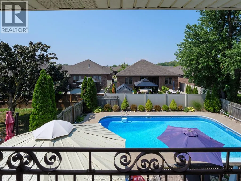 WEST OFF LESPERANCE RD IN TECUMSEH THIS TOWN OF TECUMSEH BEAUTY IS READY FOR ITS NEW FAMILY. MAIN FLOOR CONSISTS OF LR, DR, KIT WITH LARGE ISLAND & GRANITE TOPS, FAMILY ROOM TURNED INTO THEATRE ROOM, 2 PC BATH & LAUNDRY AREA. 2ND FLOOR HAS 4 BEDROOMS, PRIMARY WITH EXTERIOR BALCONY OVER LOOKING BACKYARD AND AN ENSUITE BATH(BOTH 2ND FLOOR BATHS RENO'D APPROX 2023). BASEMENT HAS HUGE FINISHED AREA WITH POSSIBLE BEDROOM USE, OFFICE AREA, 3 PC BATH & UTILITY ROOM. AMAZING BACKYARD HAS LARGE WOOD DECK, CONCRETE PATIO WITH GAZEBO, A 18'X36' INGROUND SALT WATER POOL WITH 8' DEEP END(NEW HEATER, SALT GENERATOR & SAND FILTER 2025, PUMP 2023). FURNACE 2013, AIR CONDITIONER 2025, ROOF 2016, WINDOWS & PATIO DOOR 2011 ... ALL DATES ARE APPROX. (id:27476)