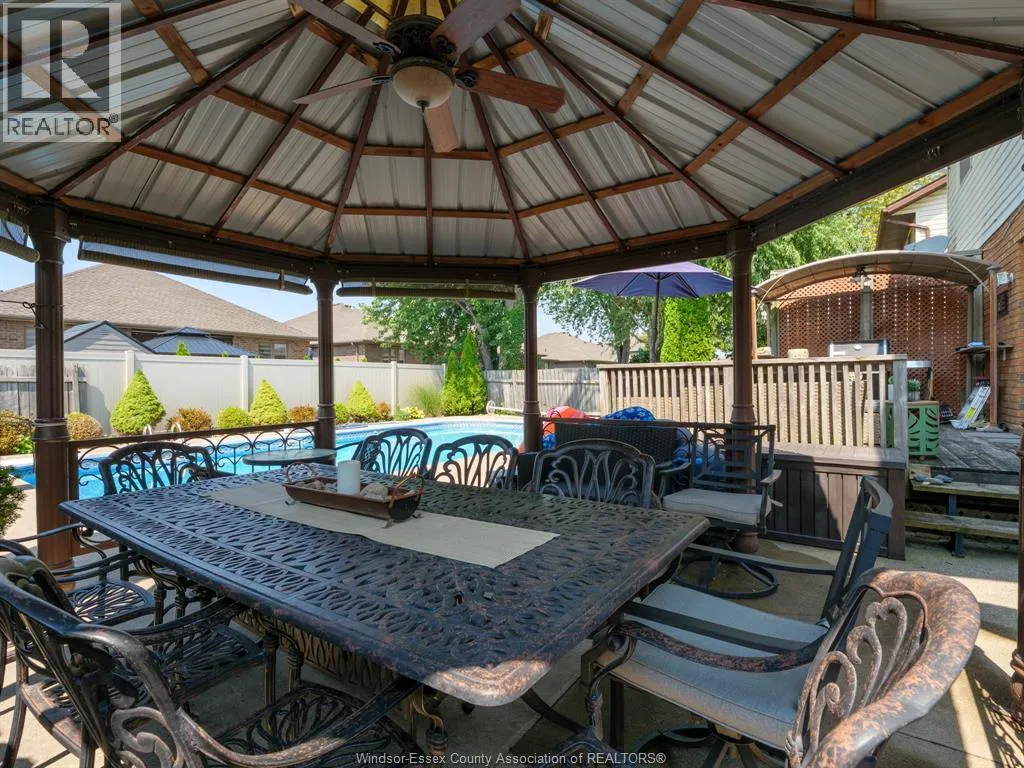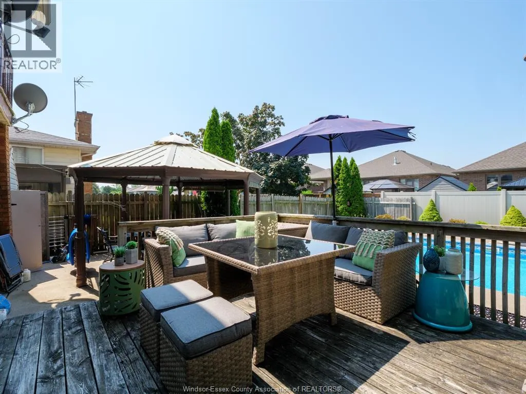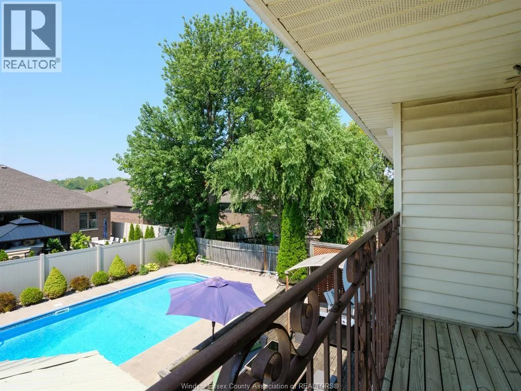WEST OFF LESPERANCE RD IN TECUMSEH THIS TOWN OF TECUMSEH BEAUTY IS READY FOR ITS NEW FAMILY. MAIN FLOOR CONSISTS OF LR, DR, KIT WITH LARGE ISLAND & GRANITE TOPS, FAMILY ROOM TURNED INTO THEATRE ROOM, 2 PC BATH & LAUNDRY AREA. 2ND FLOOR HAS 4 BEDROOMS, PRIMARY WITH EXTERIOR BALCONY OVER LOOKING BACKYARD AND AN ENSUITE BATH(BOTH 2ND FLOOR BATHS RENO'D APPROX 2023). BASEMENT HAS HUGE FINISHED AREA WITH POSSIBLE BEDROOM USE, OFFICE AREA, 3 PC BATH & UTILITY ROOM. AMAZING BACKYARD HAS LARGE WOOD DECK, CONCRETE PATIO WITH GAZEBO, A 18'X36' INGROUND SALT WATER POOL WITH 8' DEEP END(NEW HEATER, SALT GENERATOR & SAND FILTER 2025, PUMP 2023). FURNACE 2013, AIR CONDITIONER 2025, ROOF 2016, WINDOWS & PATIO DOOR 2011 ... ALL DATES ARE APPROX. (id:27476)