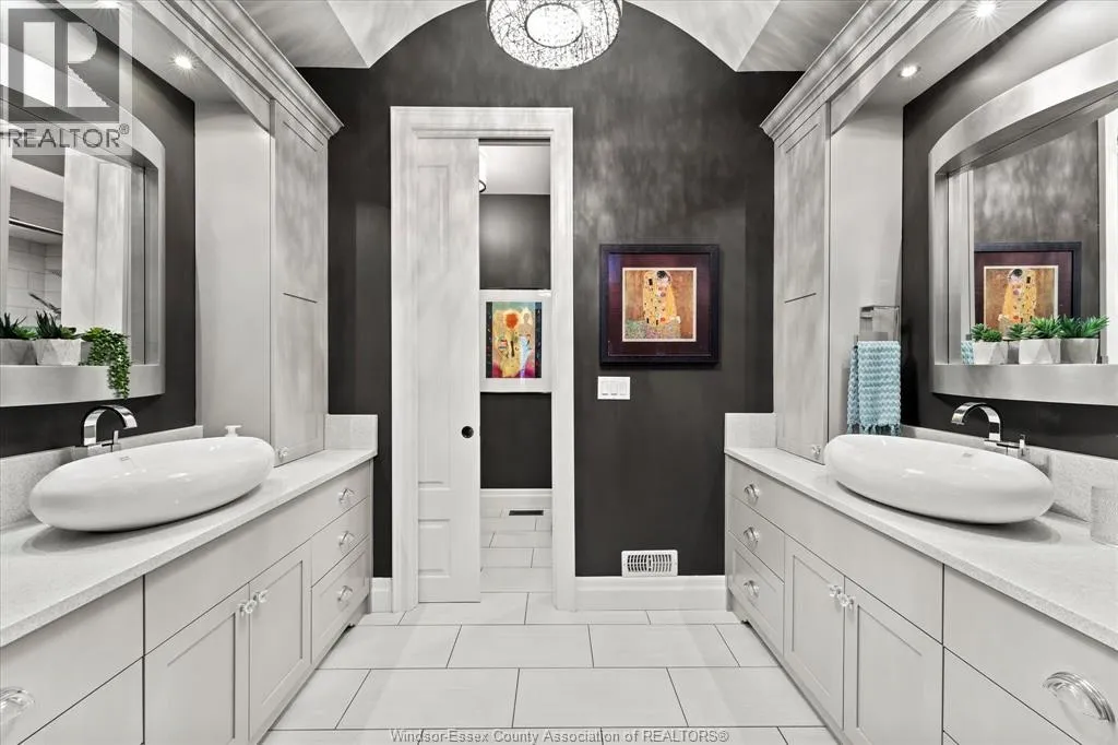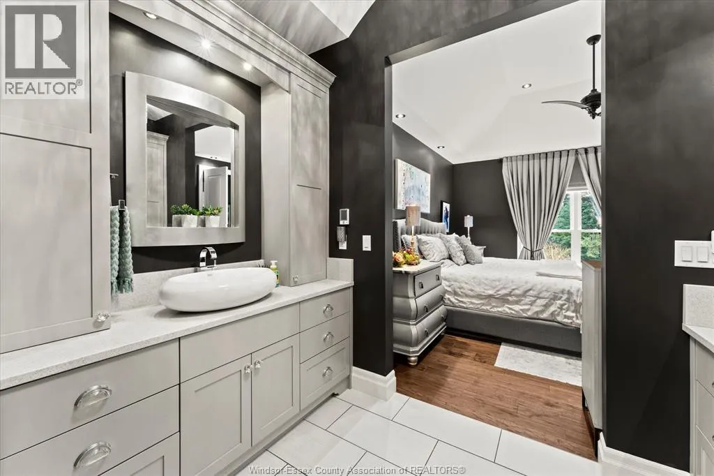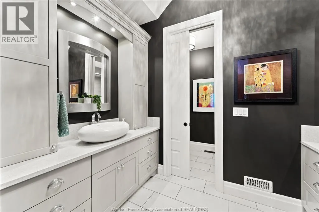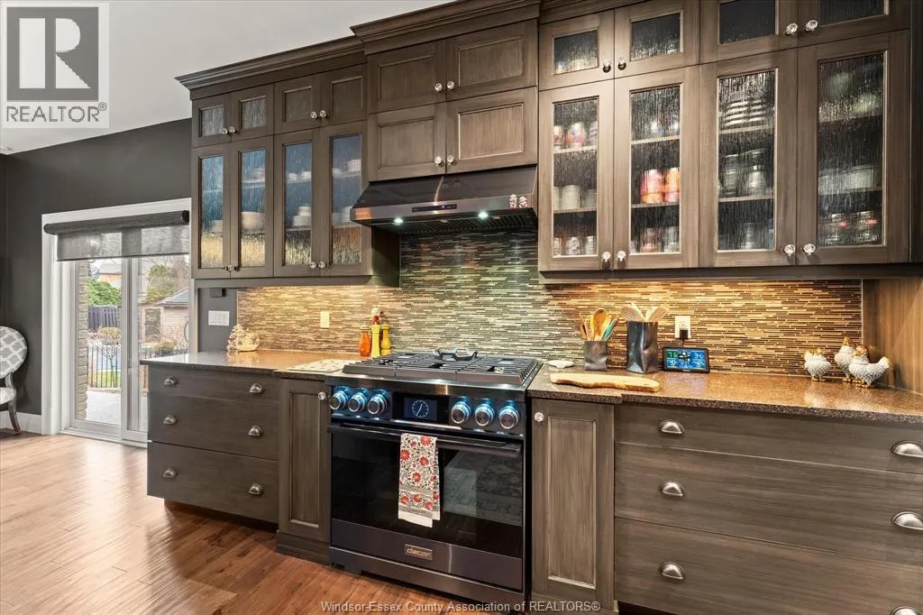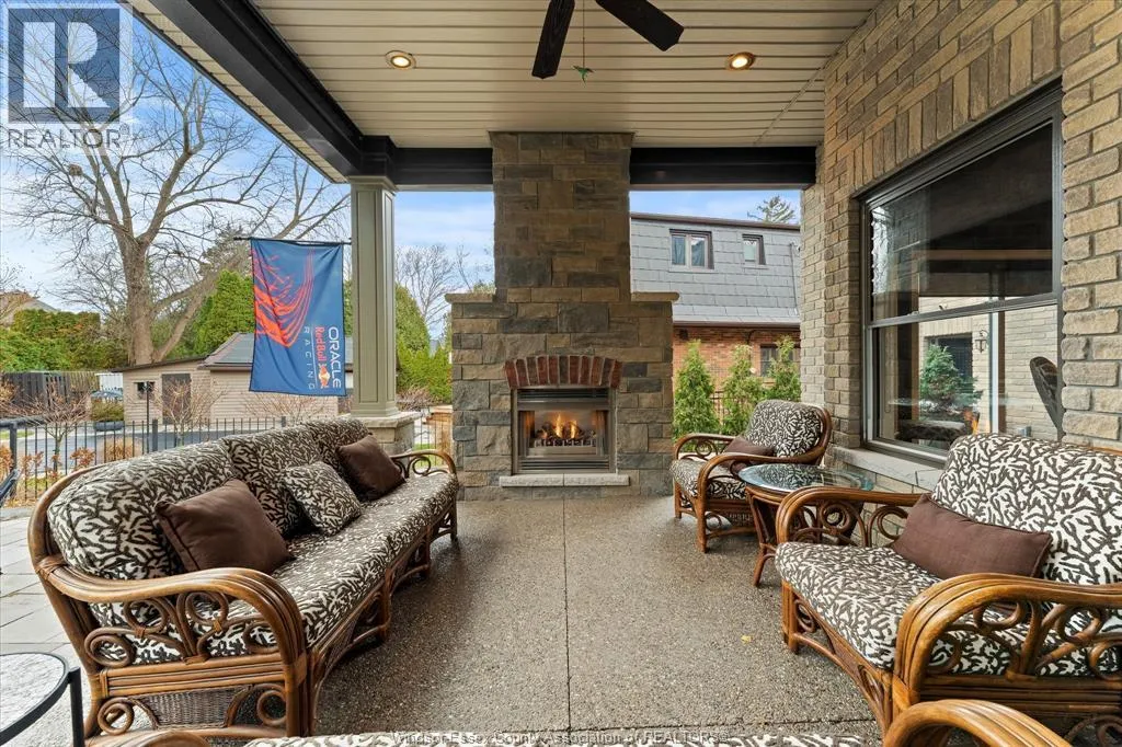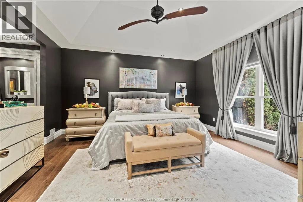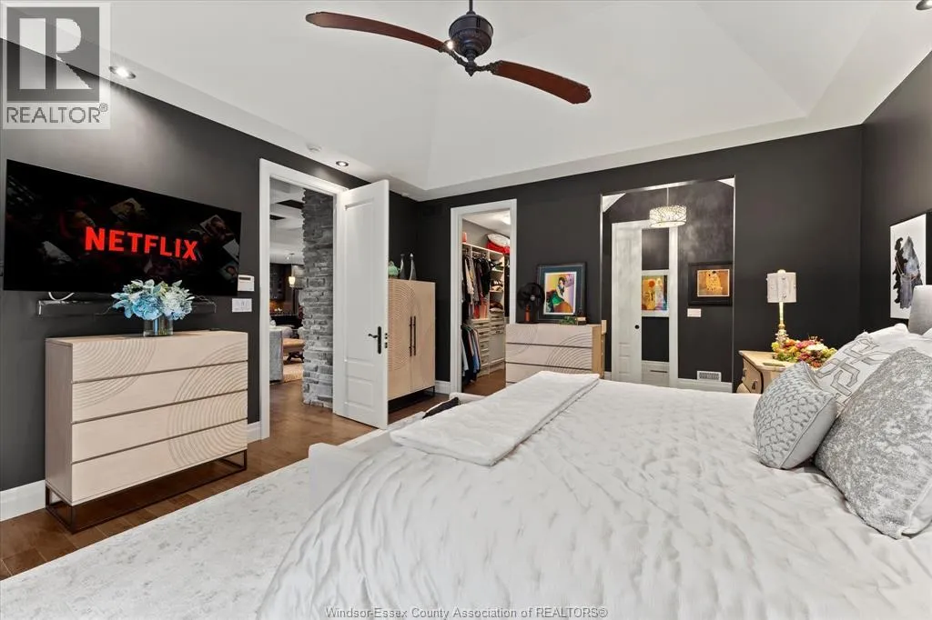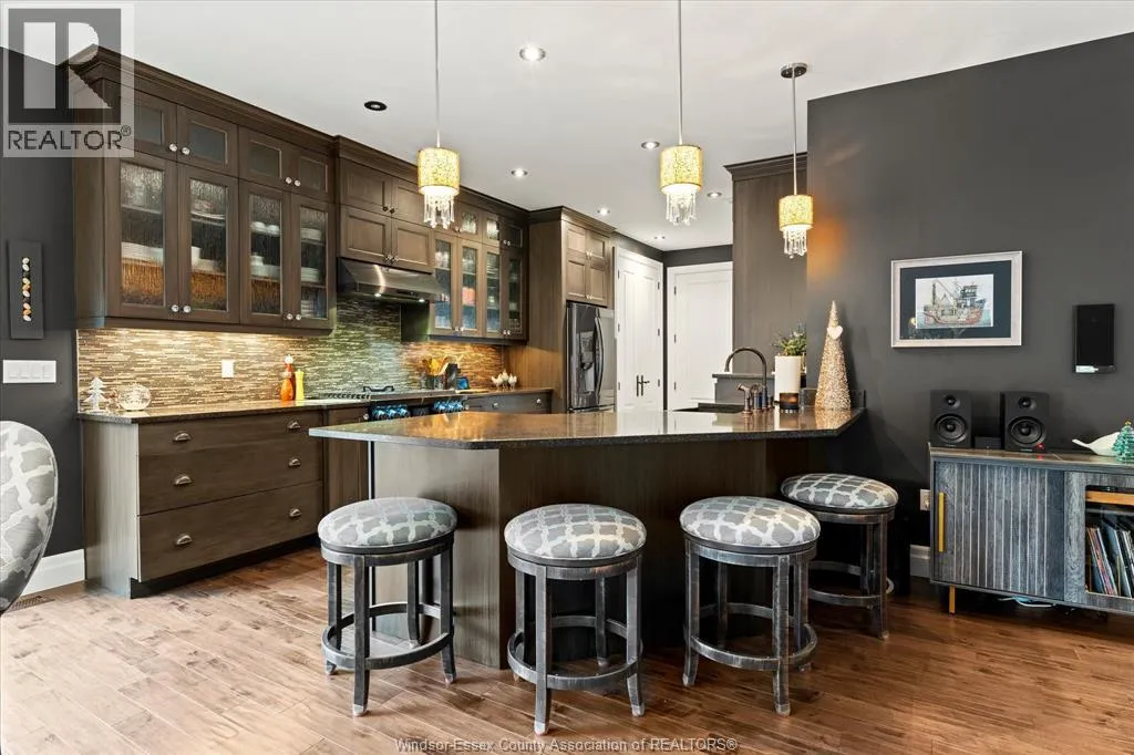Nestled in the highly sought-after Town of Tecumseh, known for its waterfront trails, top-tier schools, vibrant dining, and premier golf, this exceptional residence showcases the signature craftsmanship of Timberland Homesâan award-winning custom builder celebrated for timeless design and flawless execution. From the moment you enter, the illuminated foyer with architectural accents sets an elegant tone. The great room features a striking floor-to-ceiling stone fireplace, custom entertainment cabinetry, coffered ceilings, and rich maple hardwood throughout. The chefâs kitchen impresses with Cremasco custom cabinetry, Europa quartz counters, premium LG appliances, a 36â Dacor commercial gas range, imported copper sink, and hidden walk-in pantry. The private primary suite offers a spa-inspired ensuite with heated porcelain floors, crystal-lit barrel ceiling, and custom walk-in closet. Outdoors, enjoy a covered patio with Napoleon fireplace, built-in BBQ, cascading waterfall pond, backup gas generator, and professionally designed porchesâcreating a refined private retreat. Oversized exposed aggregate stone driveway flows to a three car tandem garage. (id:27476)