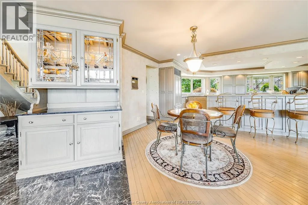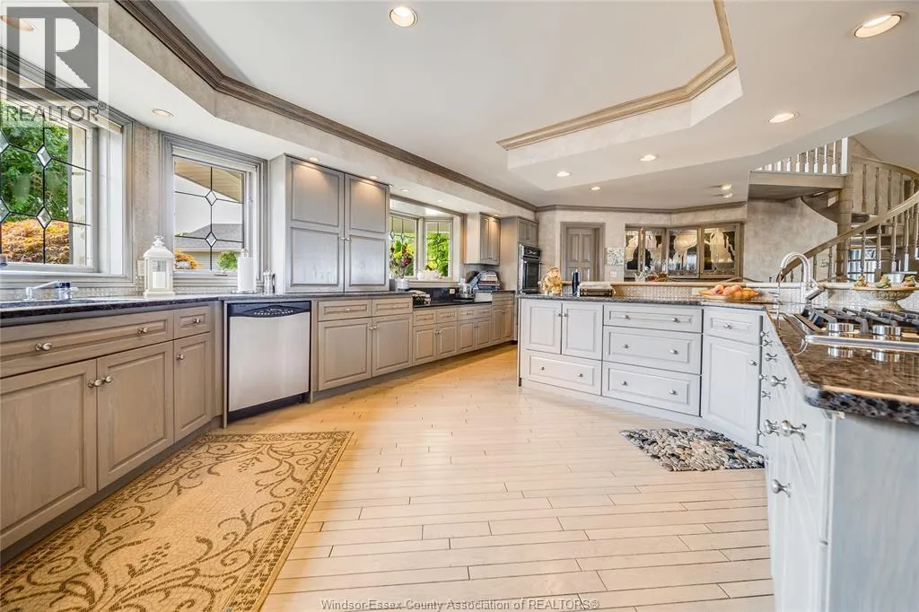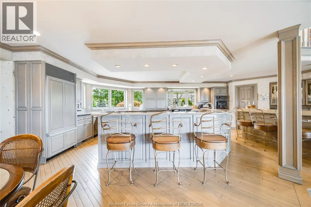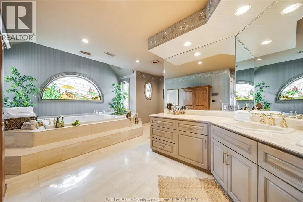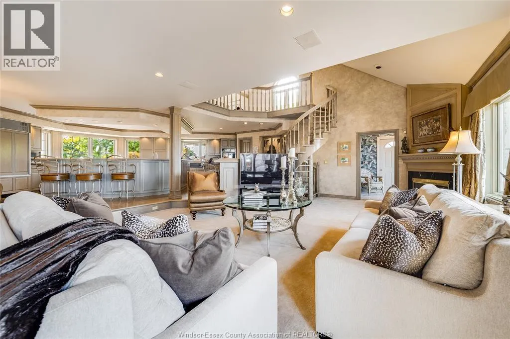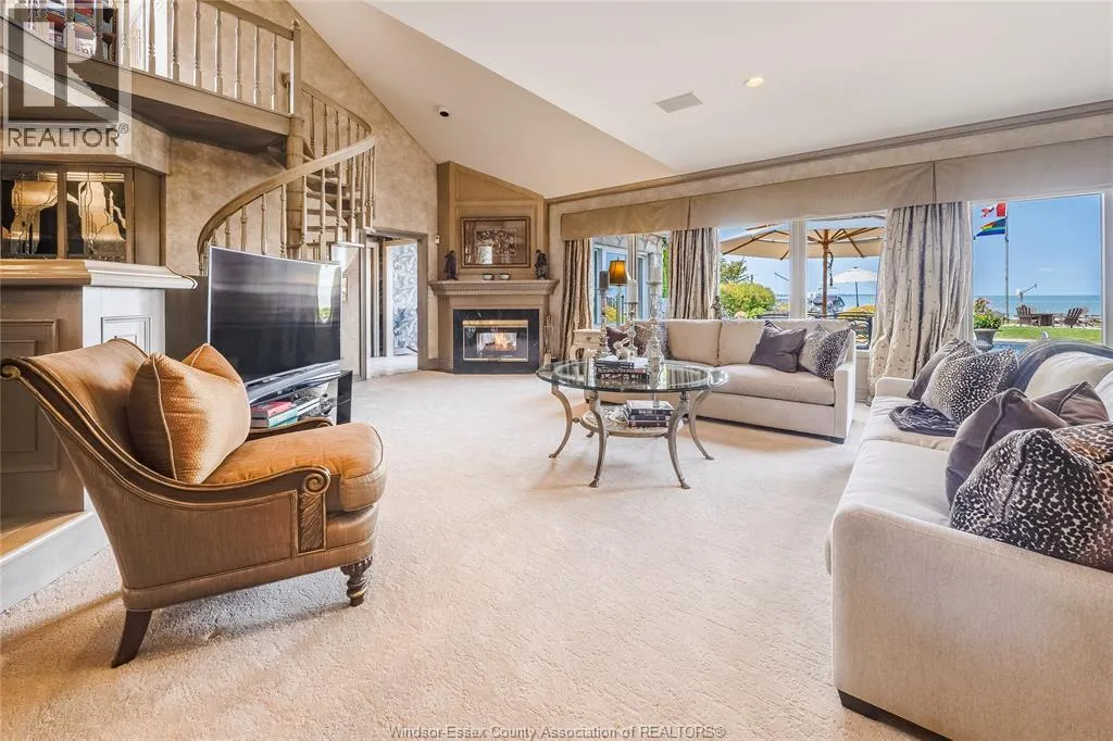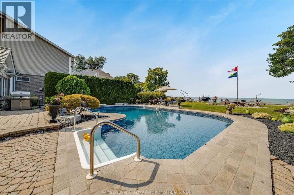 Welcome to a life of unmatched elegance. This waterfront property offers over 5,600 sq ft of luxurious living space. Upon entering, you're greeted by grandeur: polished marble floors, oak accents, and floor-to-ceiling windows. The open-concept design allows for seamless entertaining or intimate gatherings. The gourmet kitchen overlooks the sunken living room, formal dining room, and the opulent great room, all with uninterrupted lake views. A wet bar enhances the setting, while the sunroom with a gas fireplace offers a peaceful retreat overlooking the backyard oasis. The main floor includes a primary bedroom with a second gas fireplace and spa-like ensuite, as well as a home office and laundry room. Upstairs, find three additional bedrooms, each with an ensuite and walk-in closet. Outside, a resort-style backyard awaits with a heated pool, hot tub, and multiple seating areas. With approximately 80 feet of water frontage, enjoy easy access to the lake. Schedule a showing today. (id:27476)