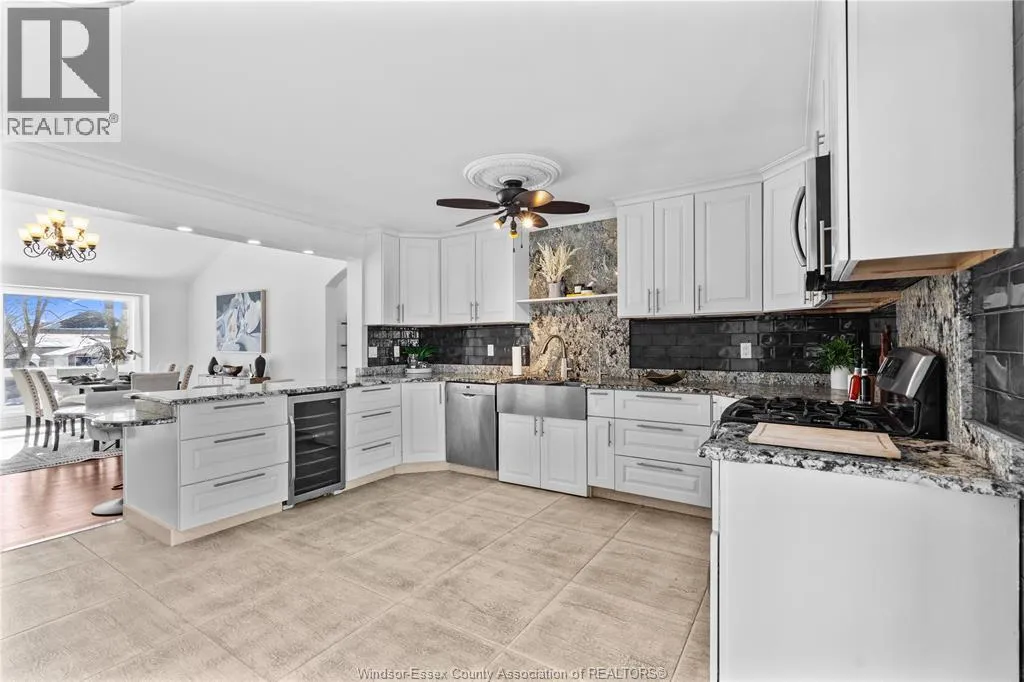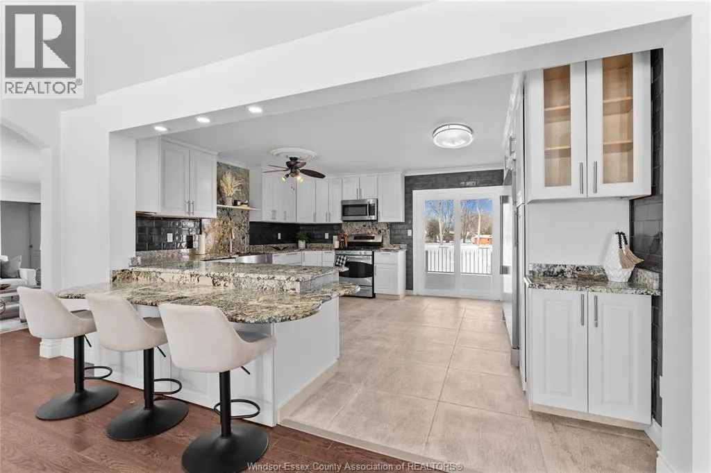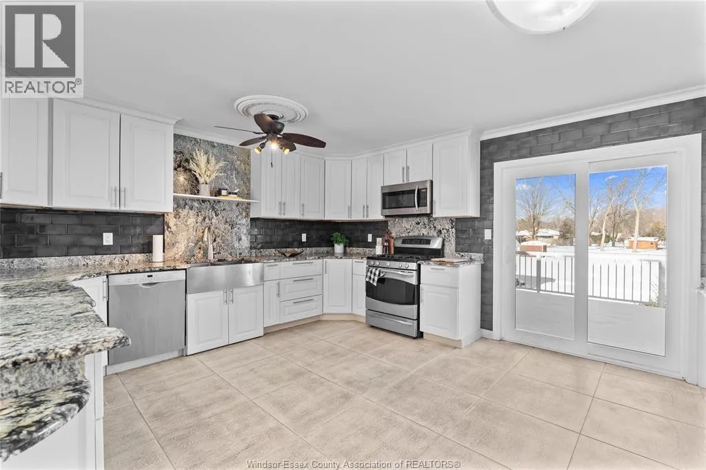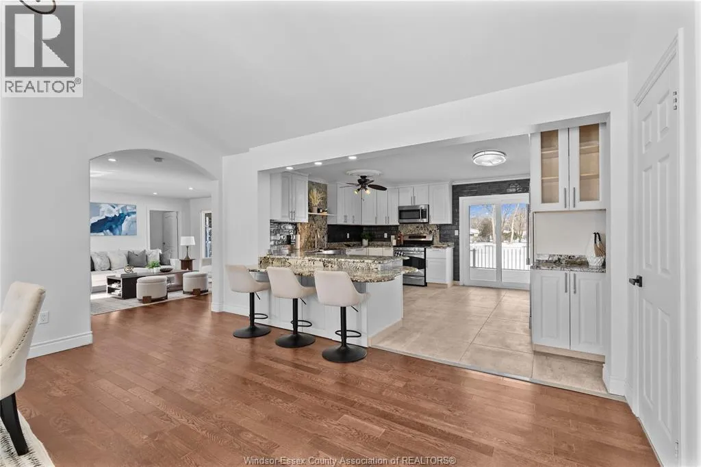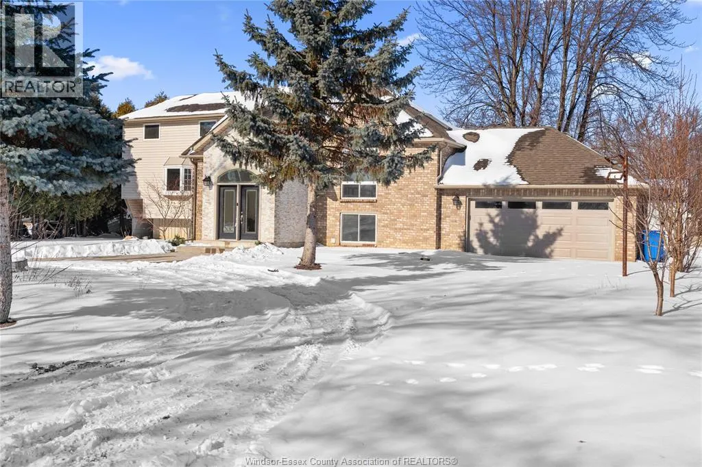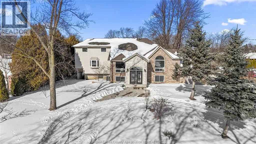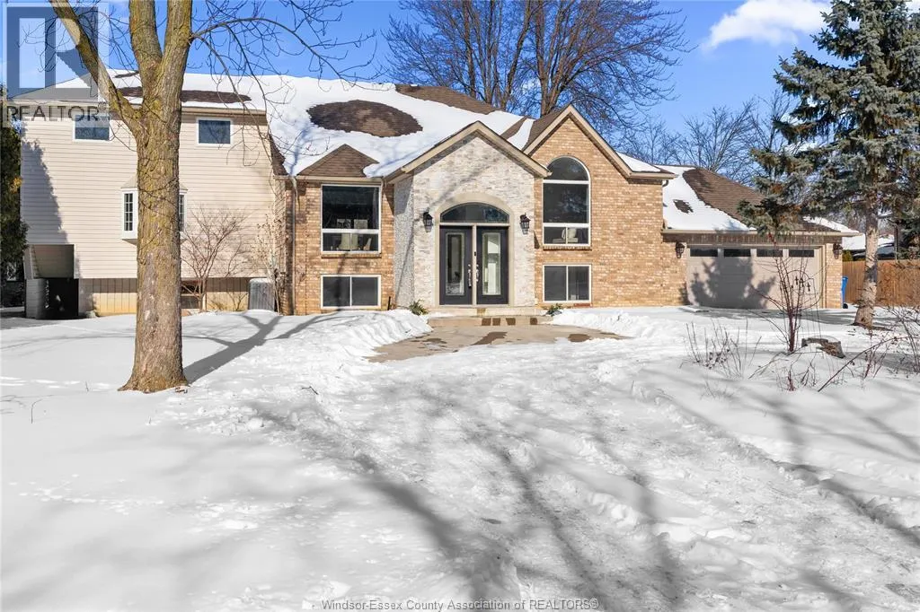 One-of-a-kind, family-sized raised ranch located in a desirable Tecumseh neighbourhood. This home features a unique layout with a two-storey addition (approx. 5 years old), offering 4+1 bedrooms and 3 full bathrooms. The main living areas showcase dark hardwood flooring, limestone, and granite finishes. Additional highlights include a gas fireplace and large sliding patio doors leading to a wrap-around deck with gas BBQ hookup. The home comes complete with stainless steel appliances, including a wine fridge. Exterior features include a circular driveway providing ample parking and convenient access. Notable updates include vinyl windows (approx. 10 years), furnace and central air (approx. 10 years), and roof (approx. 5 & 10 years). Pre-inspection report available. Immediate possession available. (id:27476)