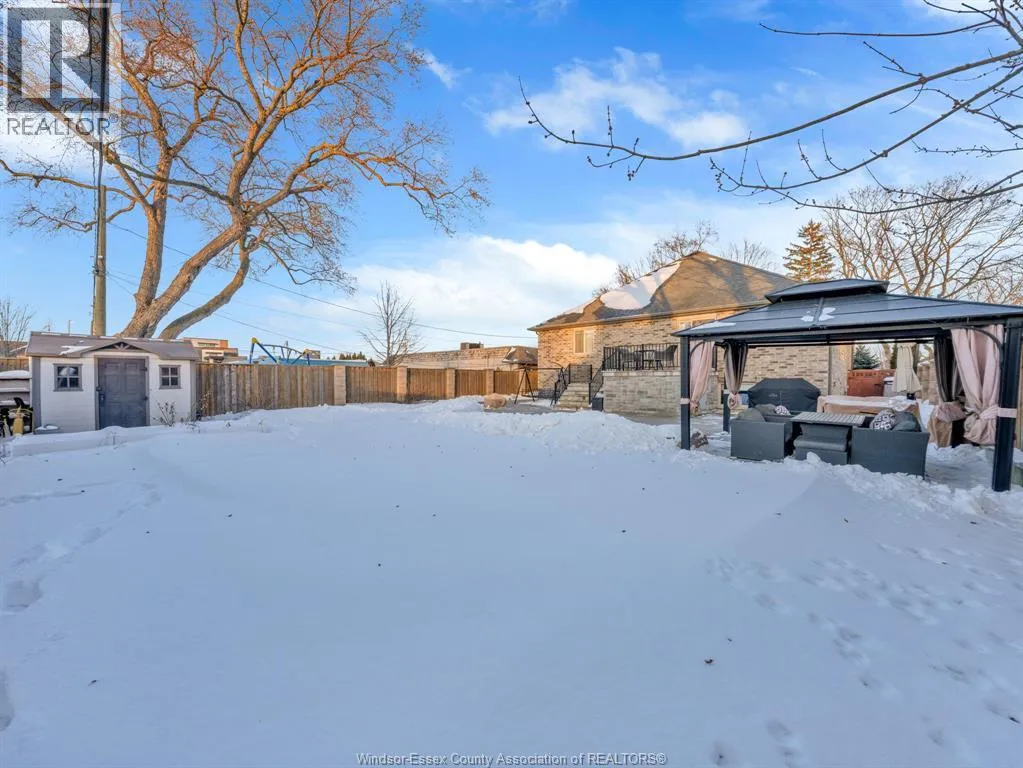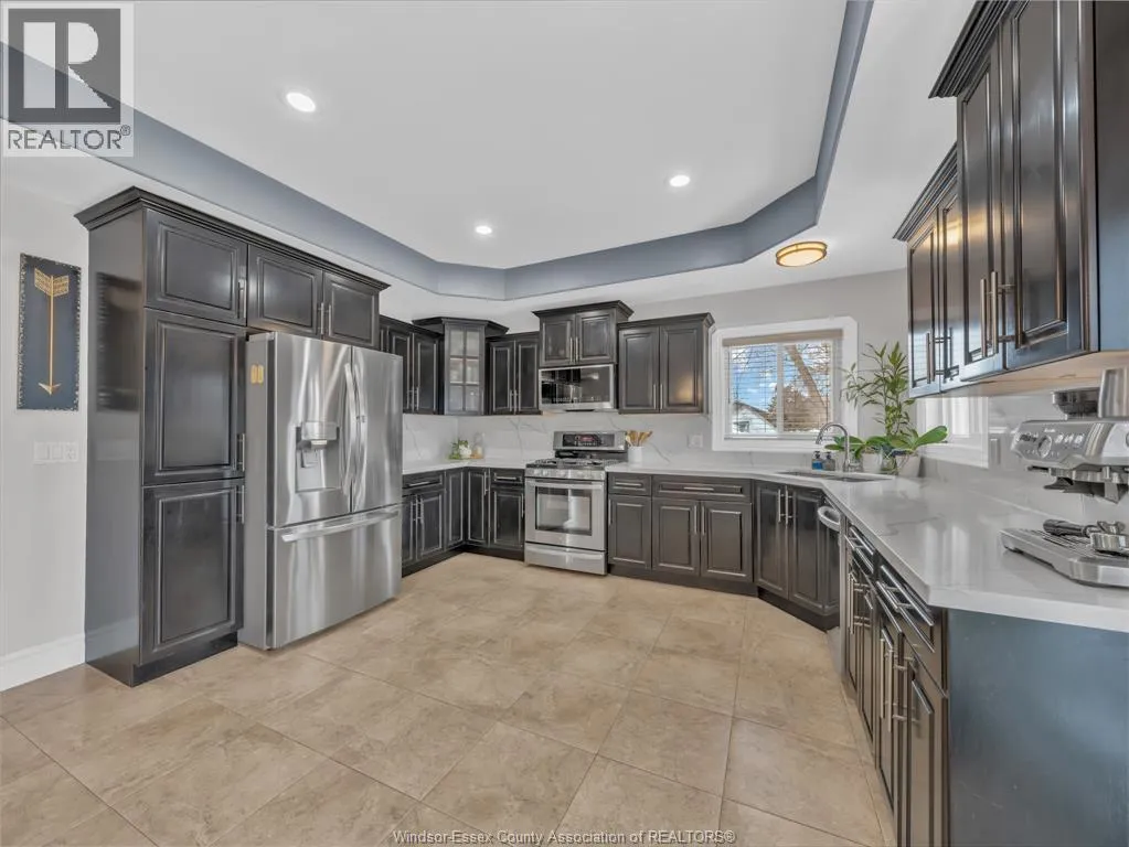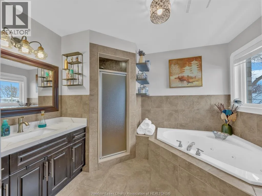 Rarely do homes of this caliber become available. Originally custom built, this solid brick-to-roof residence showcases exceptional craftsmanship, thoughtful design, and premium features throughout, ideally situated on a generous lot just off Riverside Drive in St. Clair Beach with access to scenic water views, walking trails, a nearby golf course, and a private schoolâan exceptional setting in a highly sought-after neighbourhood. Offering over 3,500 sq ft of finished living space (2,017 sq ft above grade plus a 1,513 sq ft finished lower level), the home features 5 spacious bedrooms and 3 full bathrooms, including a 5- piece ensuite, a massive eat-in kitchen with patio doors to a private, fully fenced backyard, and a fully finished lower level with high ceilings, full-size windows, gas fireplace, lounge area, two additional bedrooms, and a third full bathâideal for guests or home offices. The exterior is equally impressive, featuring an ERCA-code cement retaining wall on all sides (approximately 8 ft tall), reinforced stone fence posts with rebar and cement pillars, and a premium cedar gate with metal accentsâdesigned for durability, drainage, and peace of mind, as the home has never flooded. Outdoor highlights include natural fossil stone imported from India at the front entrance, back terrace, and stairs, a raised porch with built-in storage beneath, expansive cement patios, wide sidewalks, a large driveway, and pre-installed piping for future irrigation, electrical, or pool use. A massive driveway leads to a 2.5-car attached garage, while custom trim work throughout the home, including doors, closets, and wide wall trims, completes this truly move-in-ready gemâperfect for a growing family. Call today for your private showing. (id:27476)