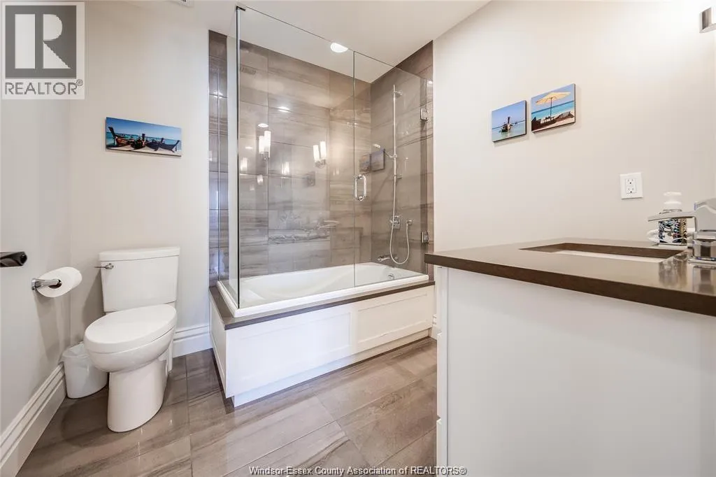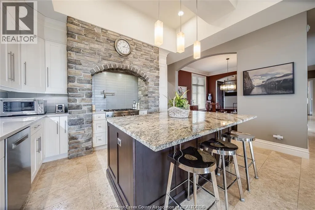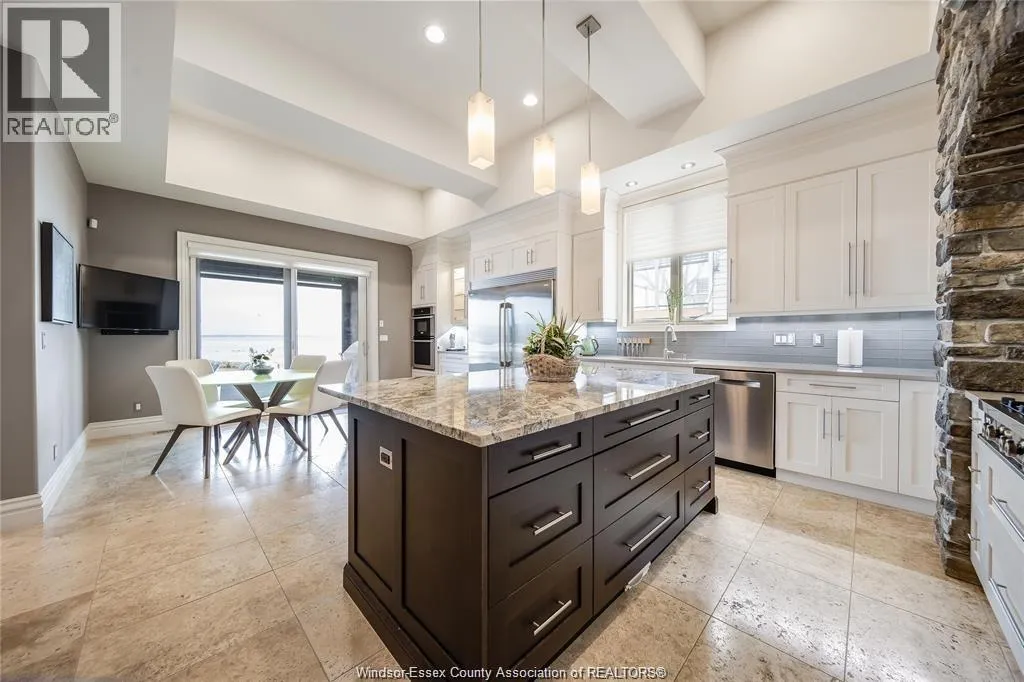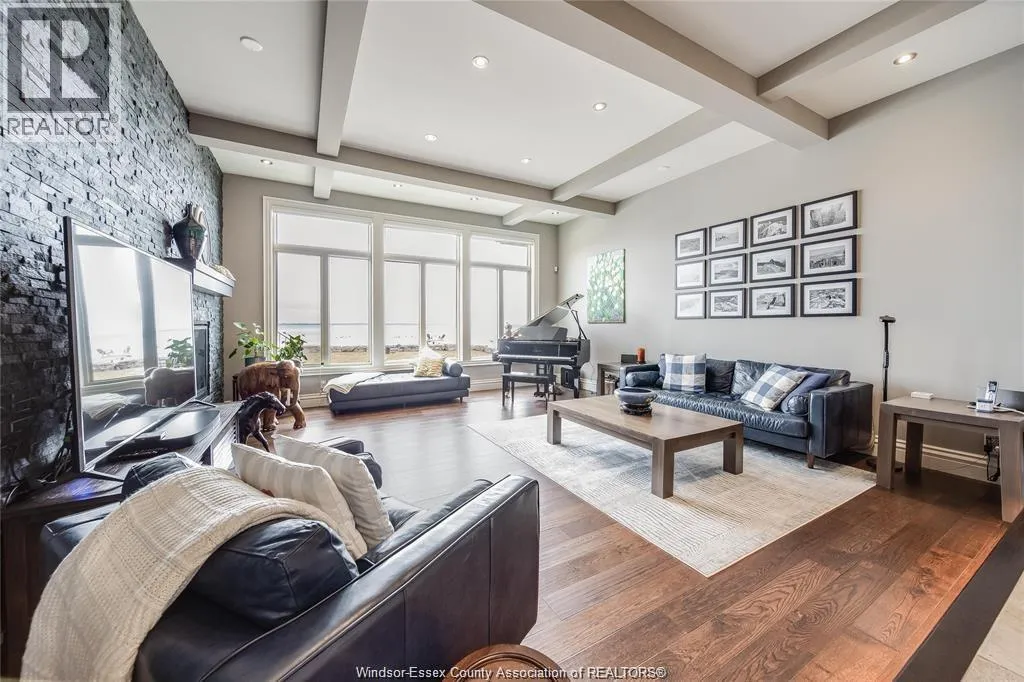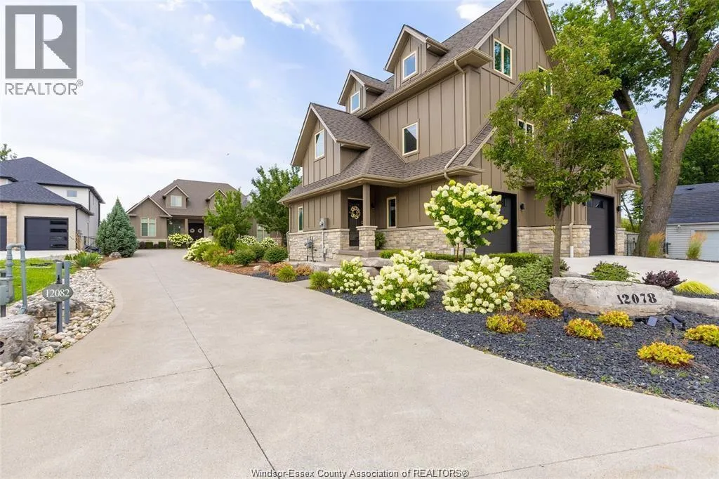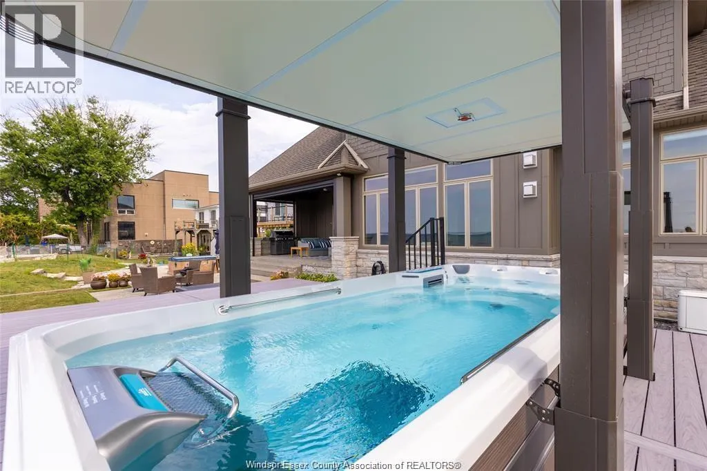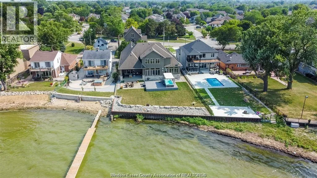Waterfront gem in Tecumseh featuring 2 stunning residences on 1 parcel of land. Main house was built in 2016 by Wes-Con, featuring 3,213 square feet of pure luxury. Totalling 4+2 bedrooms and 5 bathrooms, stunning Chefs kitchen with top of the line appliances and granite countertops, formal living and dining, main floor laundry, 2.5 car garage with vehicle hoist, Generac generator, 2nd level with 3 oversized bedrooms,1 with an ensuite bath. Lower level featuring a great room, a recreation room and a theatre room with a surround sound system. Guest house built in 2020 by Gray Builders, 1,725 square feet, 3 levels, featuring 2 bedrooms, 1 ensuite bath and 2 half baths,2.5 car attached garage. The backyard has a covered patio with motorized screens, and an endless swim spa. This property offers endless possibilities for rental income or multi generational living. (id:27476)